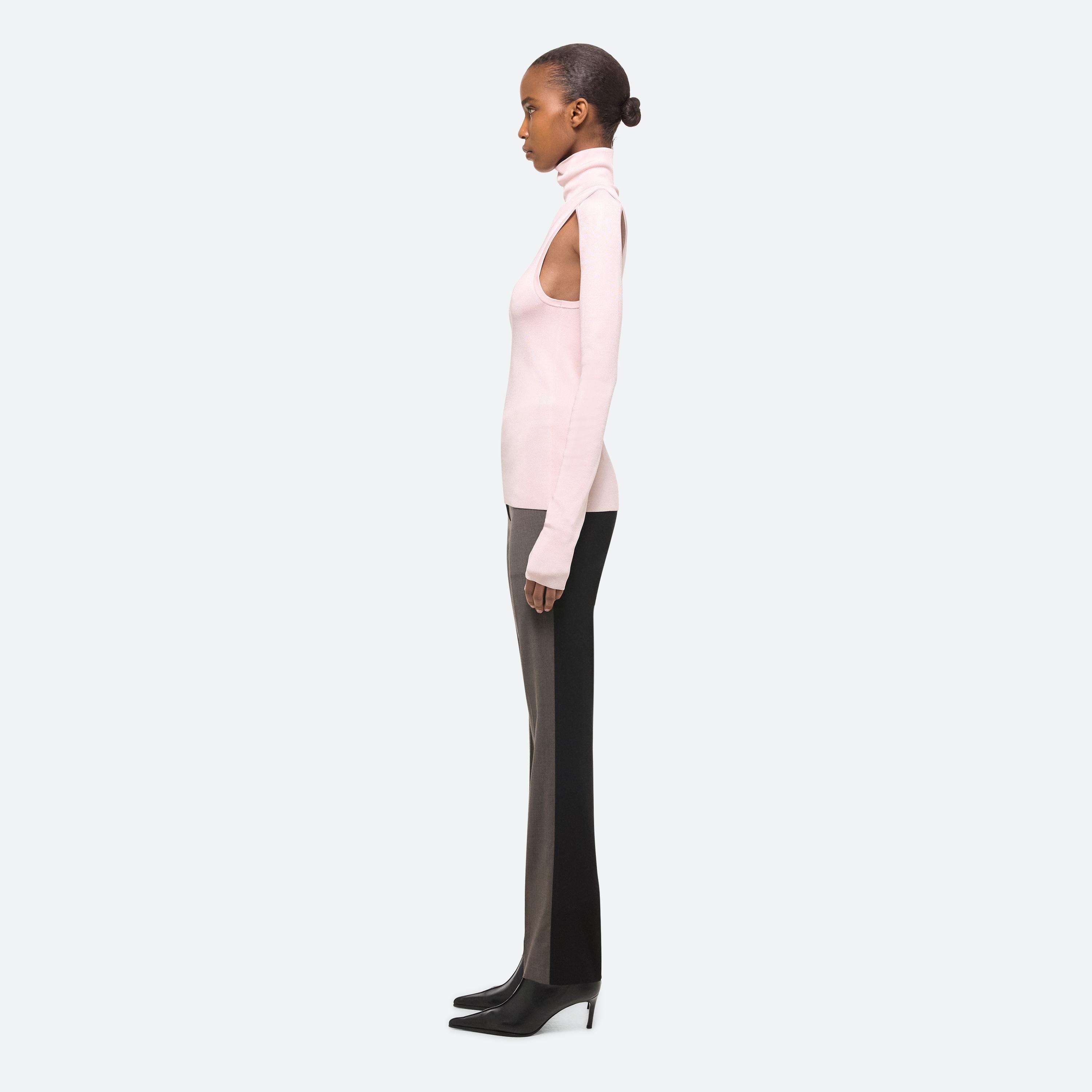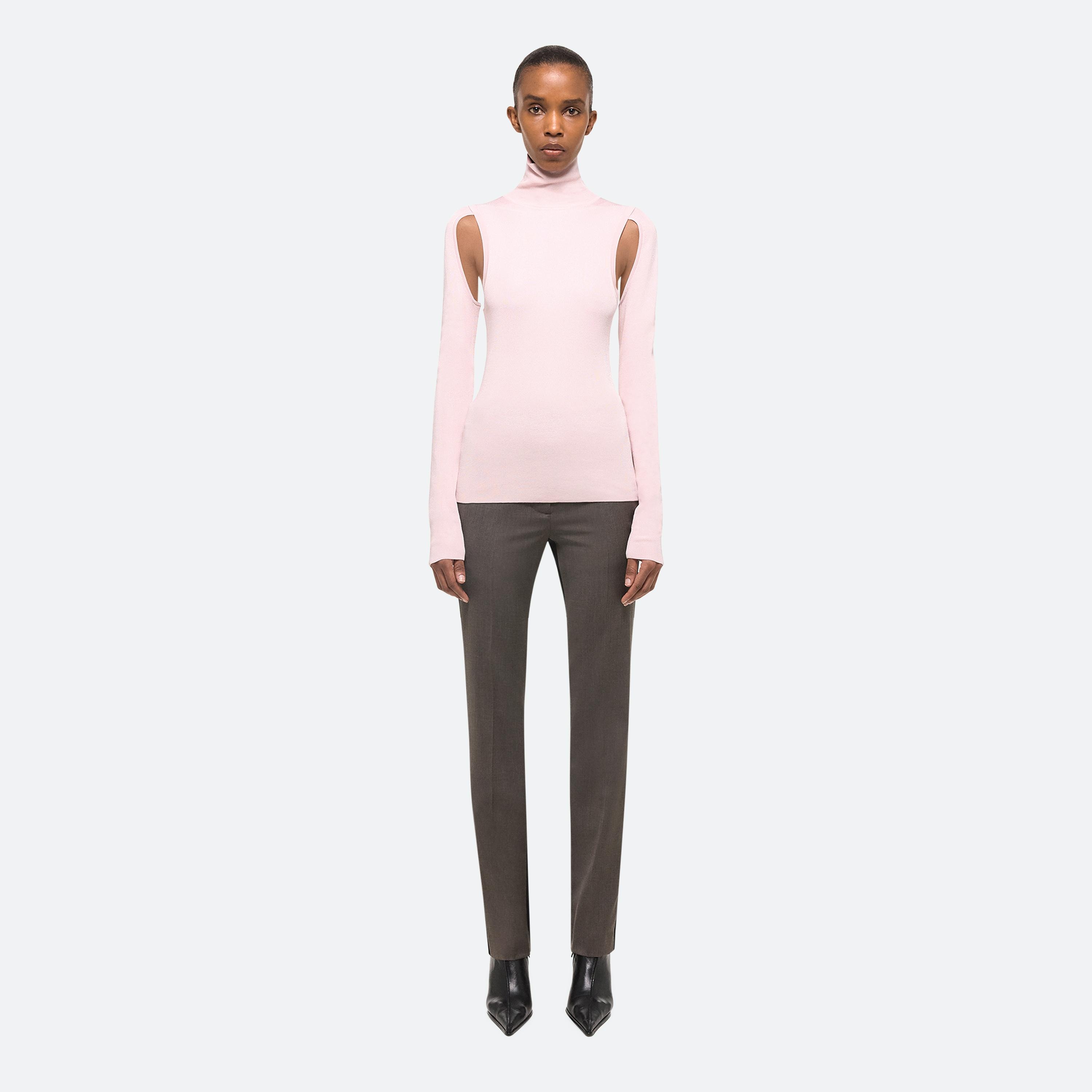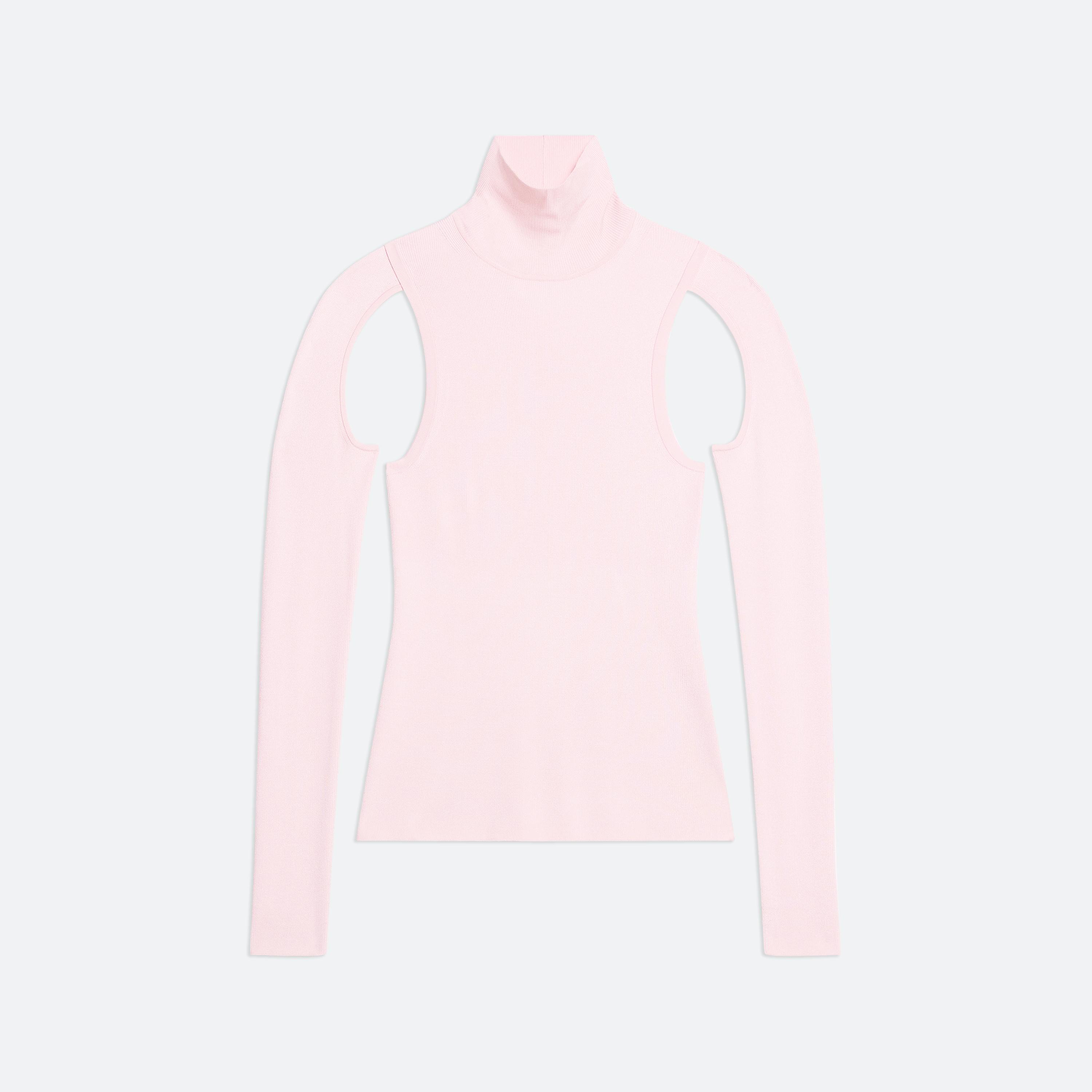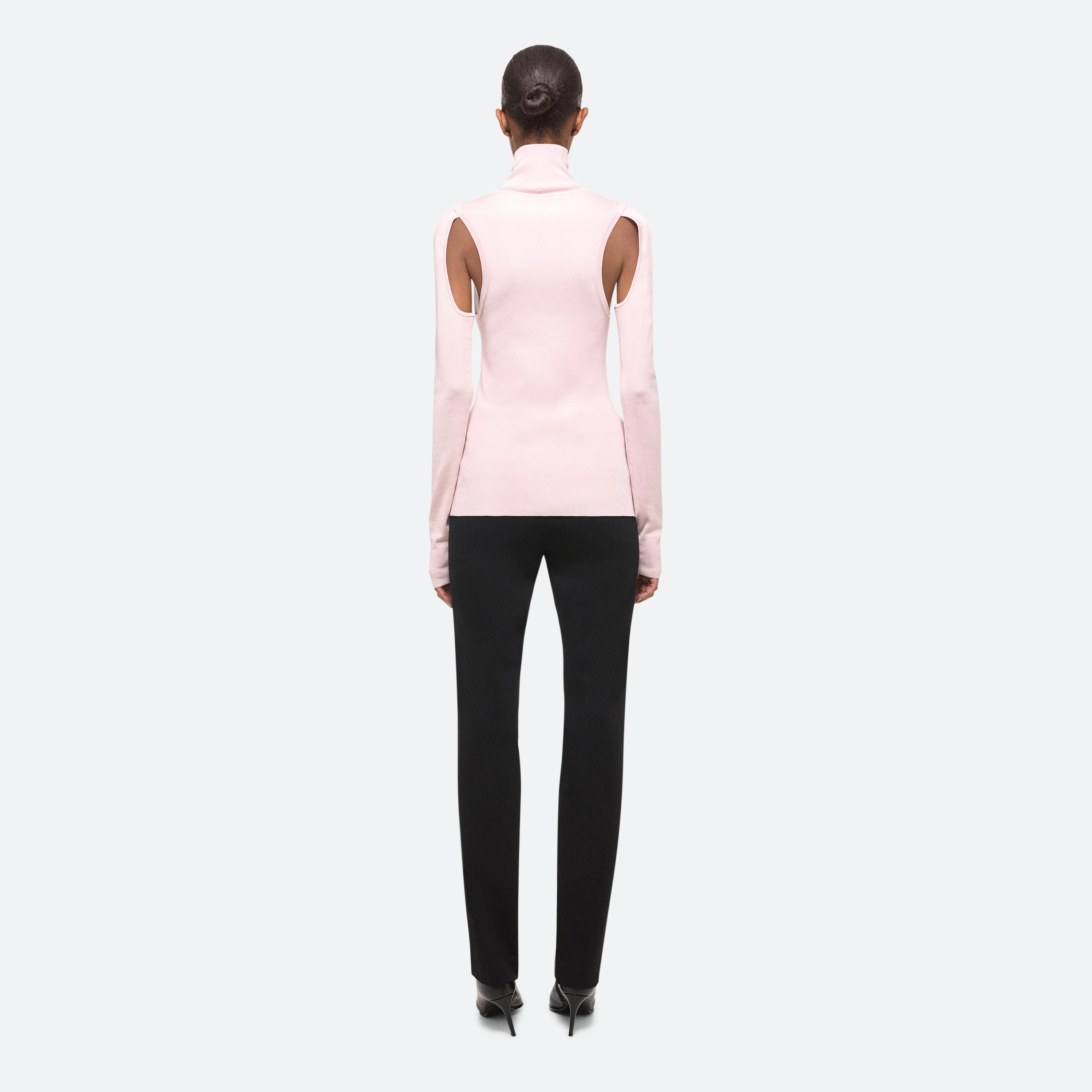 Fine-gauge turtleneck sweater in viscose knit with a subtle sheen. Slim fit with underarms cutouts finished with clean self knit trims.