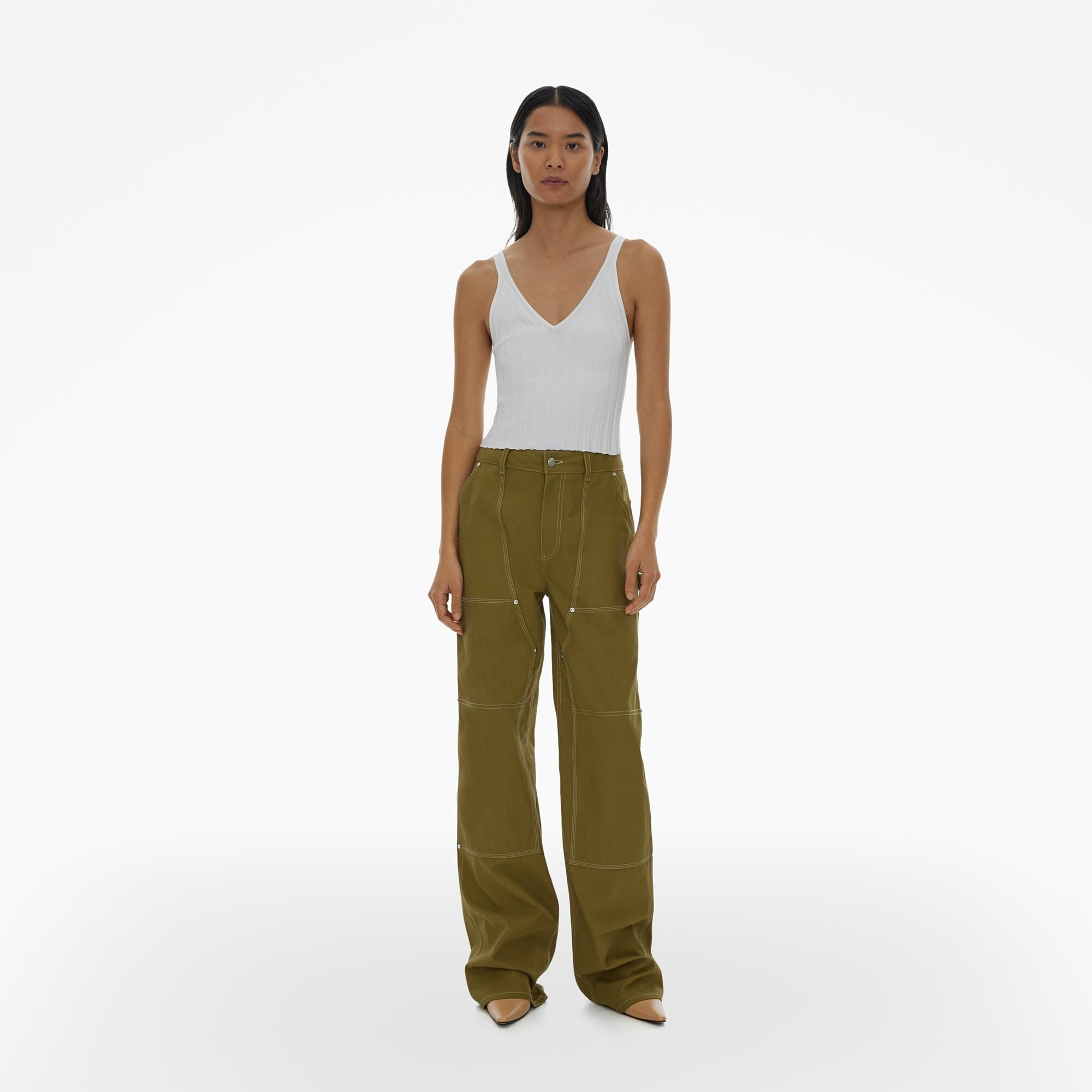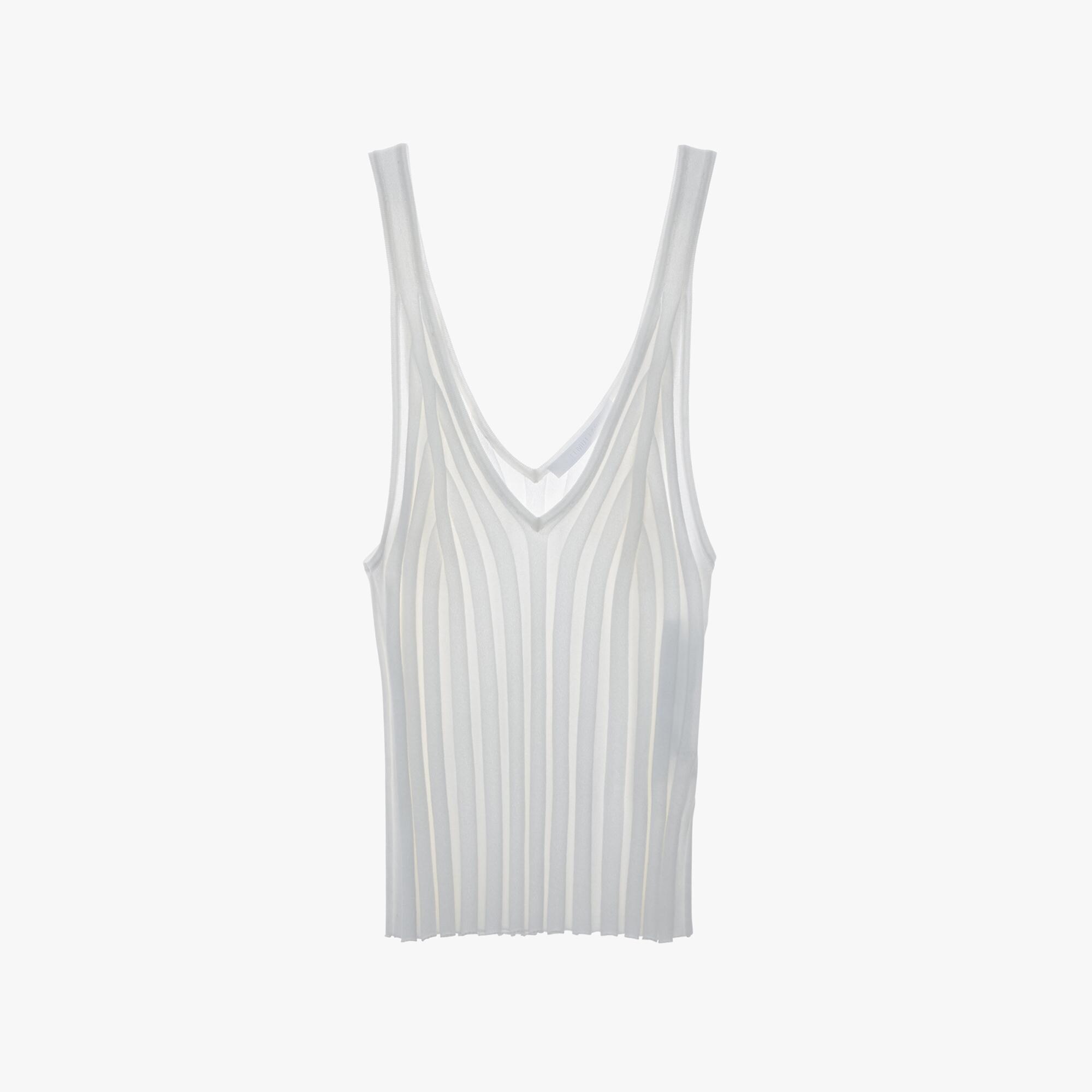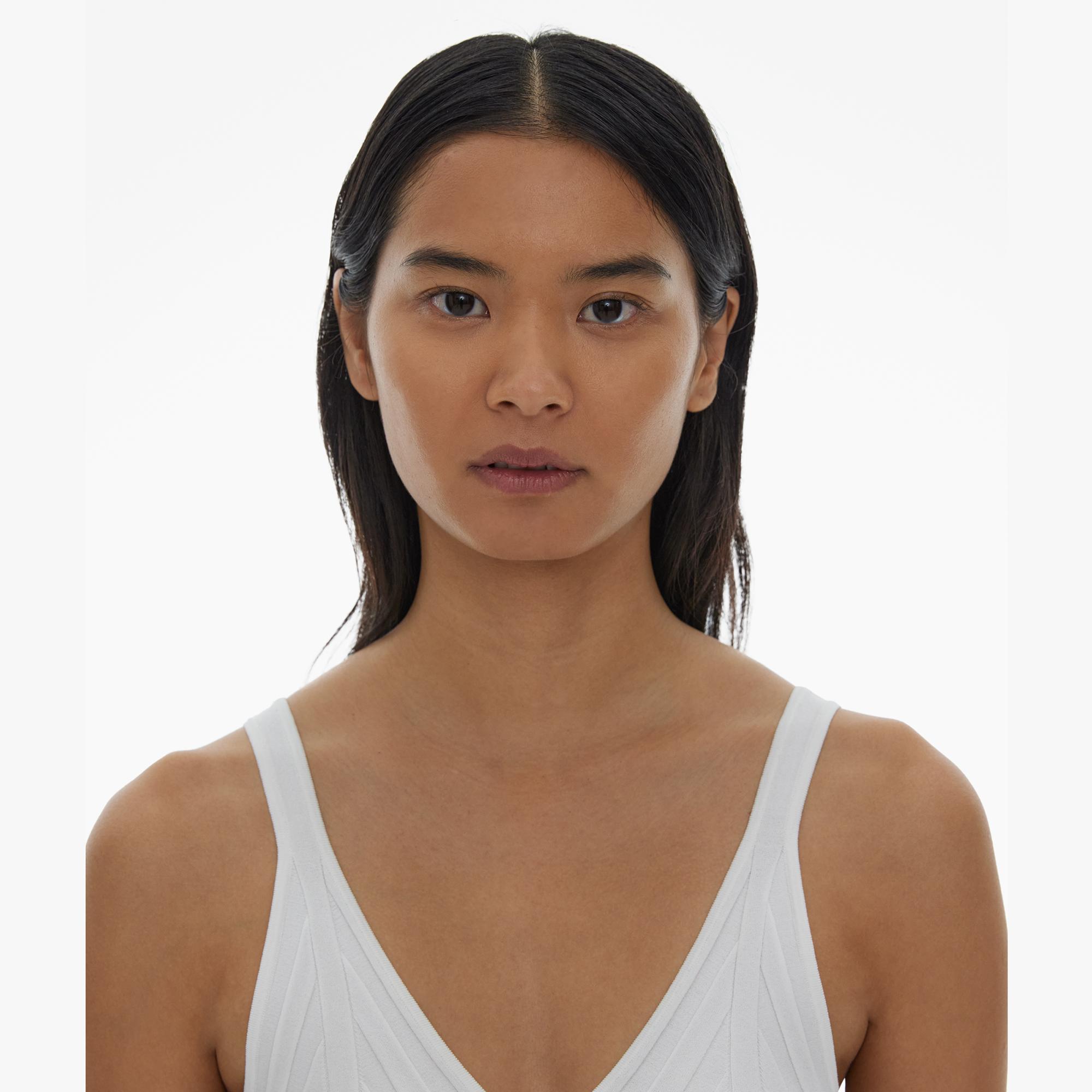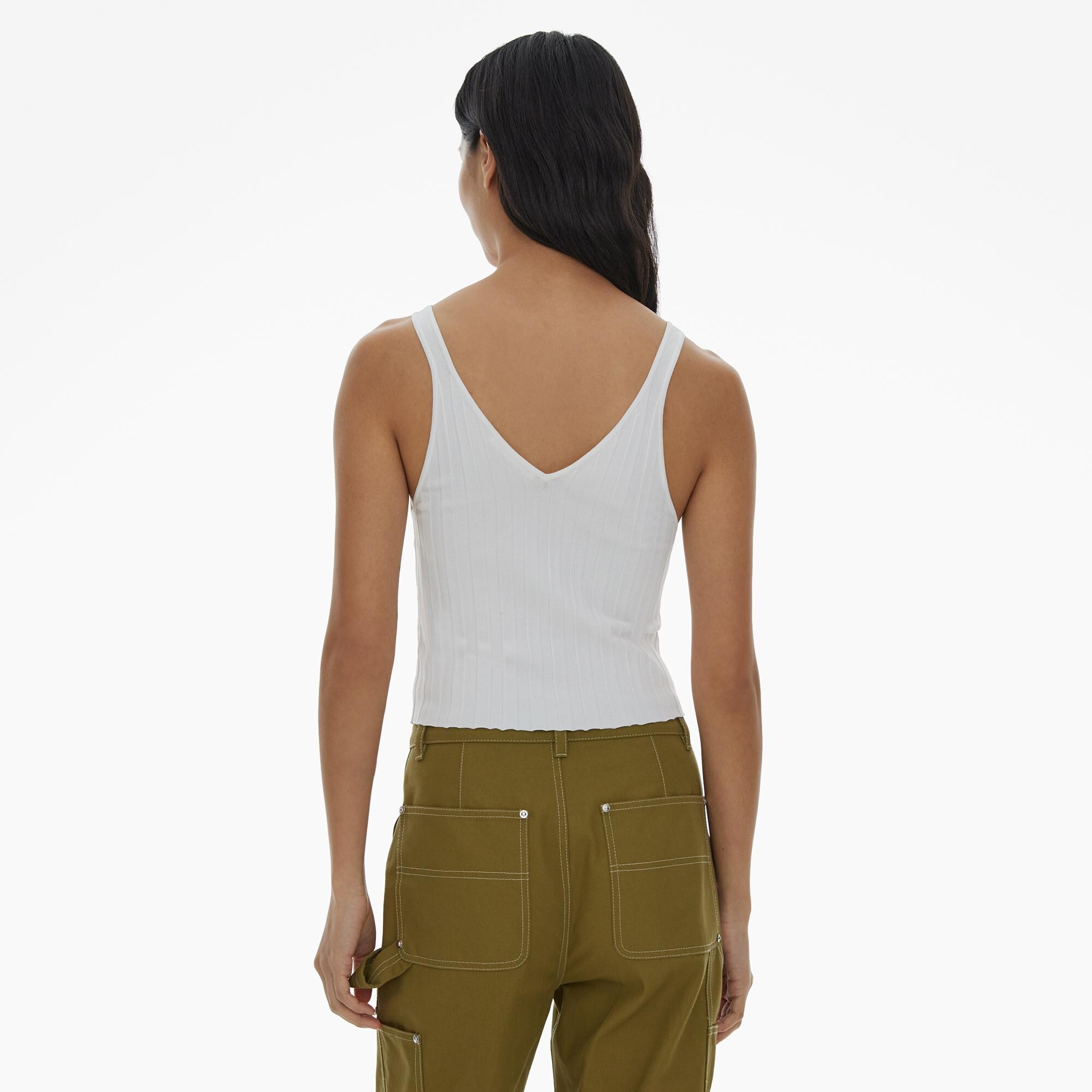 The Helmut Lang Angela Knit Tank is a sleeveless style in a rib knit viscose blend that is detailed with a V-neckline.