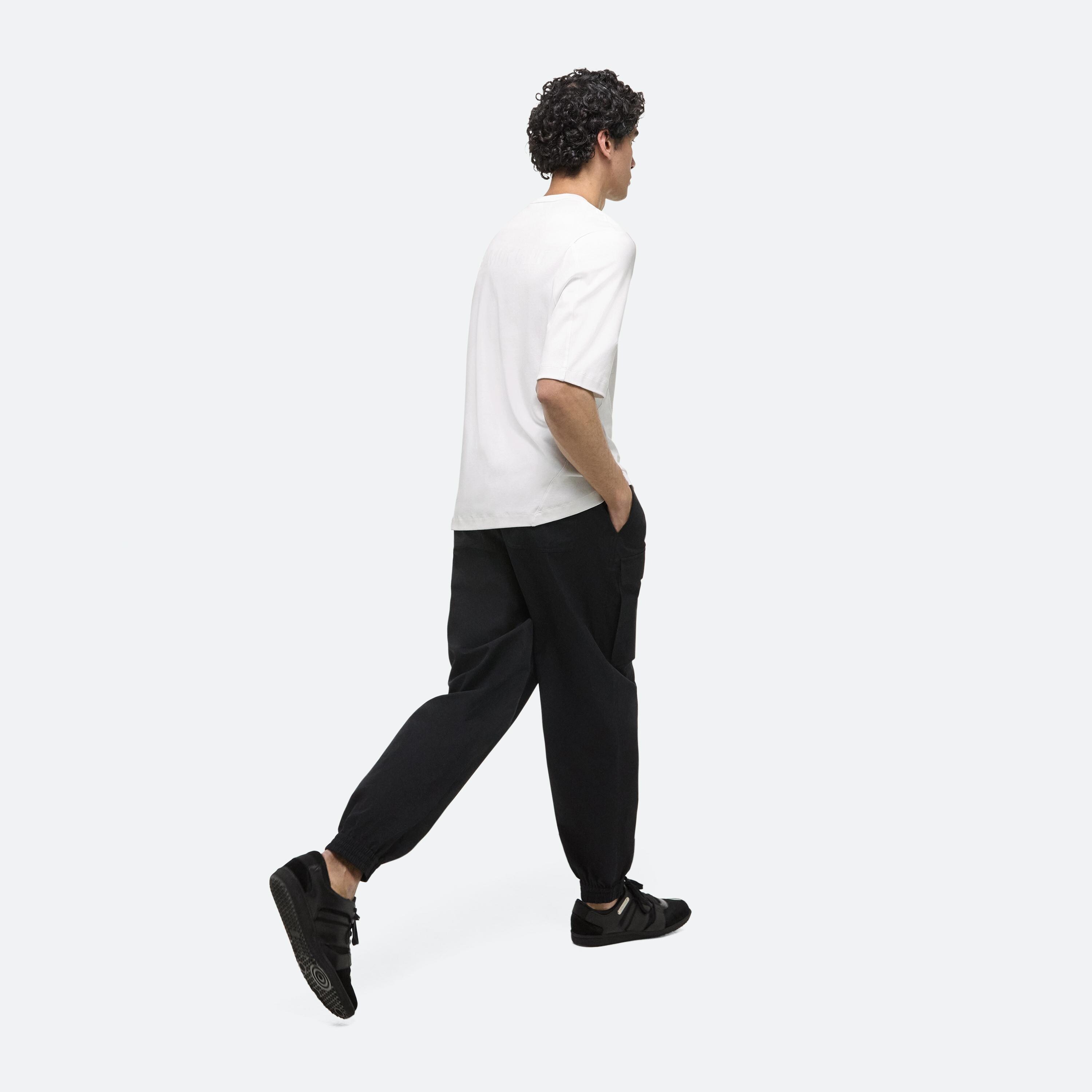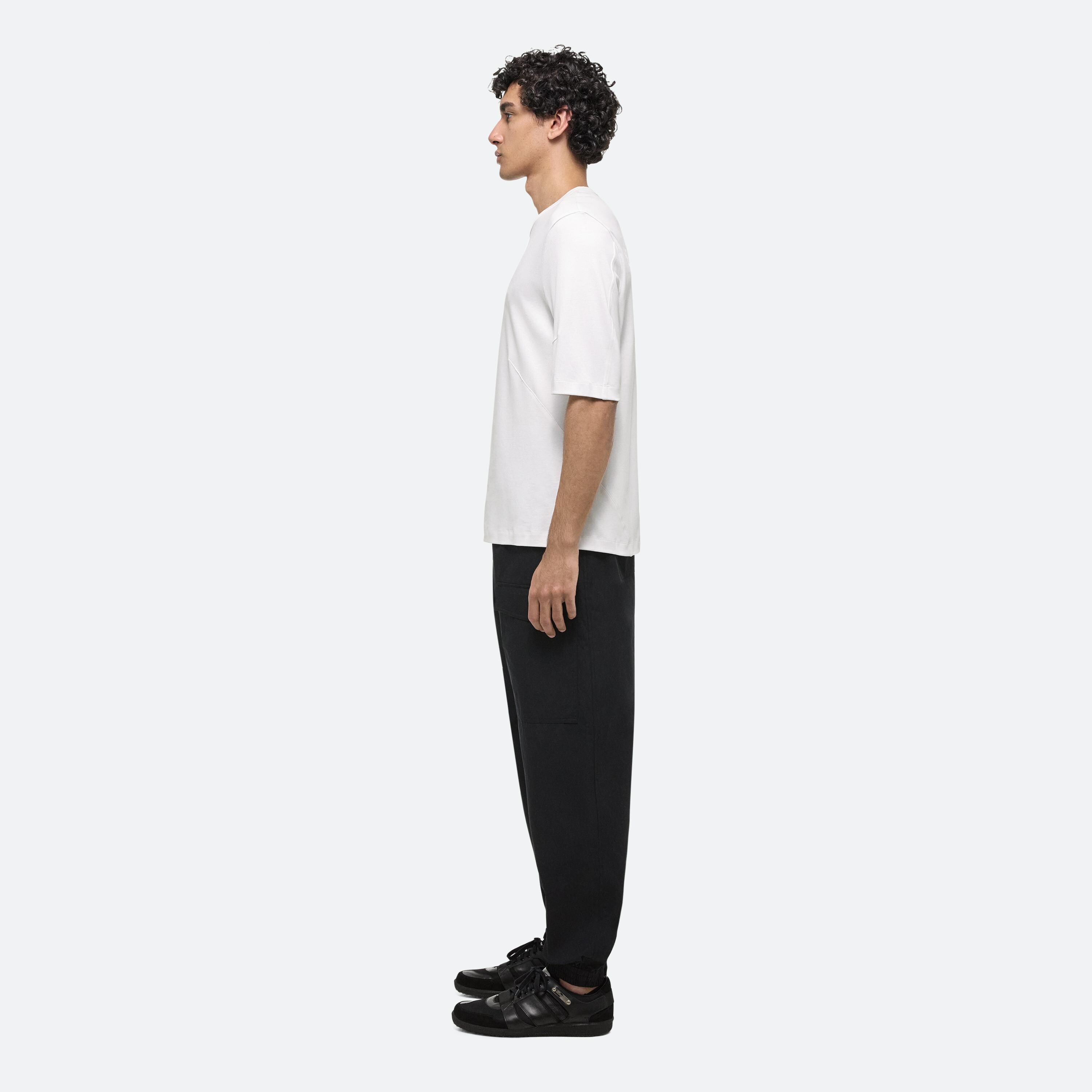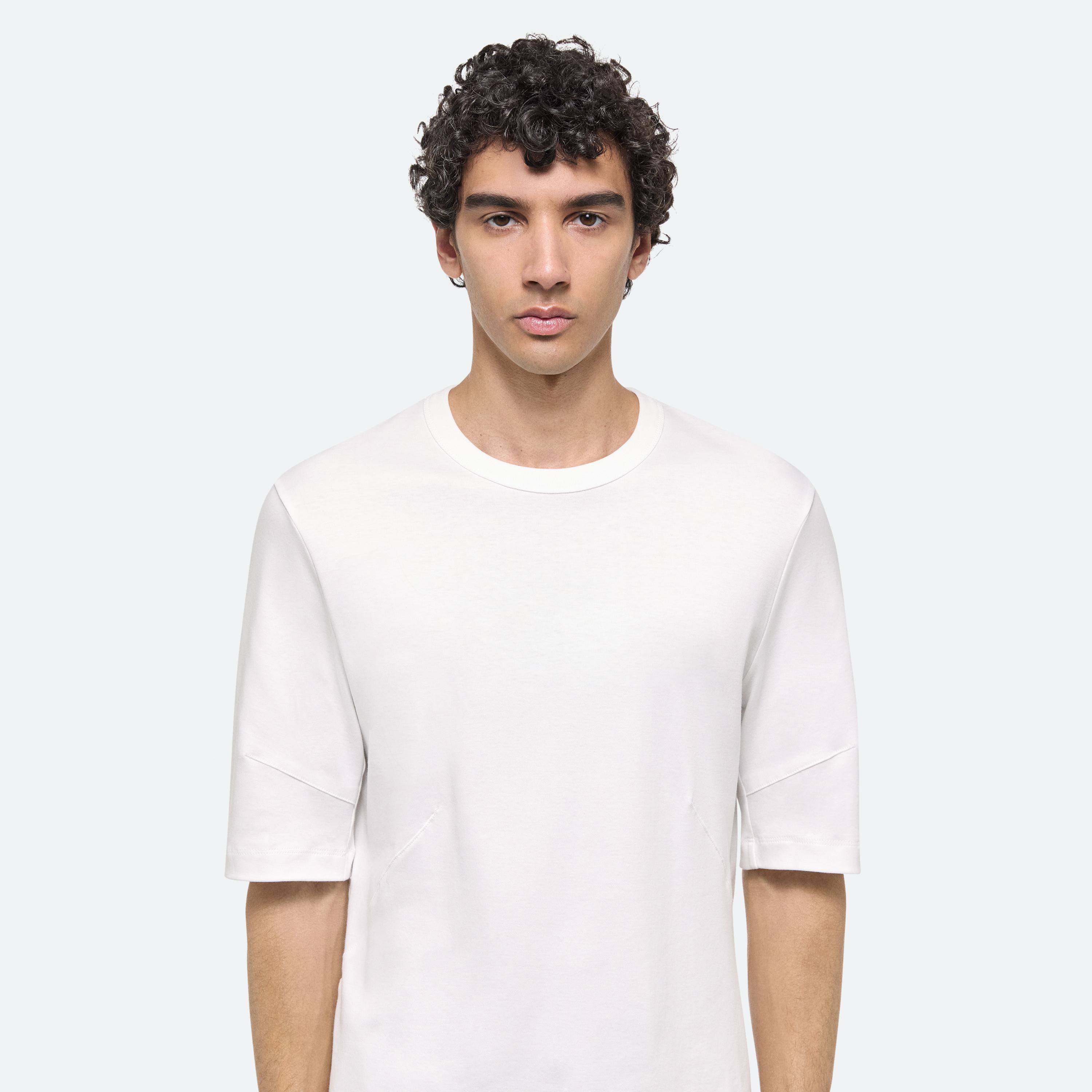 A relaxed fit crewneck tee with glossy logo text on back. A longer sleeve and wrapped seams emphasize the relaxed fit. Made in a midweight cotton jersey.