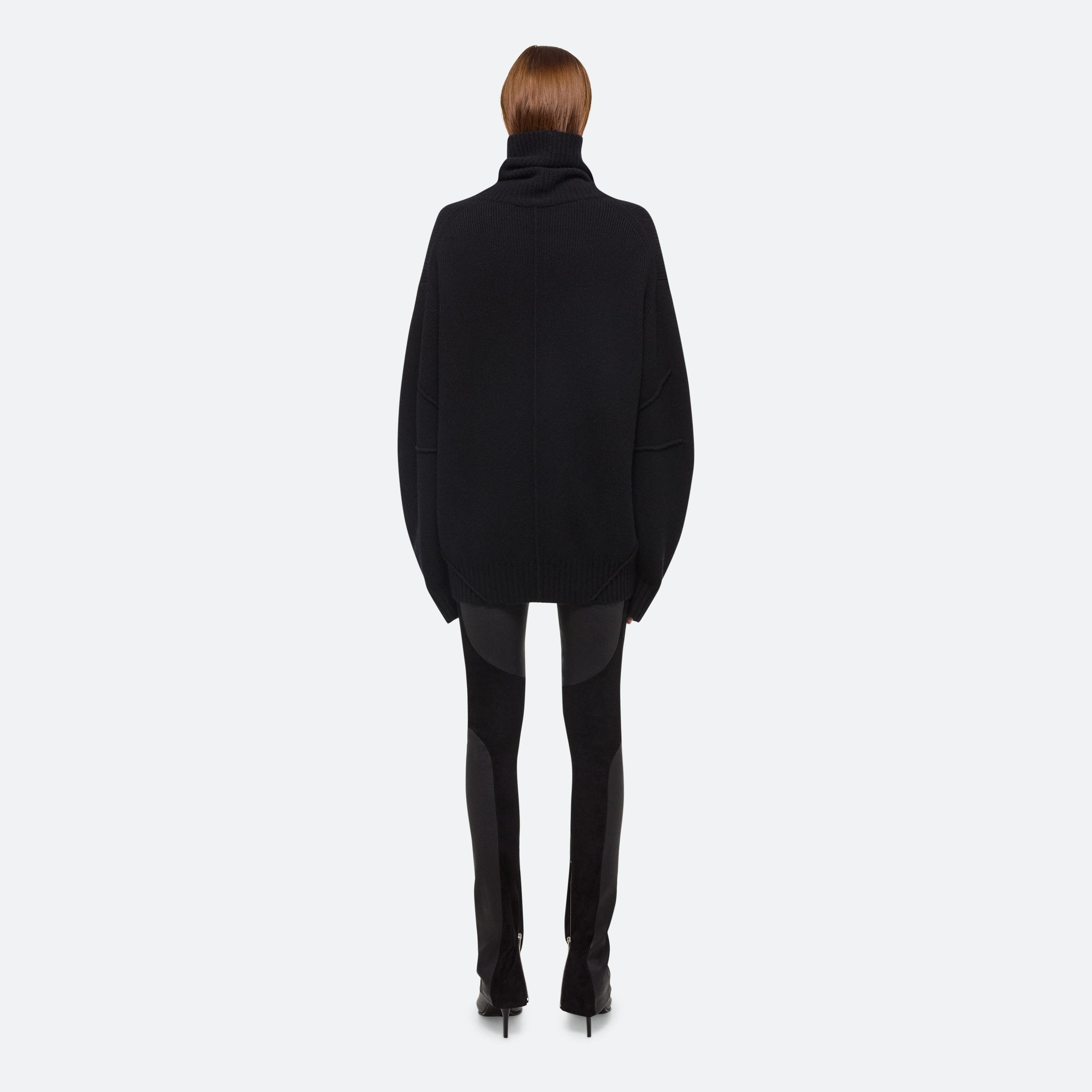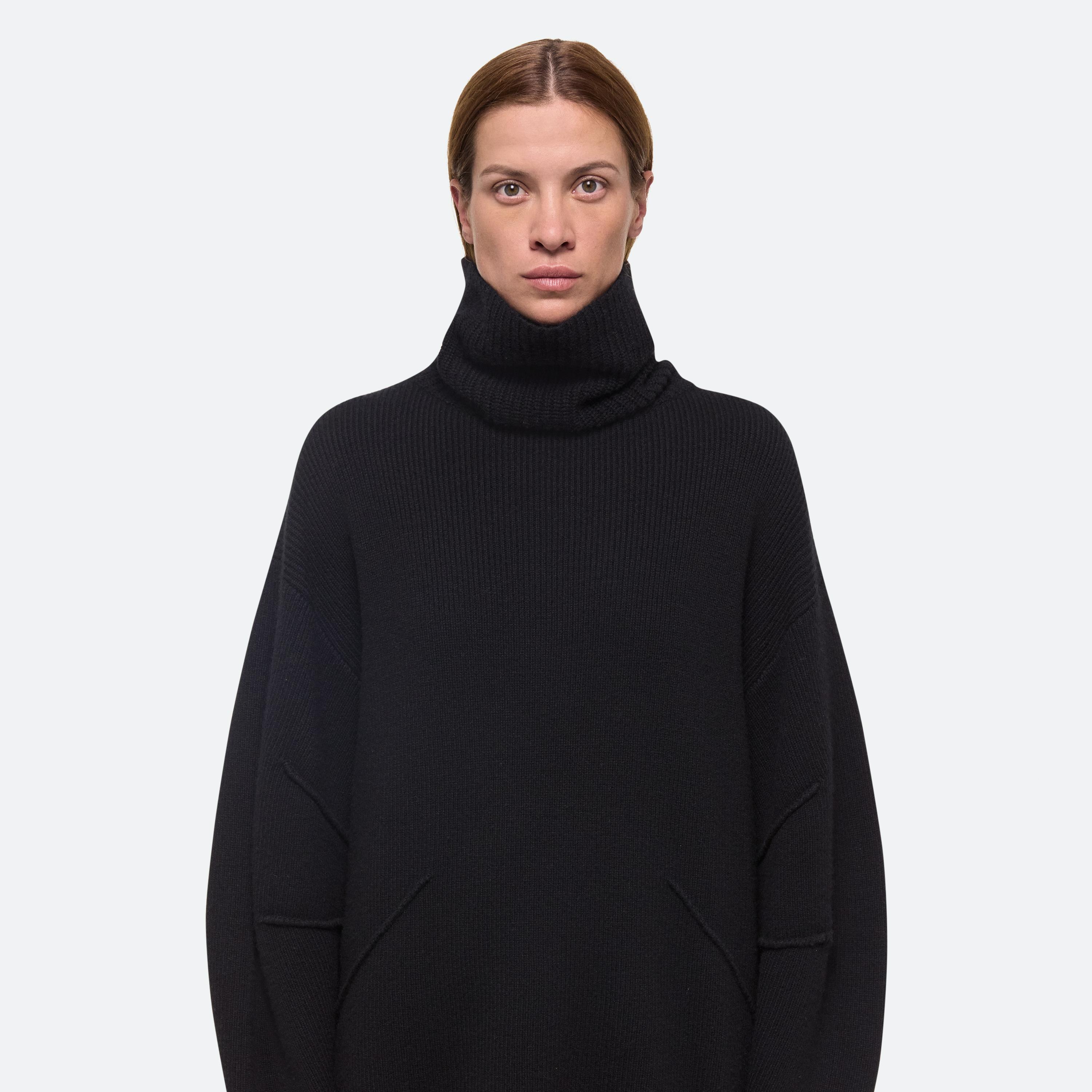 Turtleneck sweater in a midweight wool-cashmere blend. Pin-tucked seams wrap around the body, adding a softly curved shape to the oversized fit.
