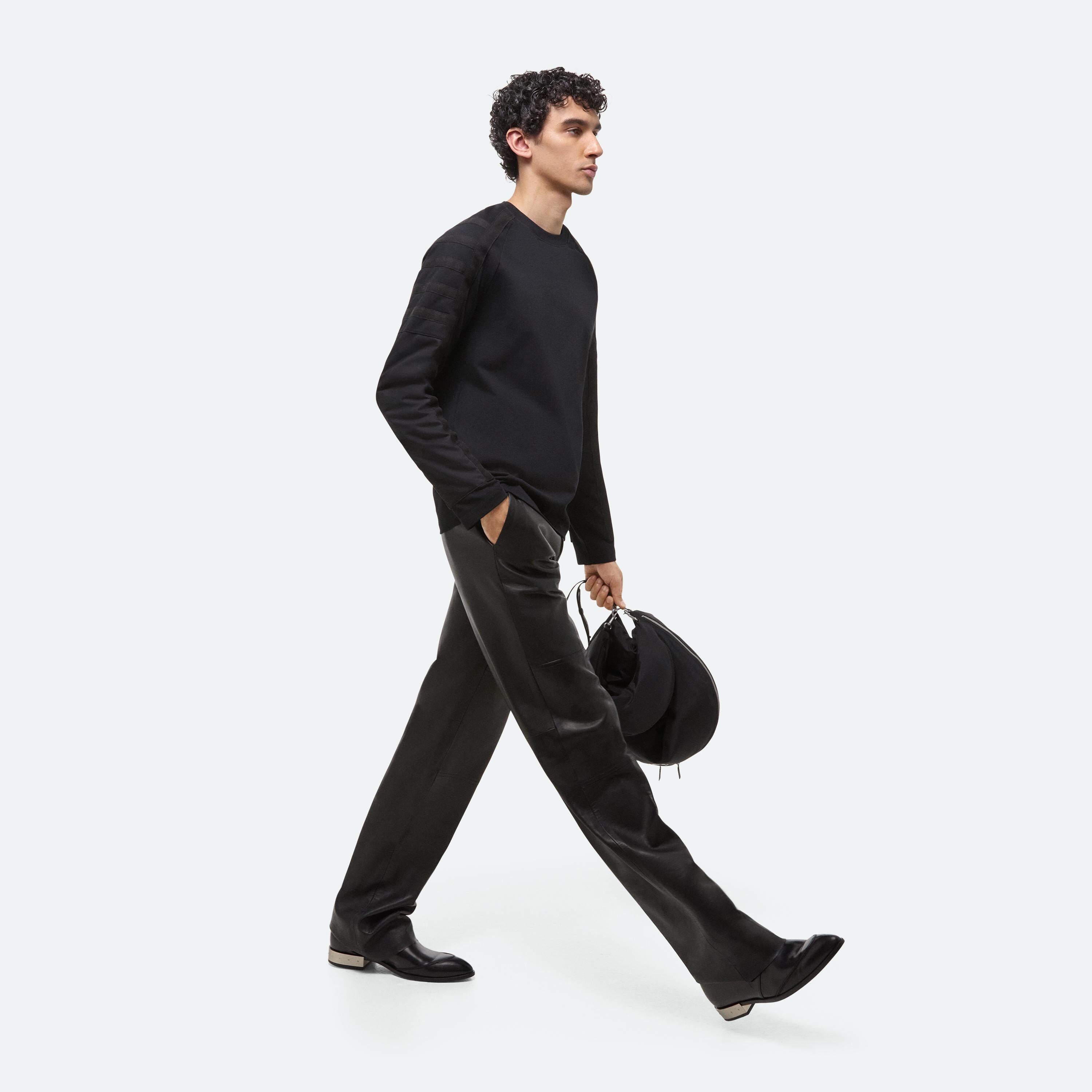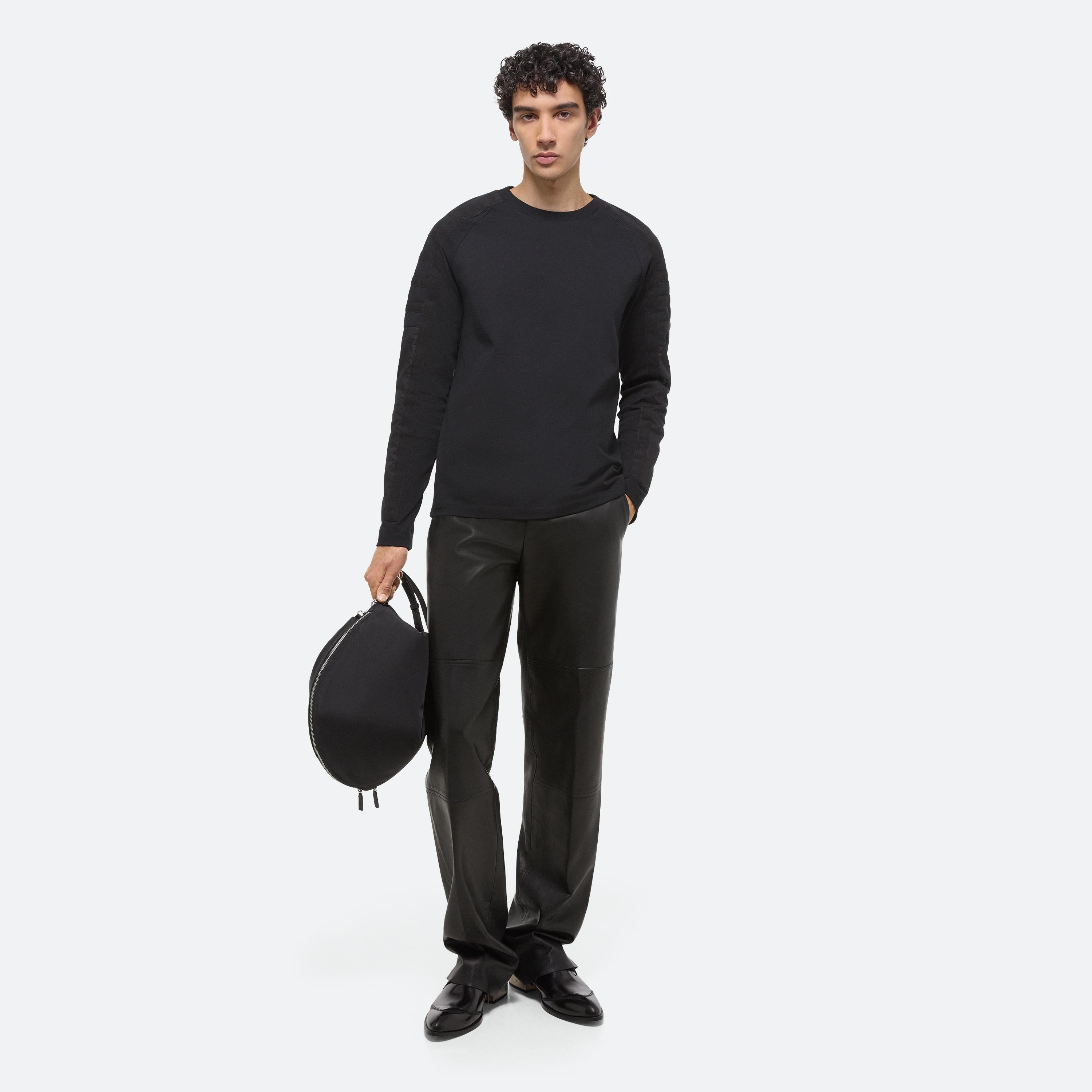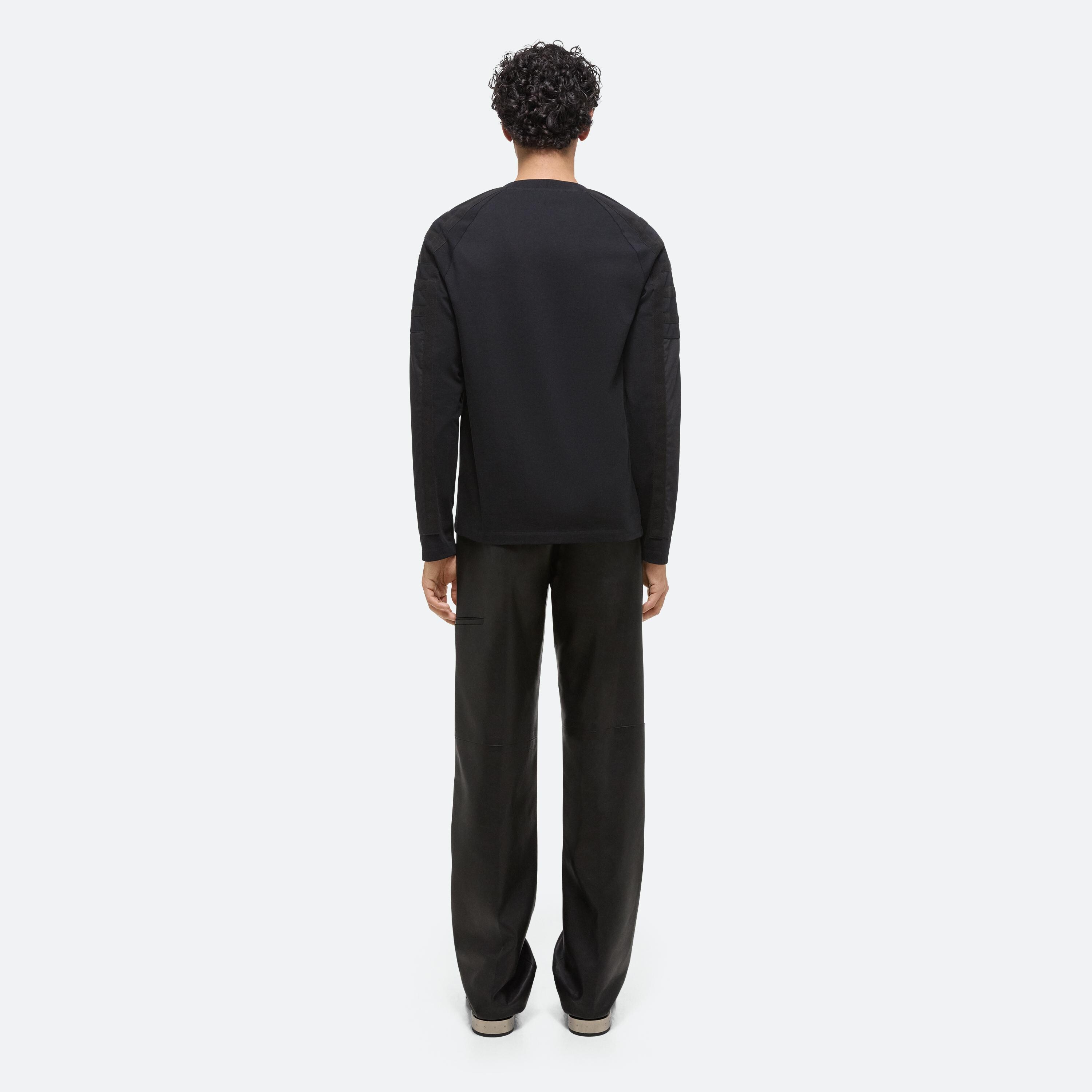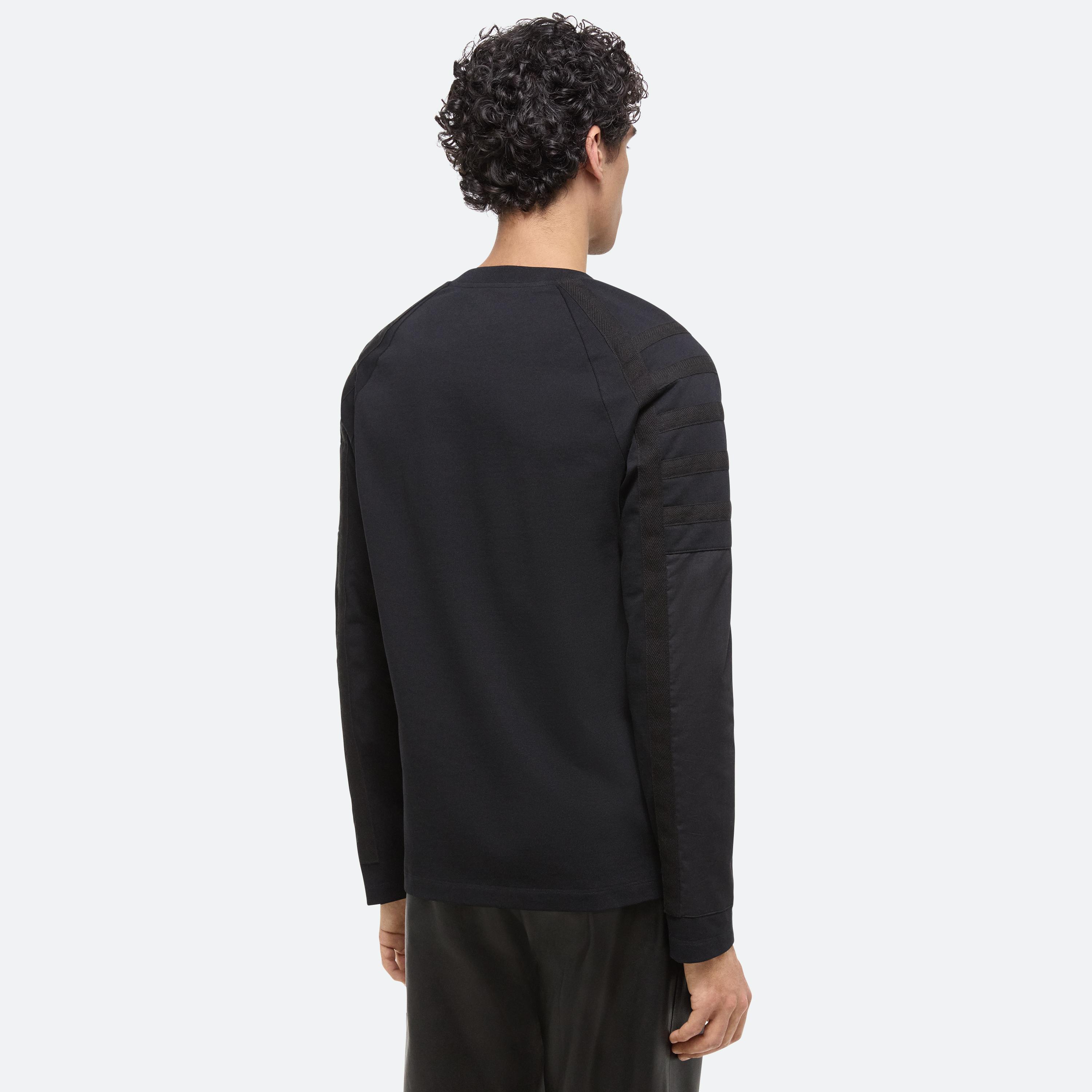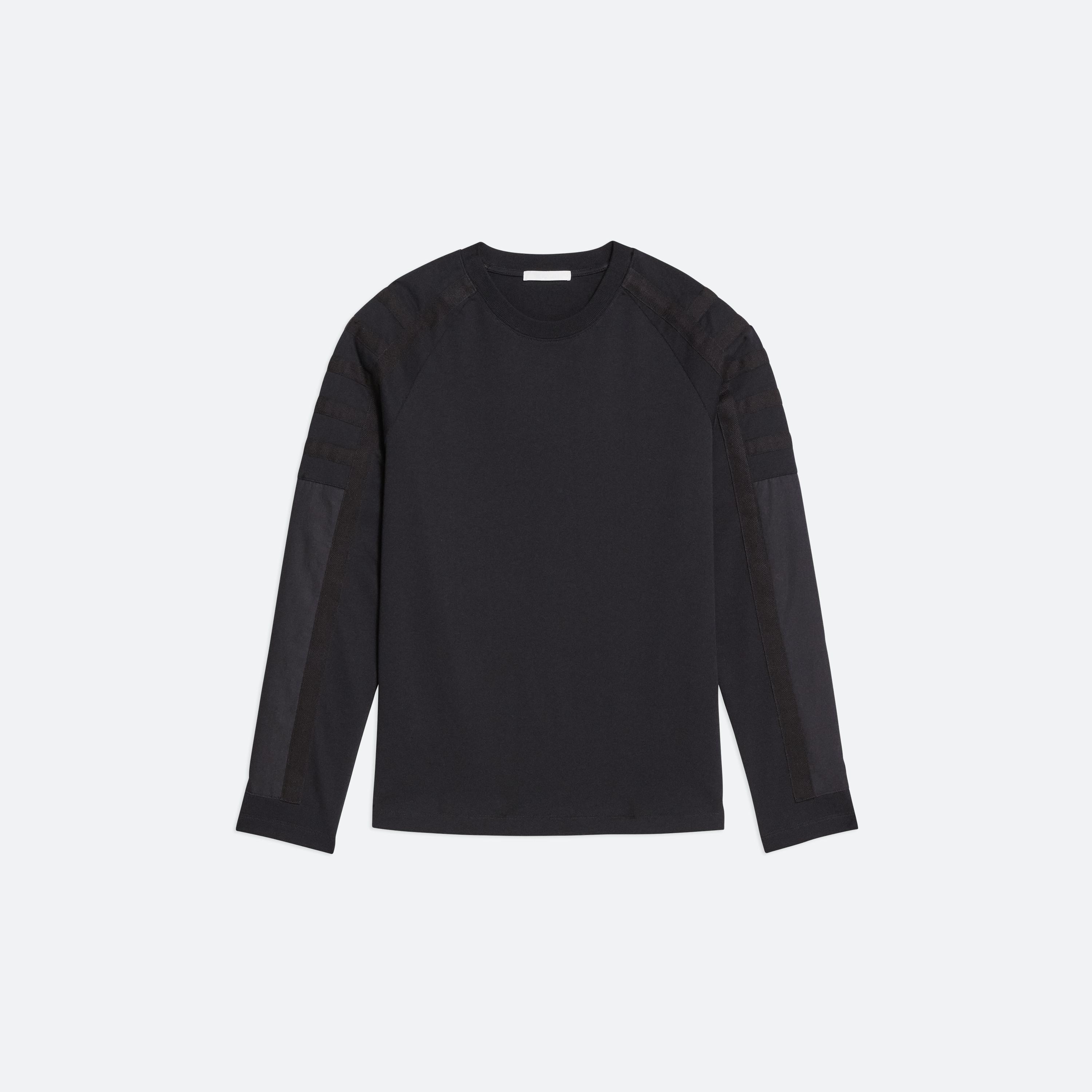 Classic crewneck with raglan sleeves. Functional padding and taping details bring the protective elements of a flight suit through the shoulders and down the arms. Made in a heavyweight cotton jersey.
