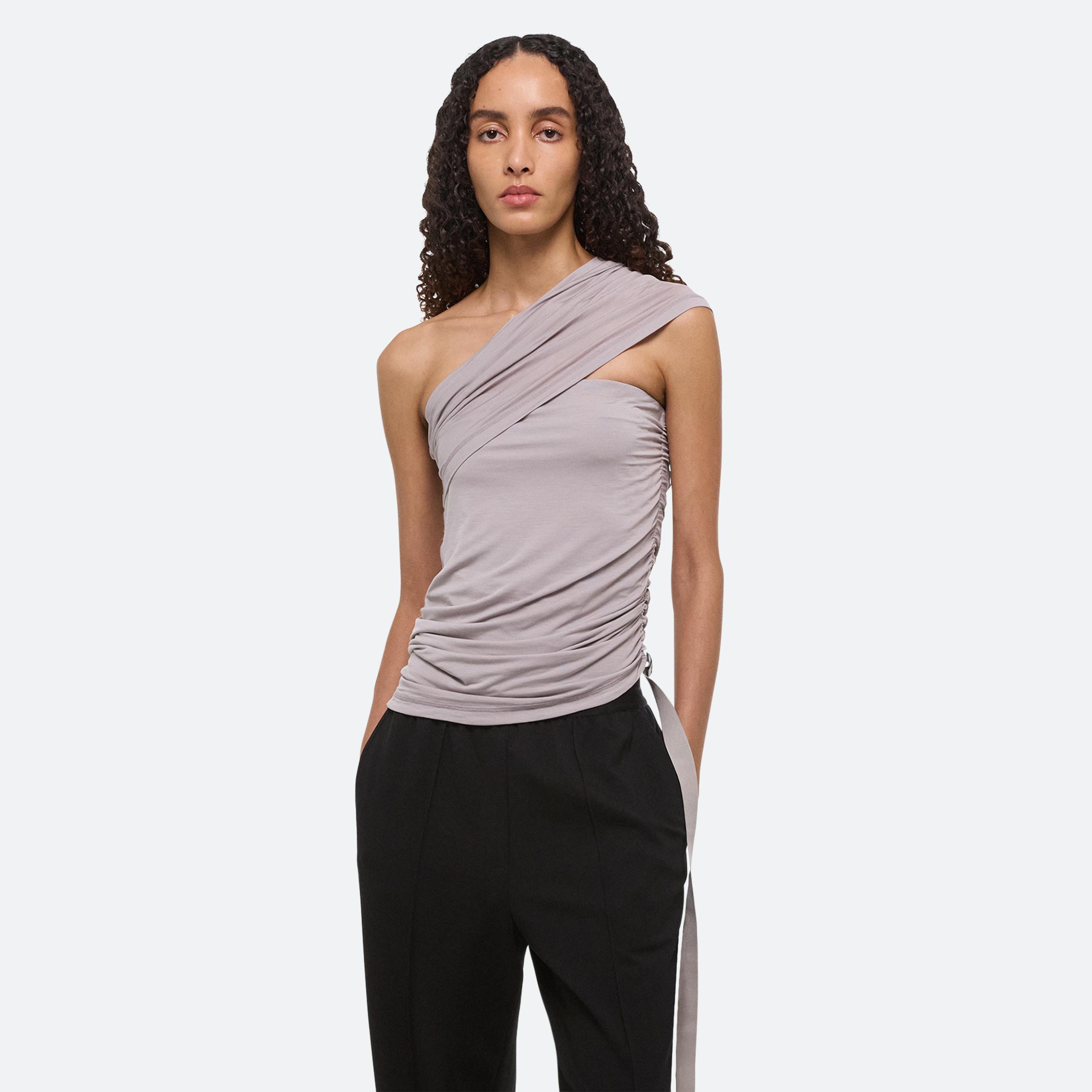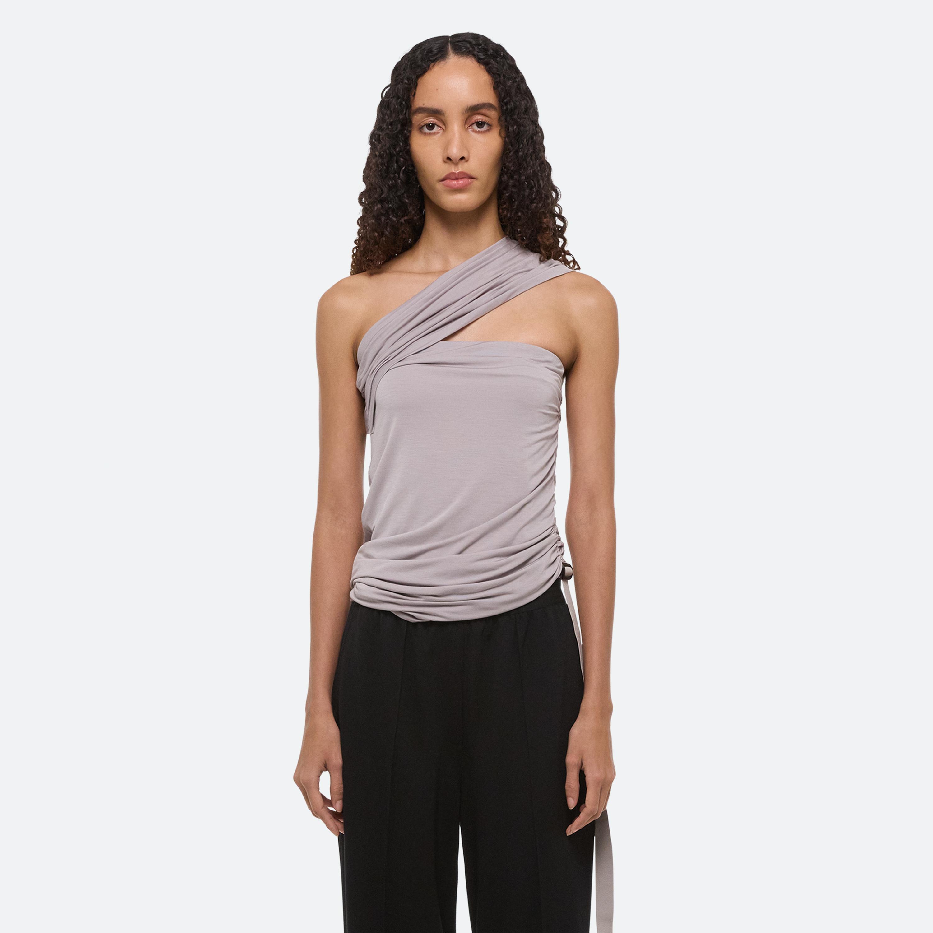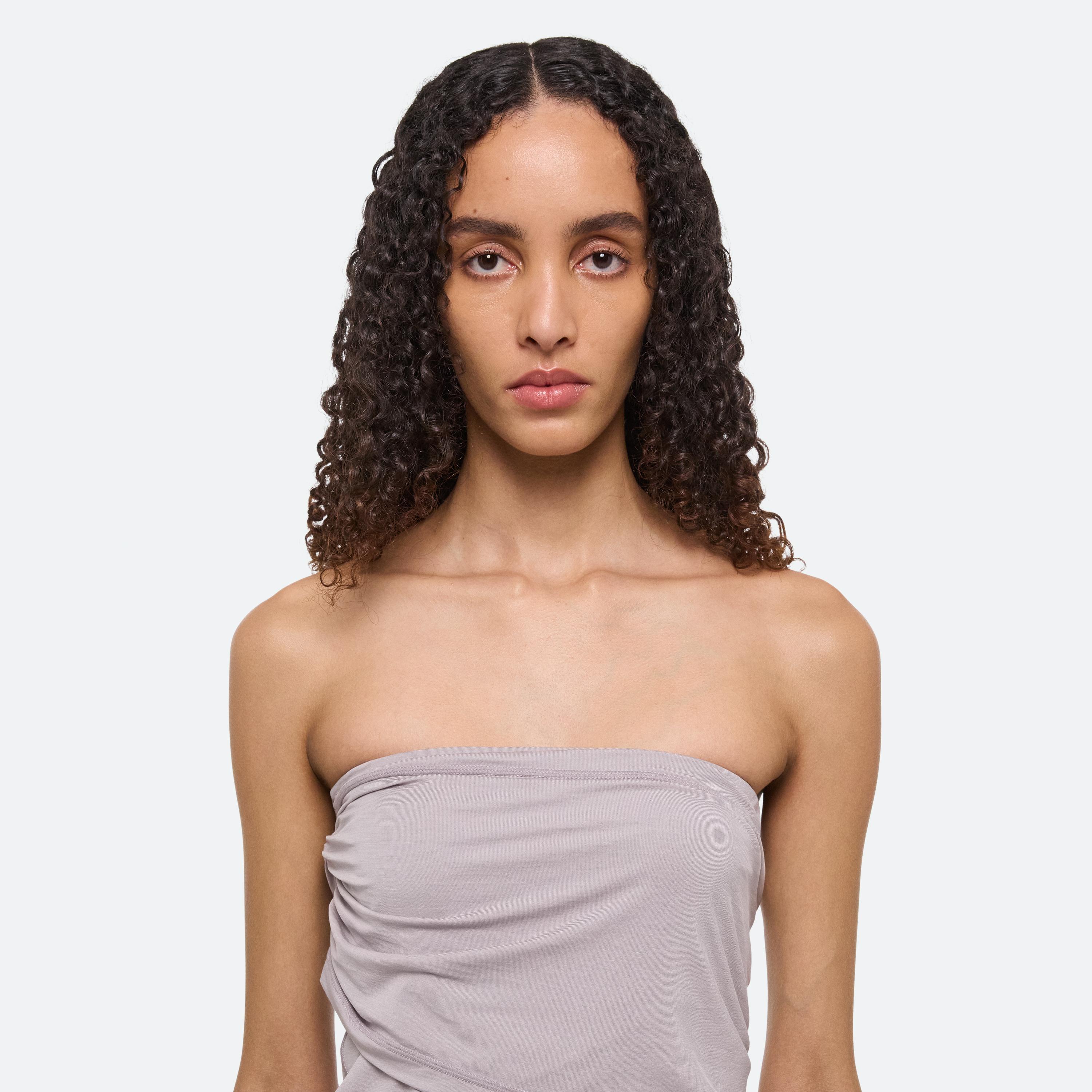 Strapless top with asymmetrical shoulder sash detail. Control the length of the top with our signature seatbelt strap. Matches the Asymmetrical Wind Skirt.