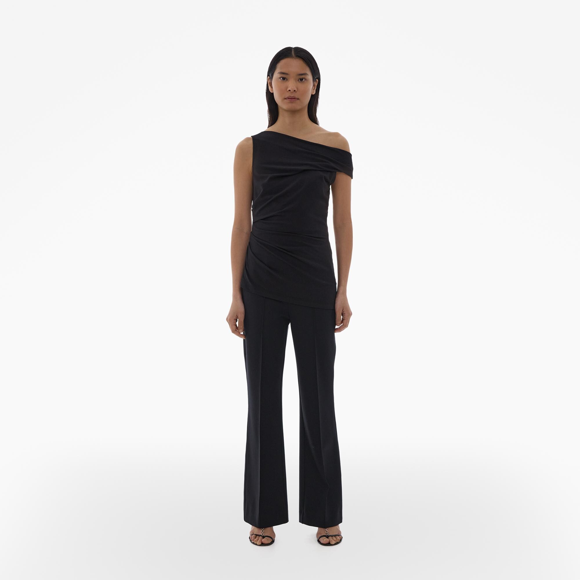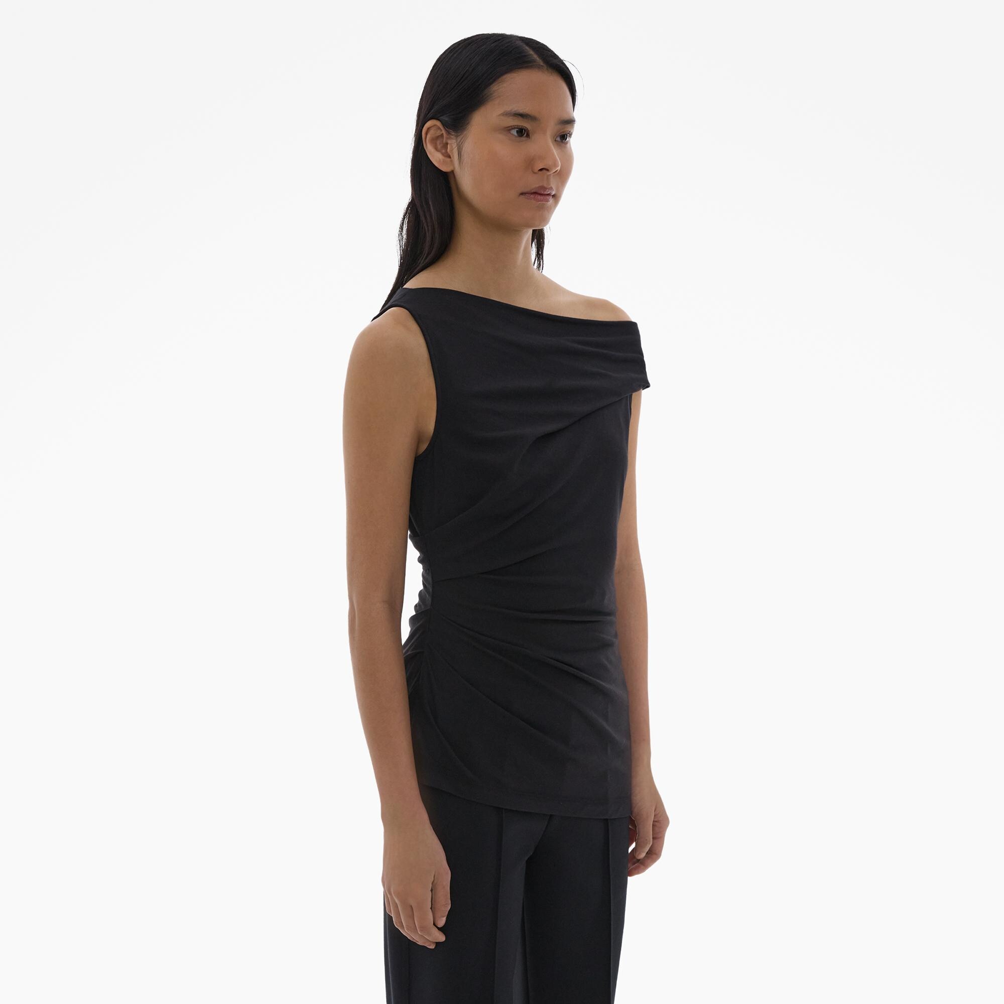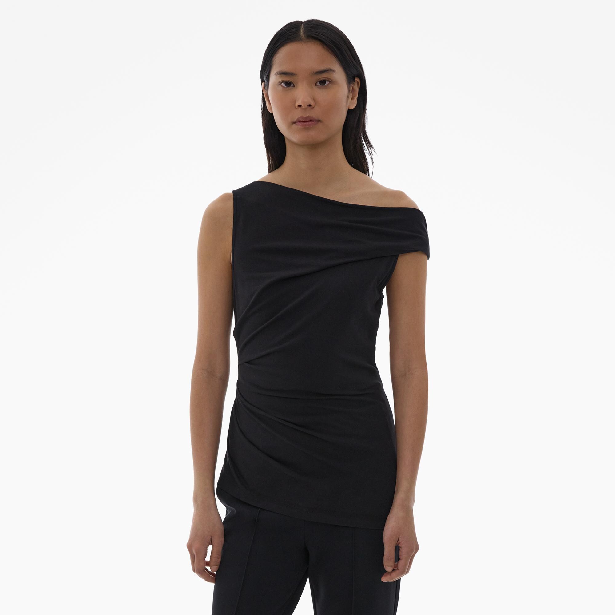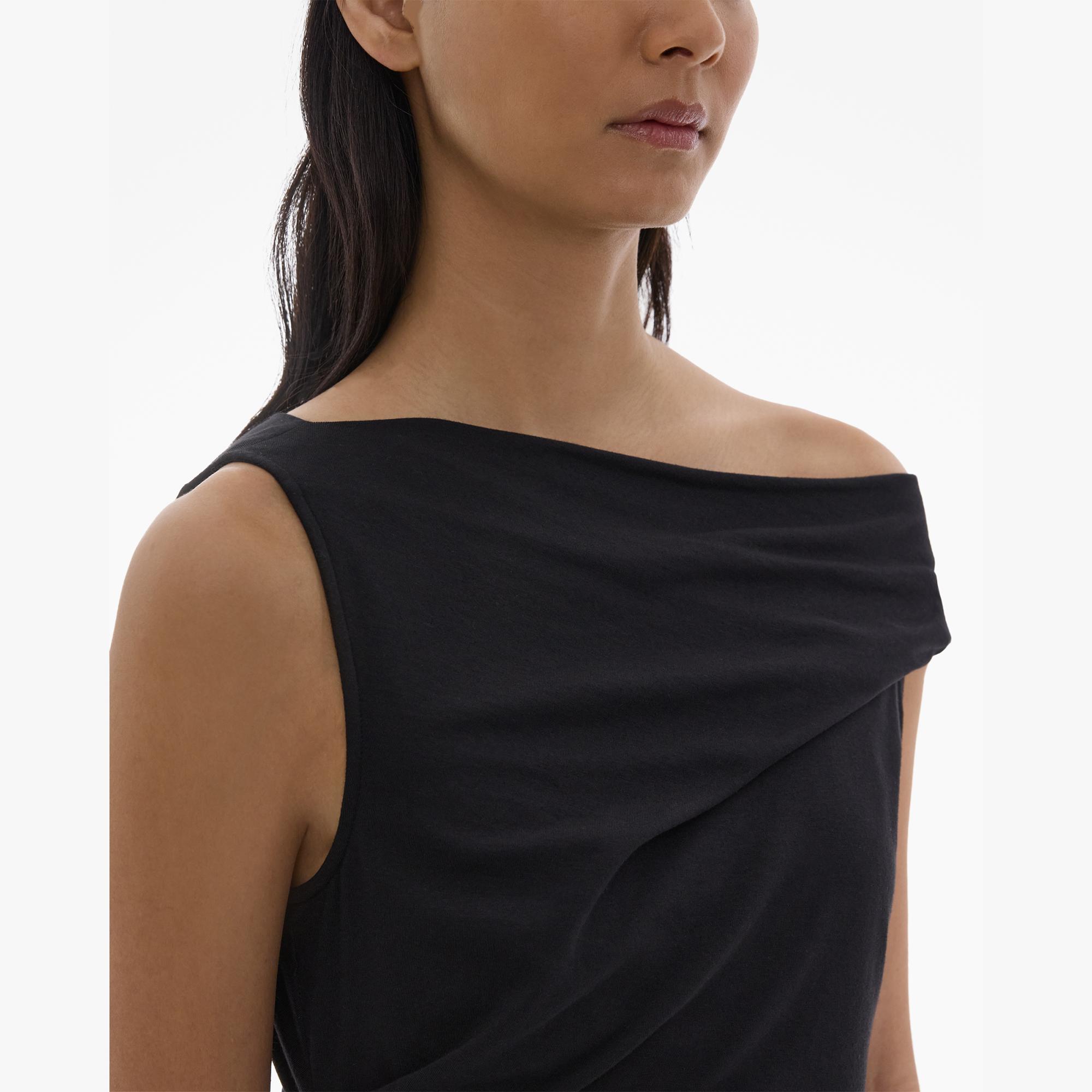 The Helmut Lang Top is a sleeveless style in cotton with an asymmetrical neckline and hemline.