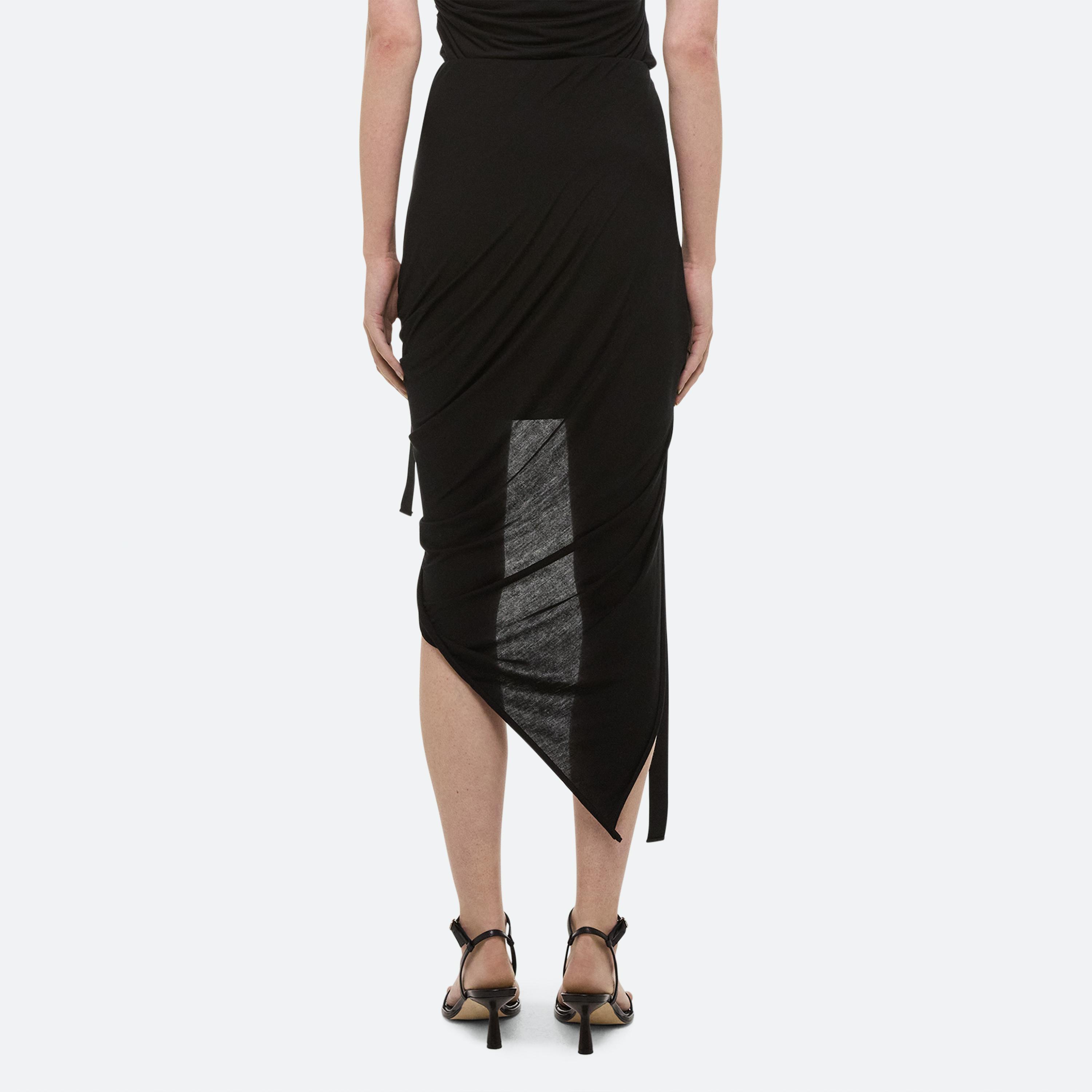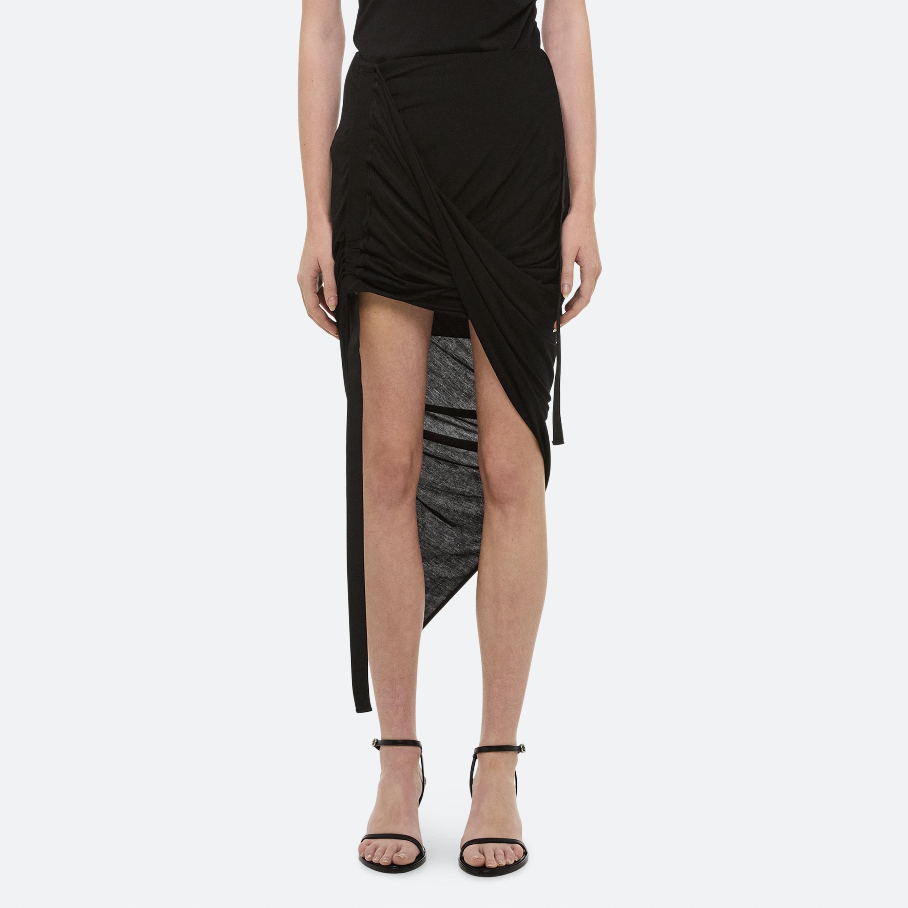 Asymmetrical skirt in soft lyocell jersey. Control the drape of the skirt with our signature seatbelt strap to emphasize the mini length. Matches the Asymmetrical Protection Top.