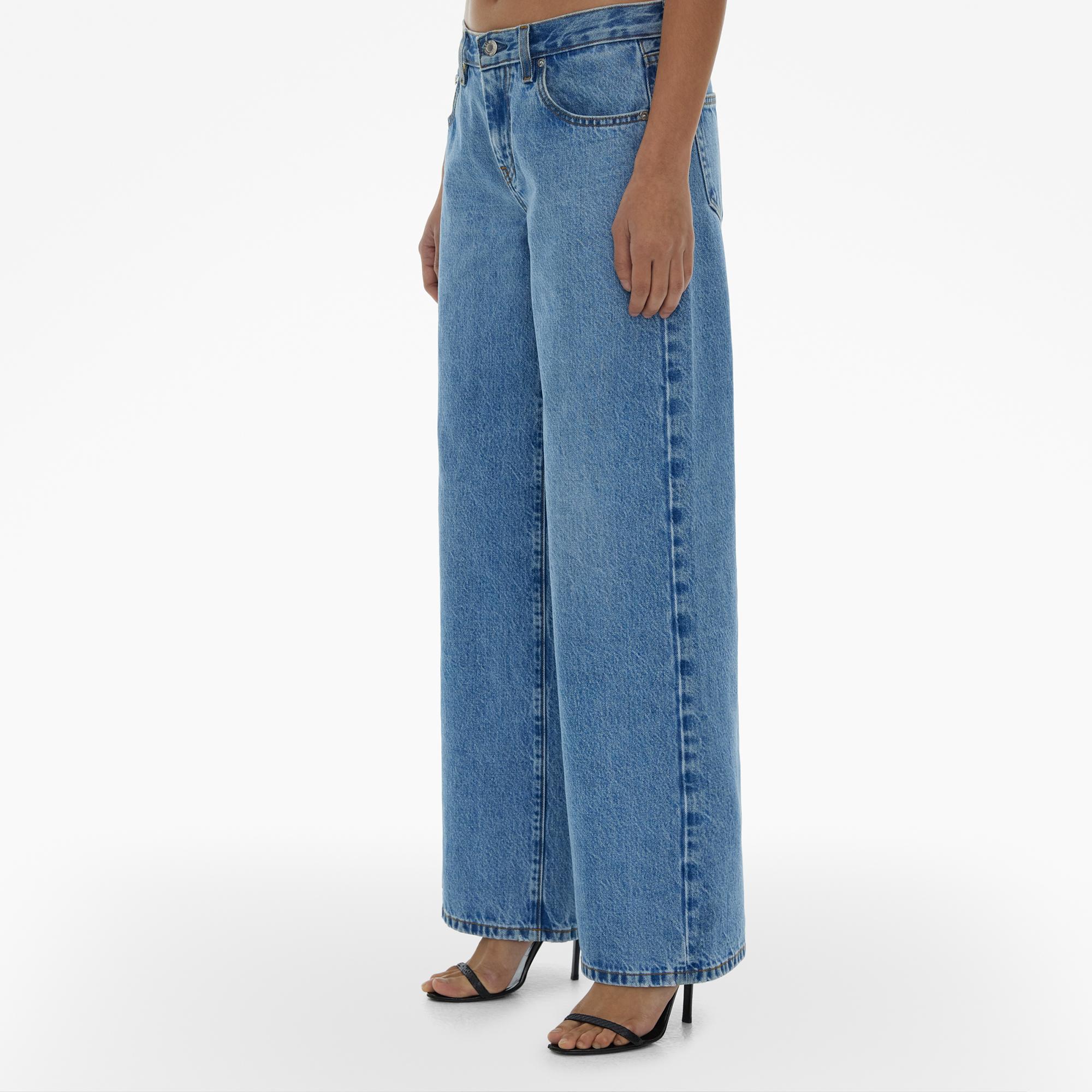 The Helmut Lang Baggy Jeans are a relaxed straight-leg style in rigid cotton in an indigo wash that is detailed with belt loops, zip fly and button closure and five-pocket styling.