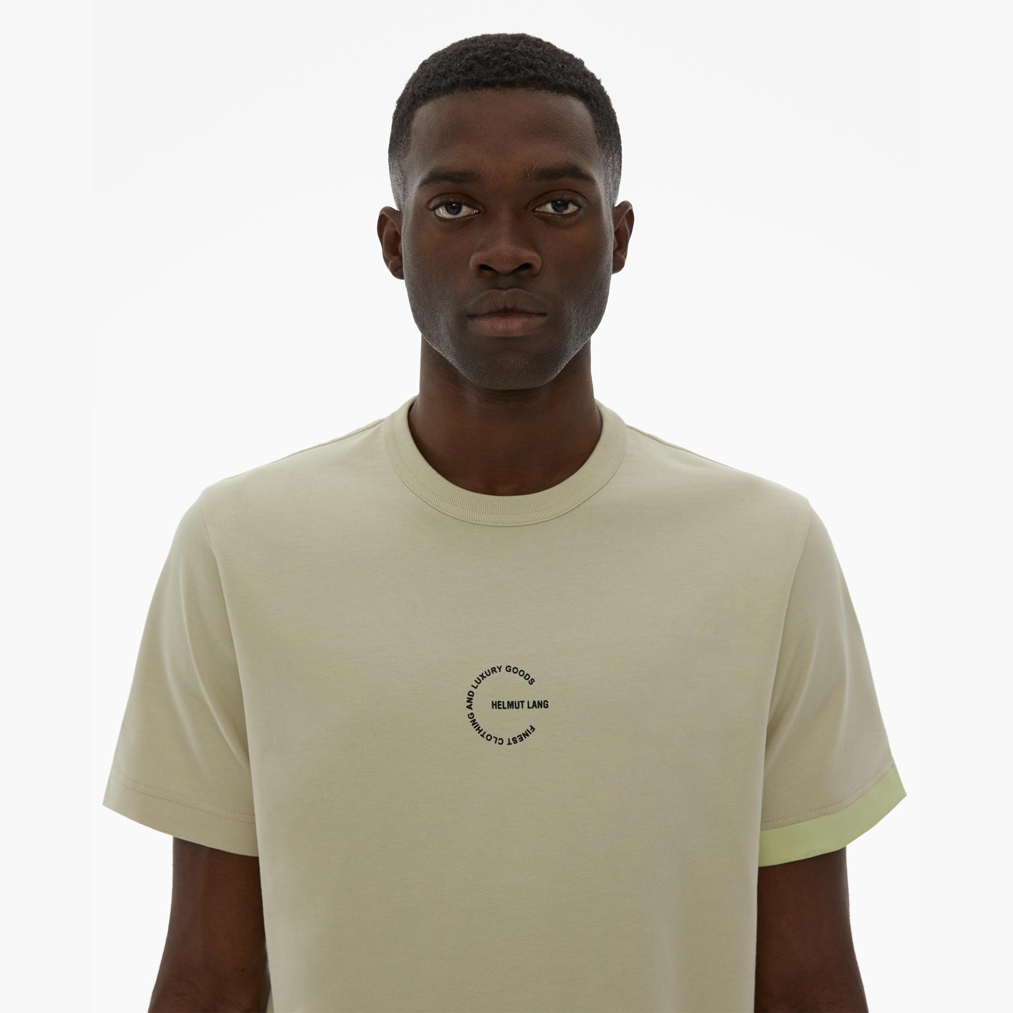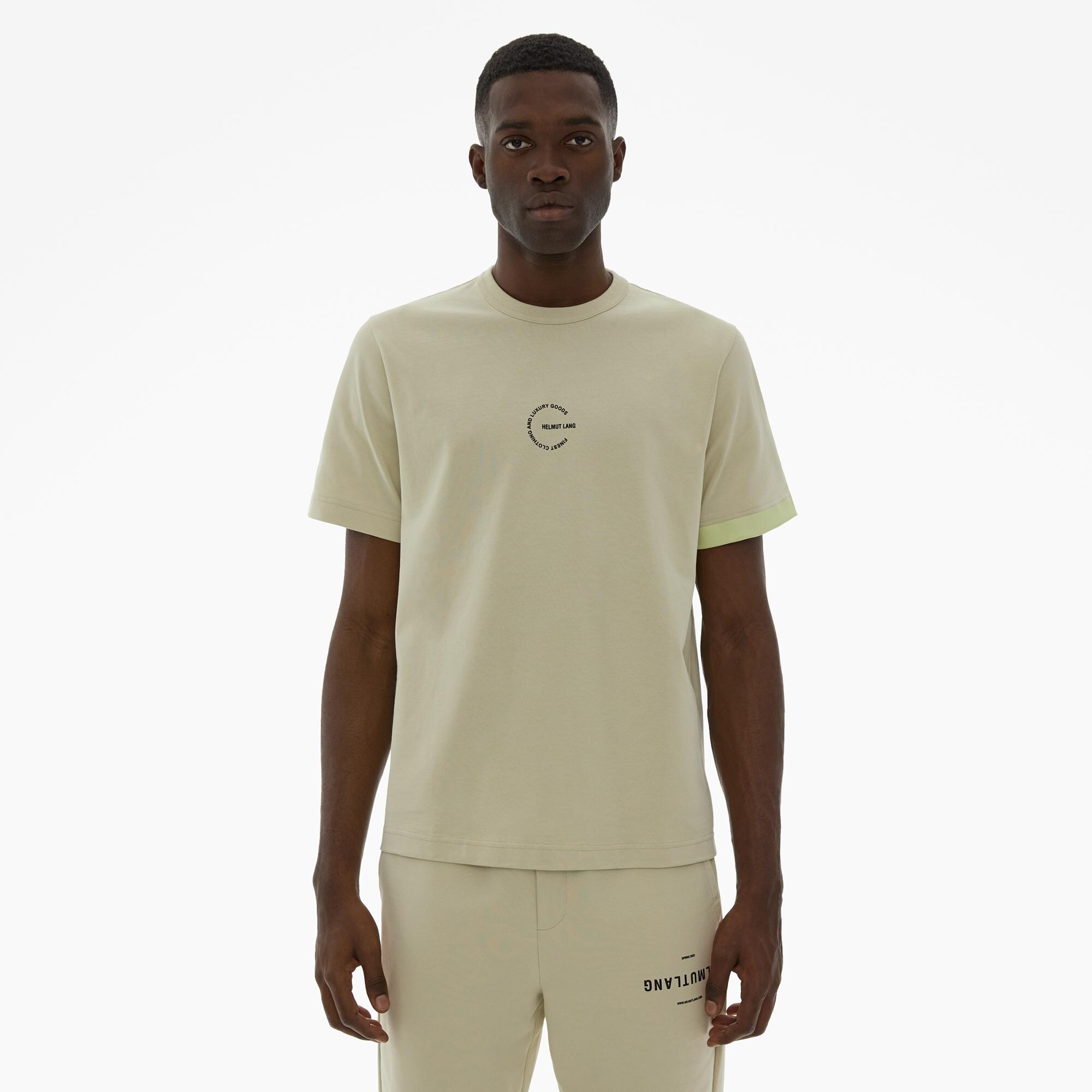 The Helmut Lang Tee is a cotton jersey crewneck with short sleeves and a blocked HL logo.