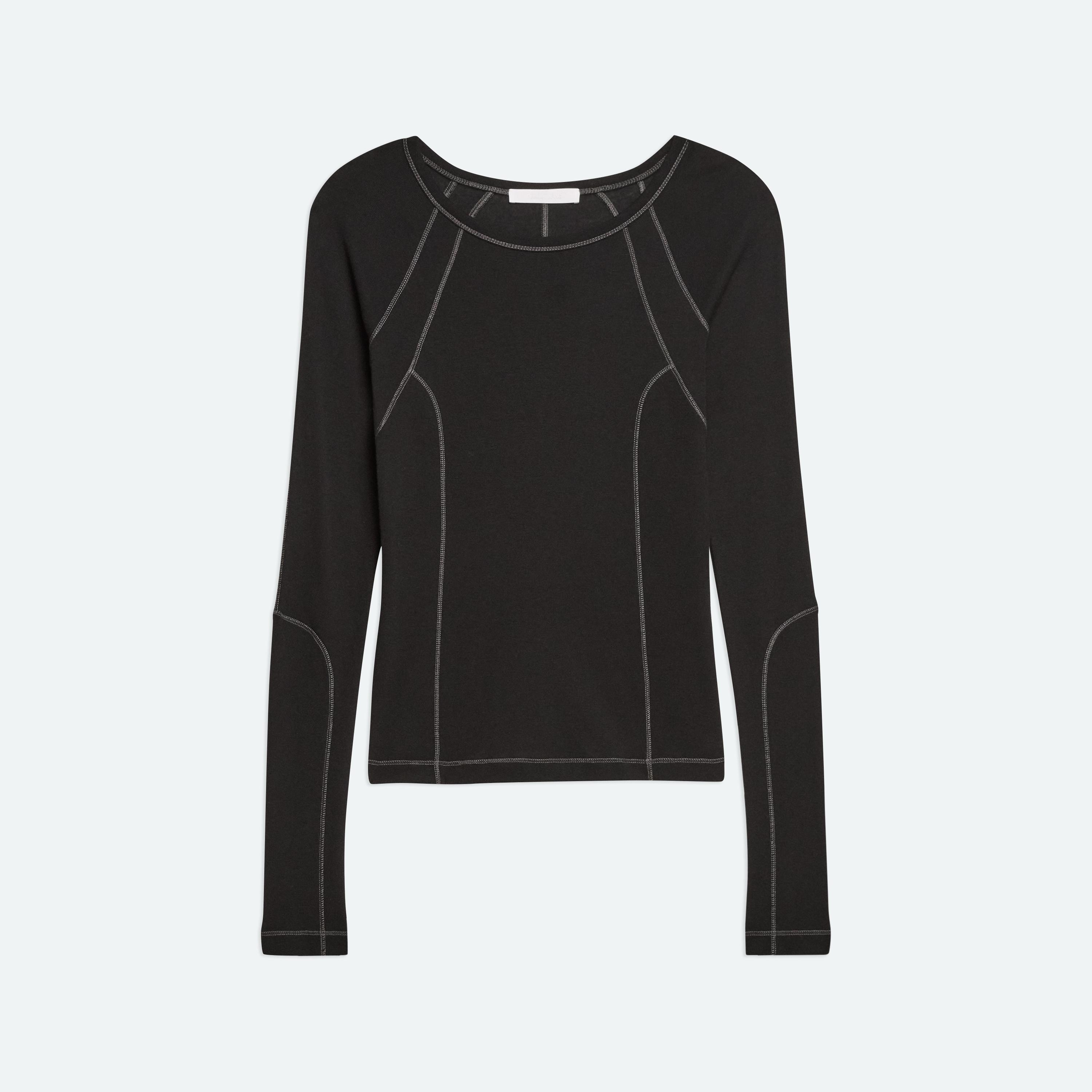 Long-sleeved shirt in a soft rib knit. Contrast stitching highlights the athletic-inspired construction.