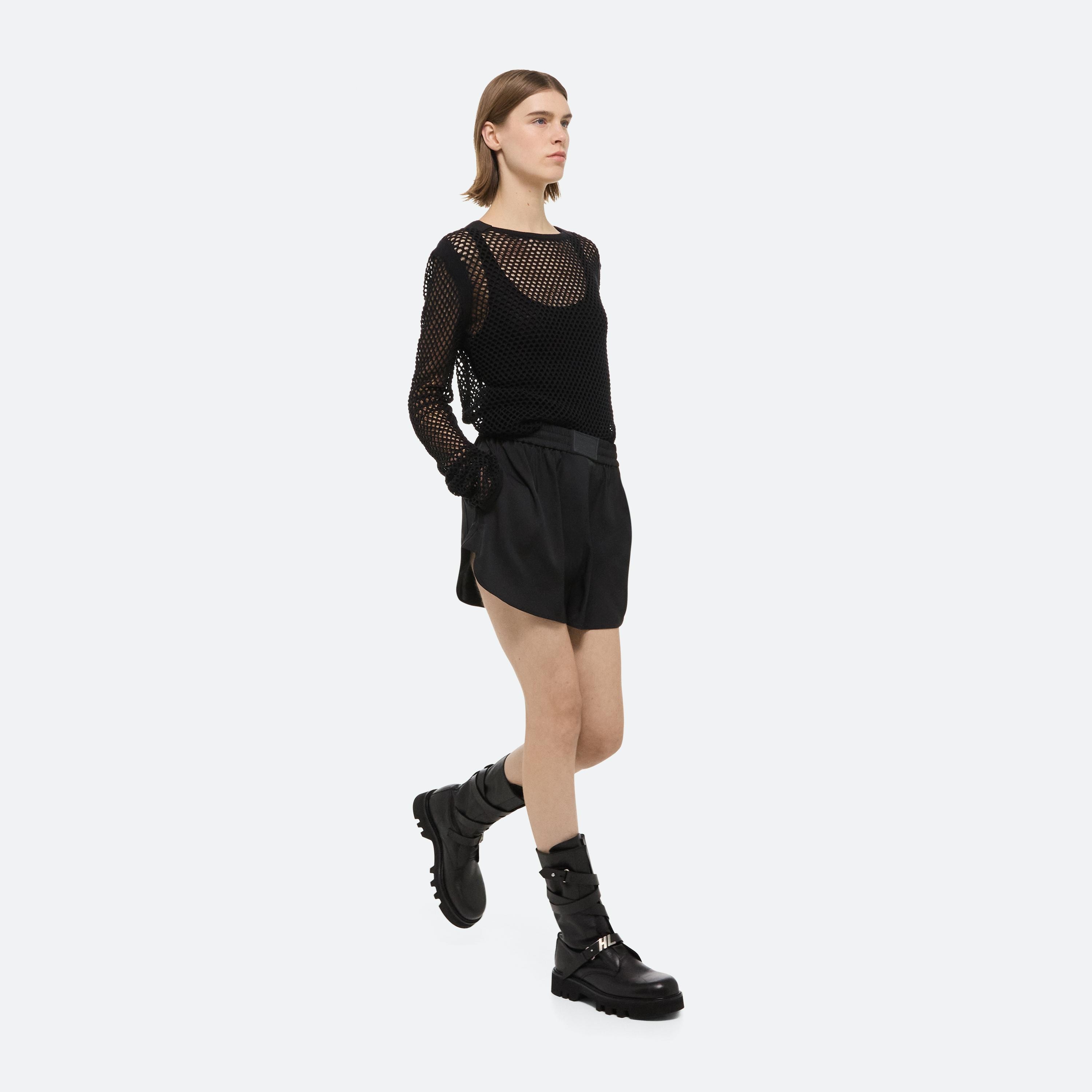 Relaxed shorts in a lightweight twill, featuring an exaggerated waistband inspired by boxer uniforms.