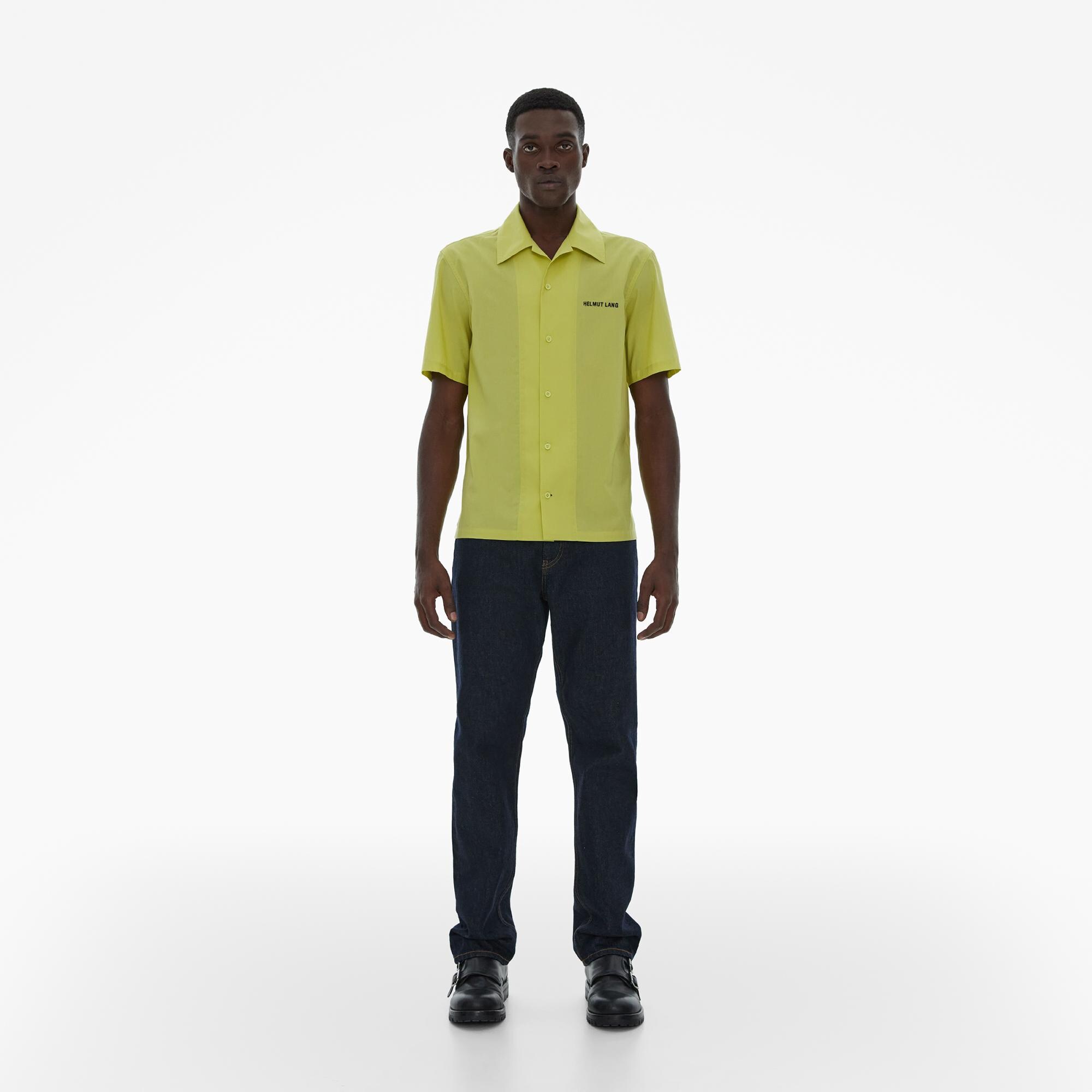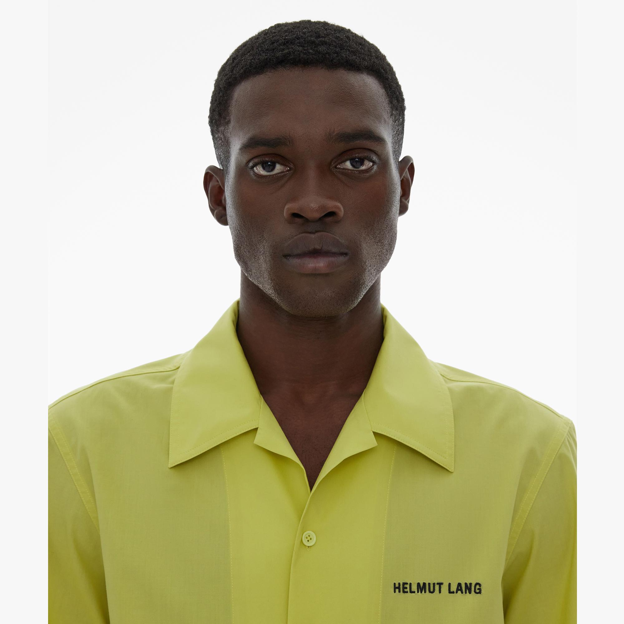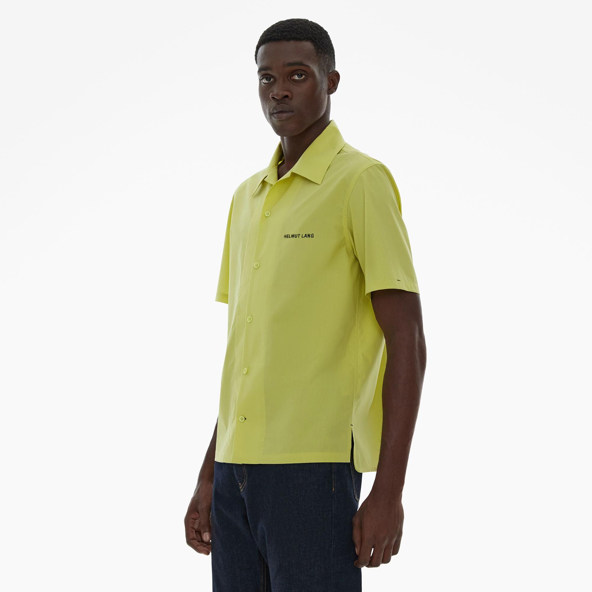 The Helmut Lang Camp Shirt is a short-sleeve style in cotton poplin with a point collar and button front closures.
