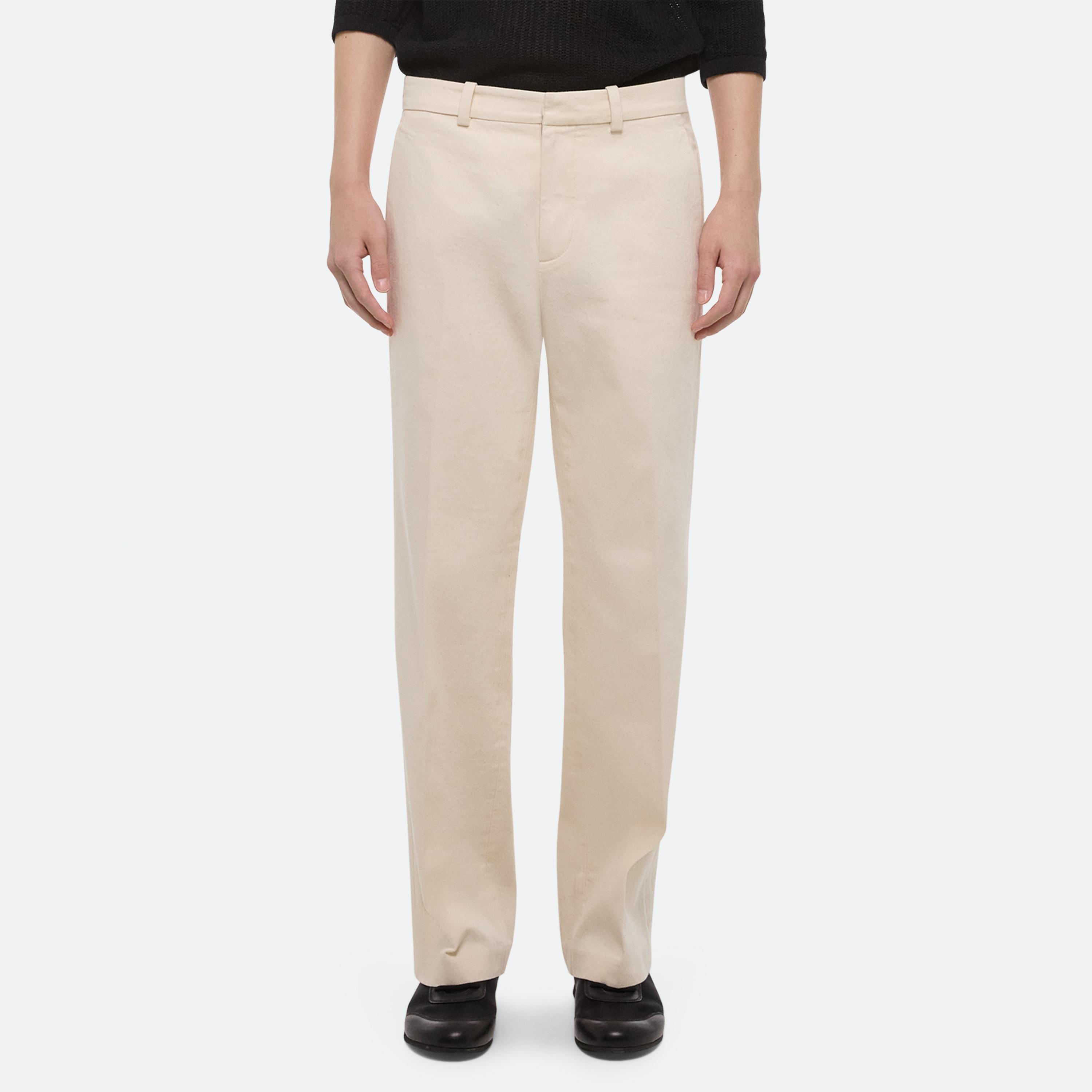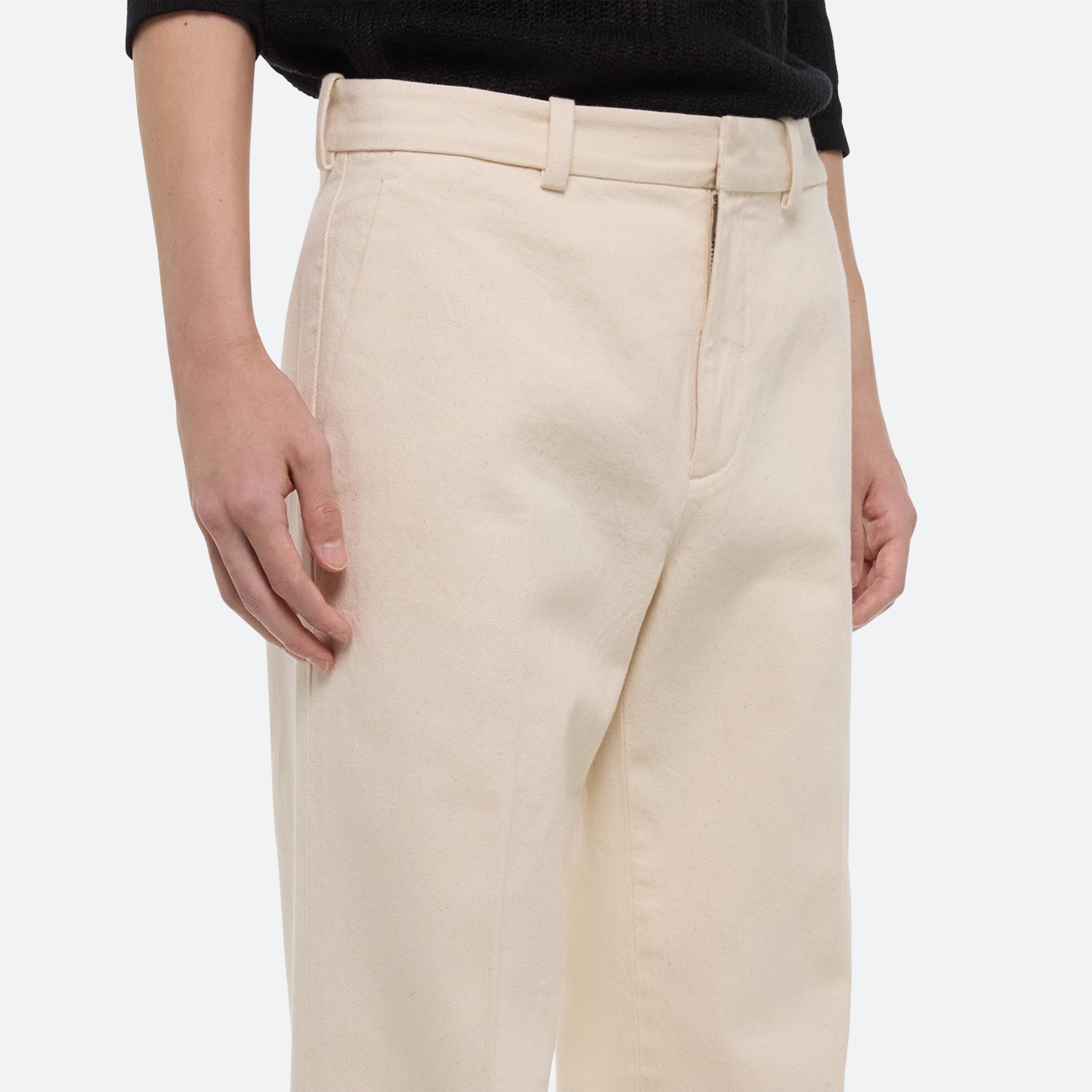 Tailored car trousers in undyed cotton denim. Cut with a straight leg in a relaxed fit.