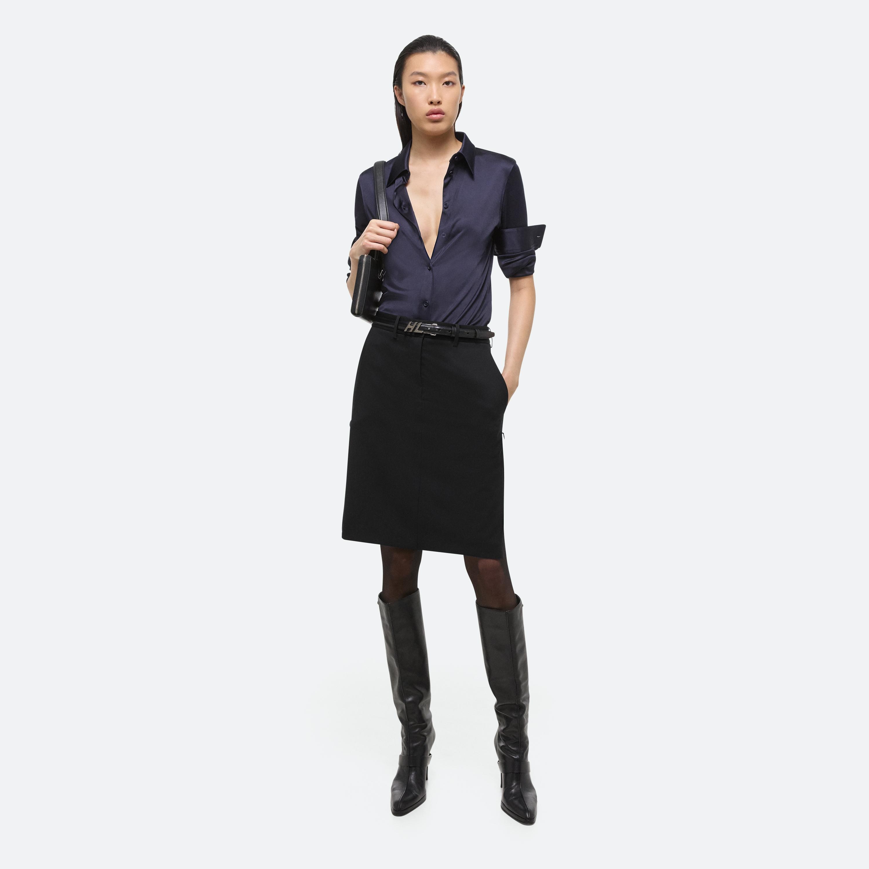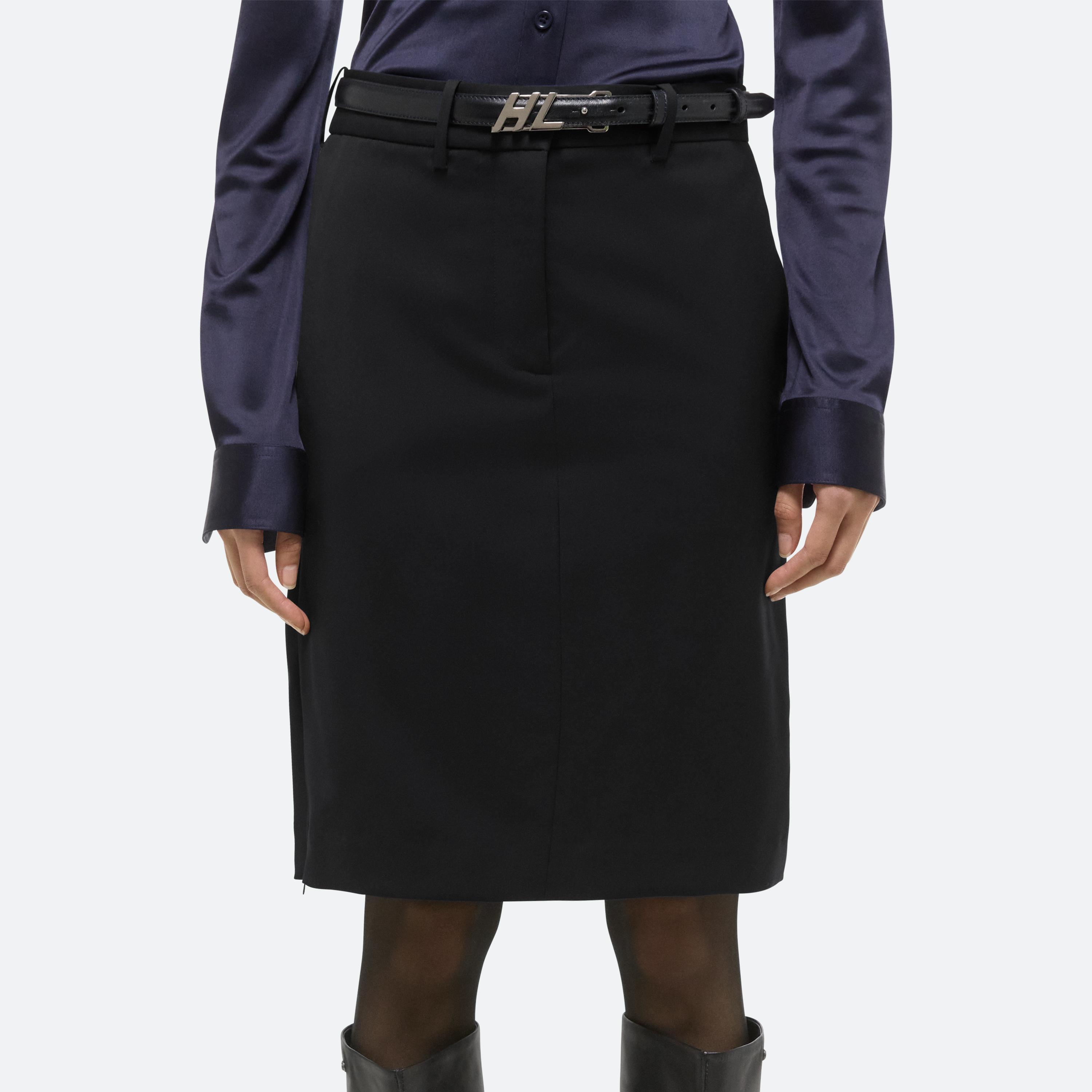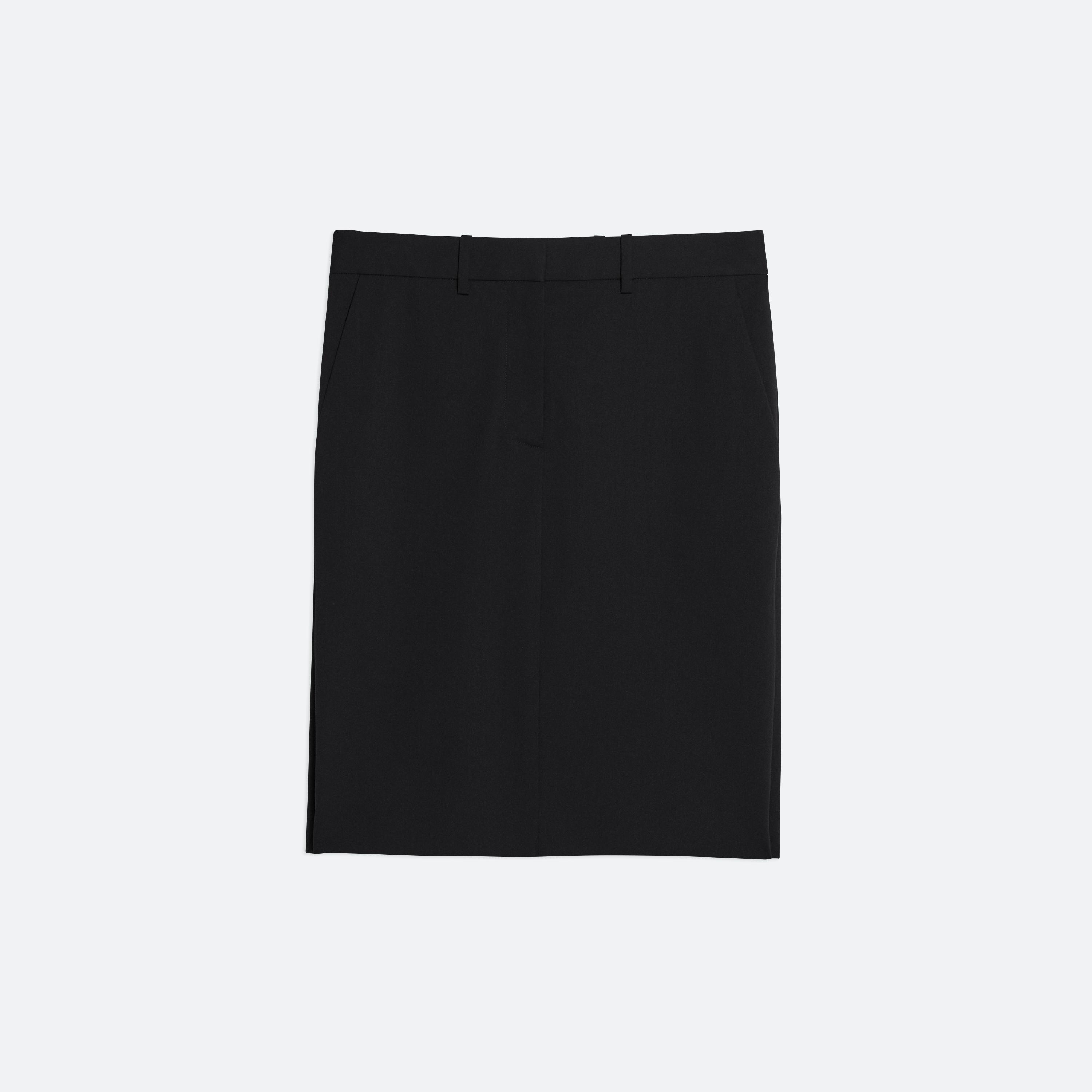 Tailored pencil skirt in virgin Italian wool. Invisible zippers at side seams allow for a customized shape.