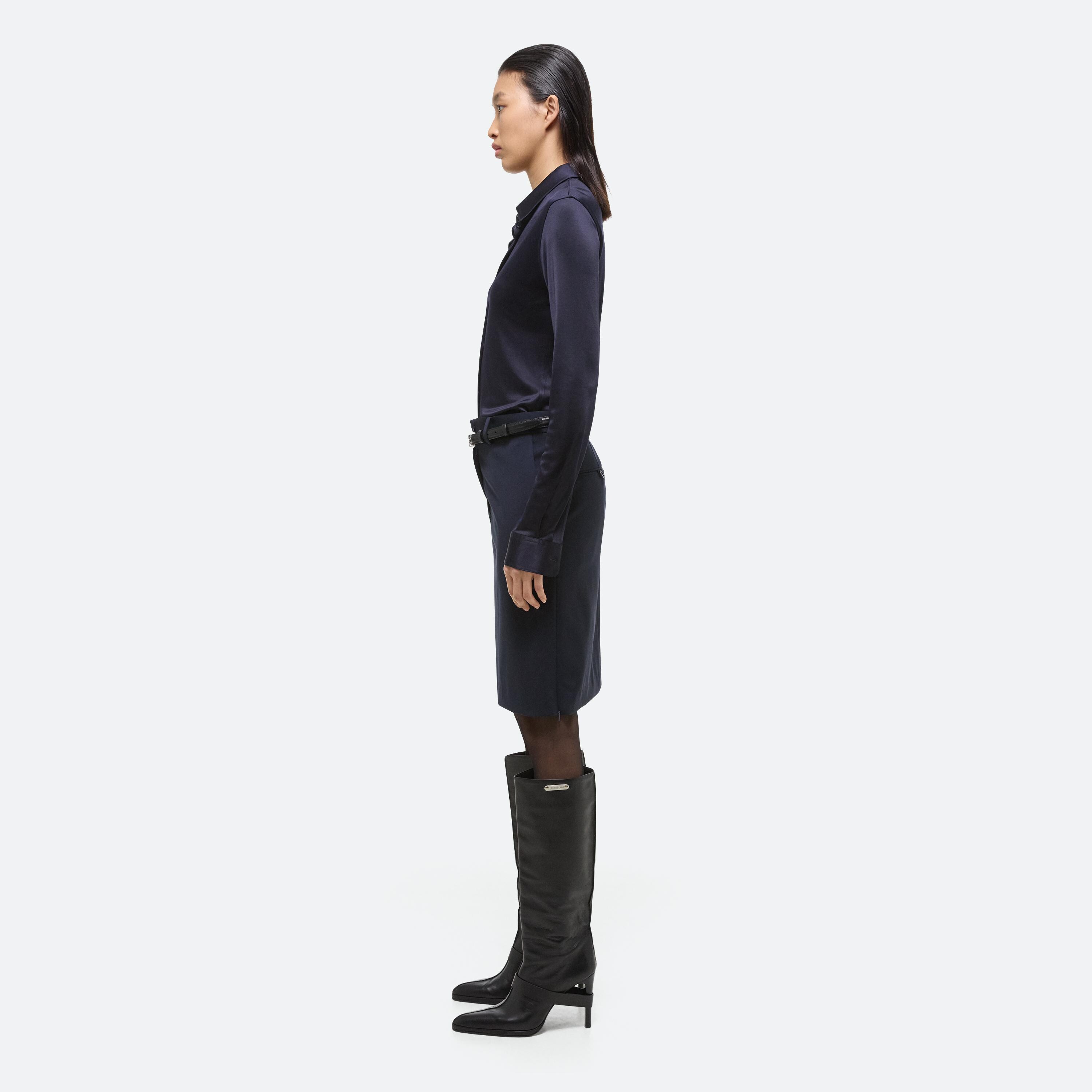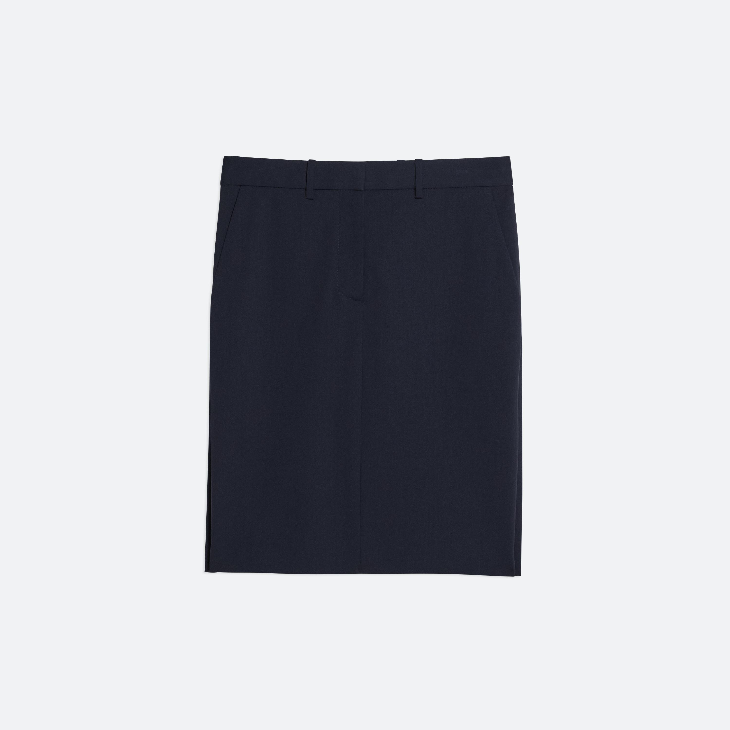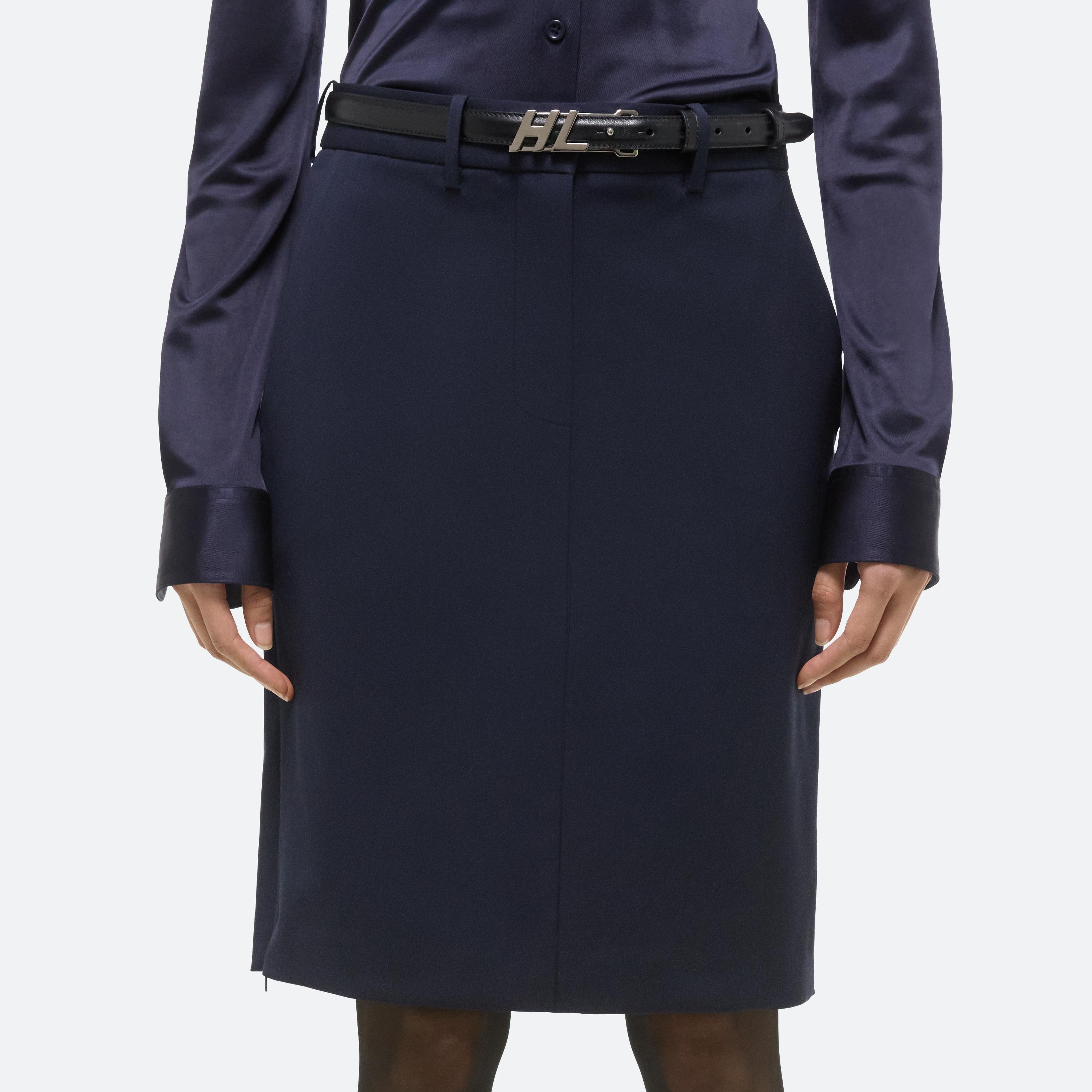 Tailored pencil skirt in virgin Italian wool. Invisible zippers at side seams allow for a customized shape.