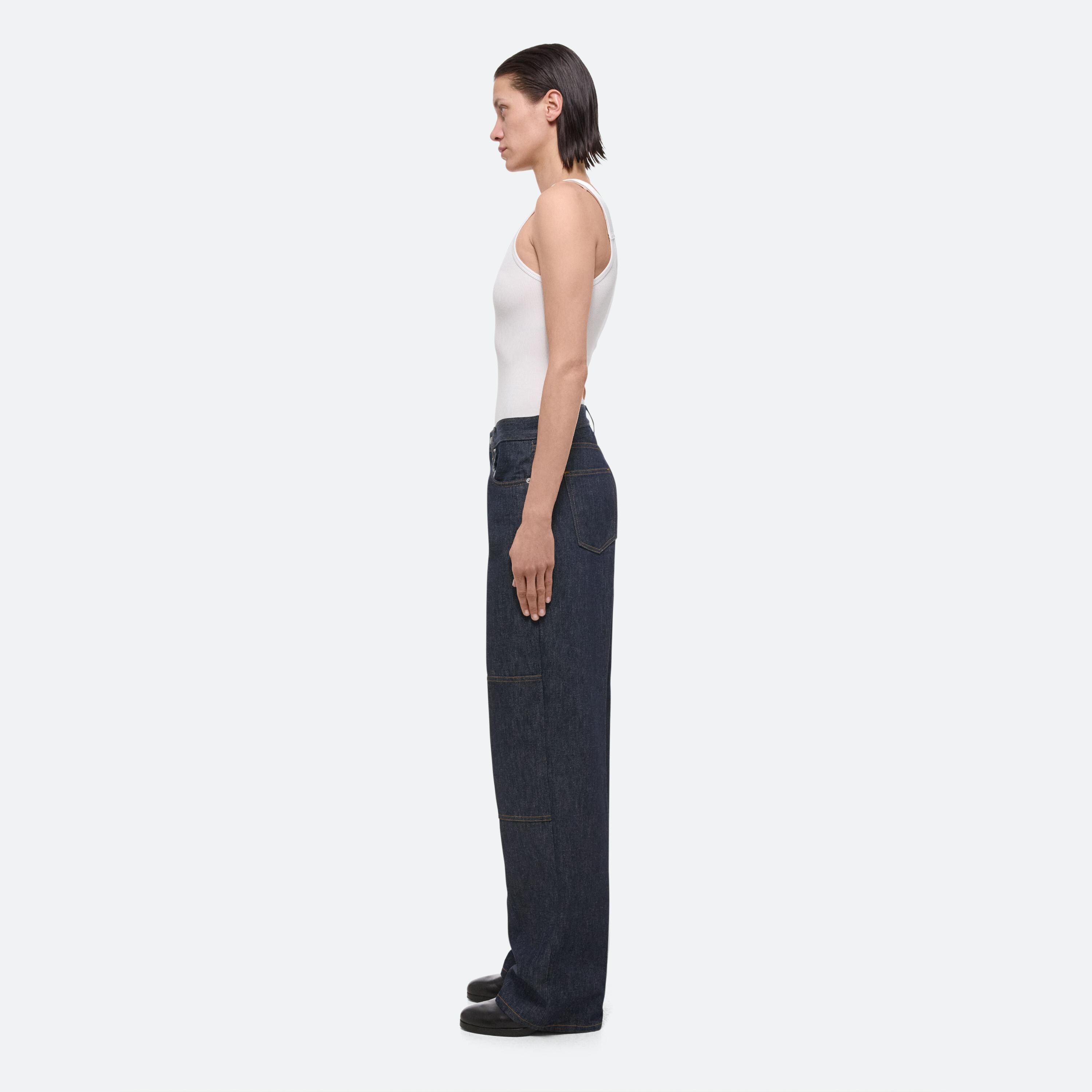 Carpenter jeans with a relaxed leg in raw indigo denim. The jeans feature classic utilitarian details.