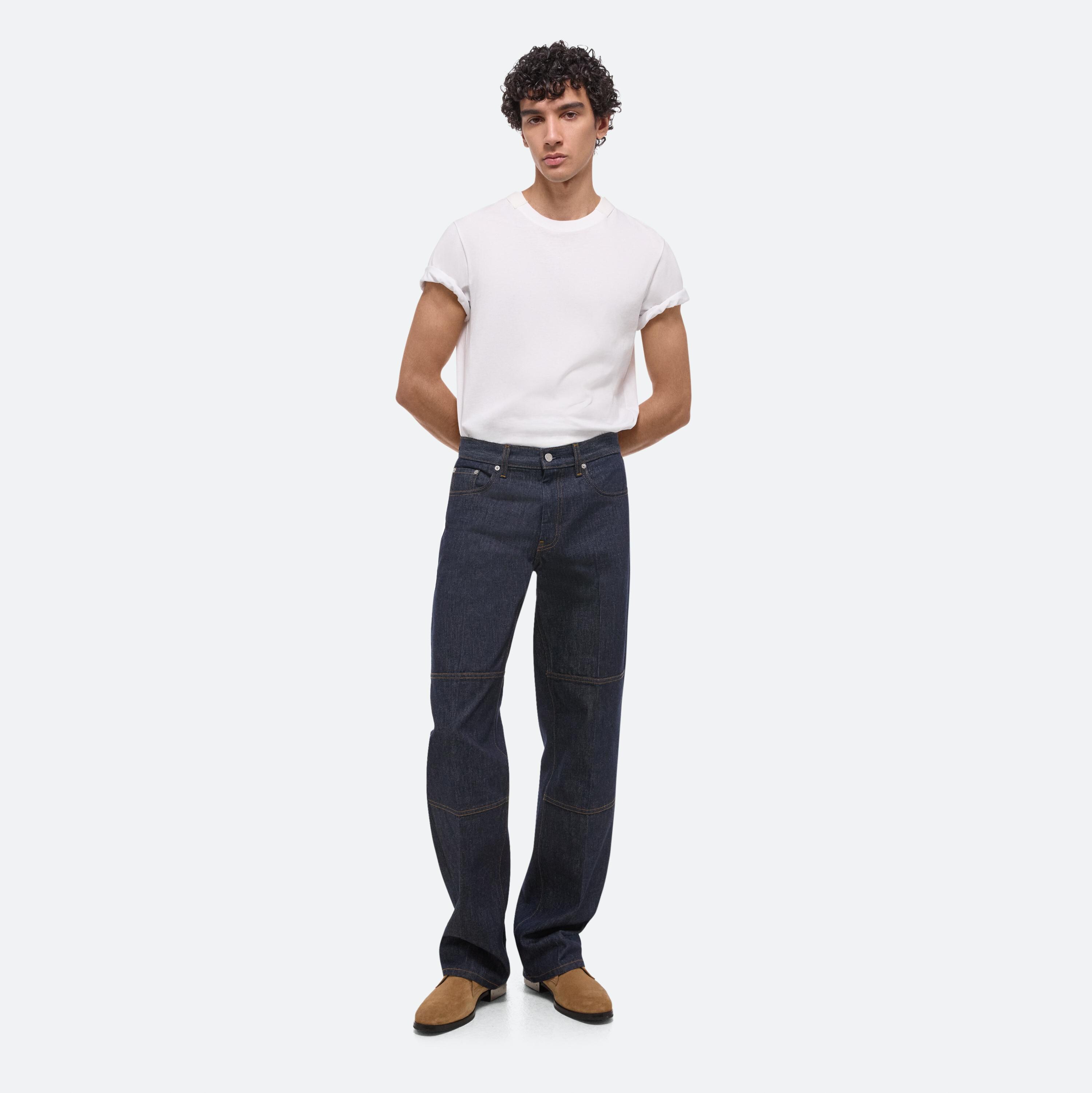 Carpenter jeans with a relaxed leg in raw indigo denim featuring classic utilitarian details.