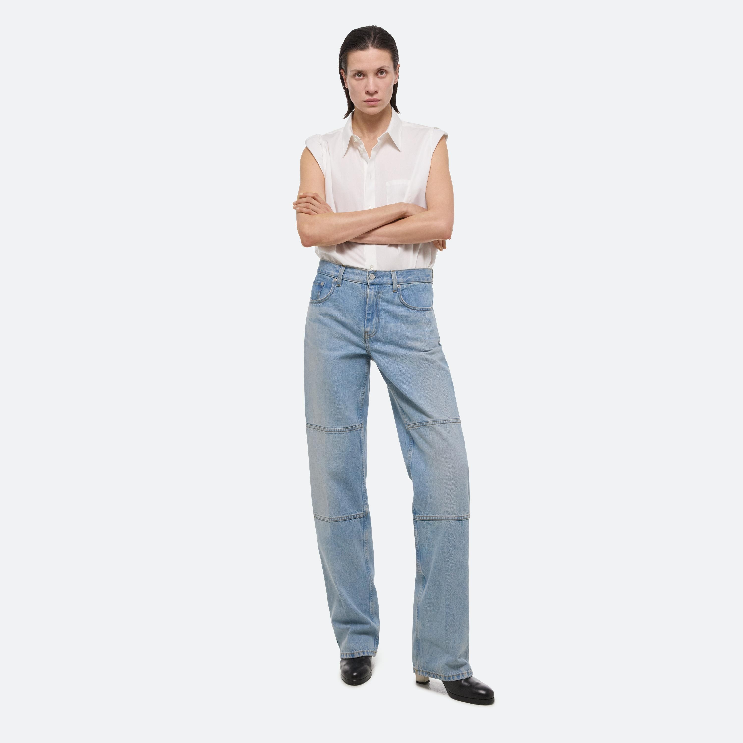 Carpenter jeans with a relaxed leg in light indigo denim. The jeans feature classic utilitarian details.