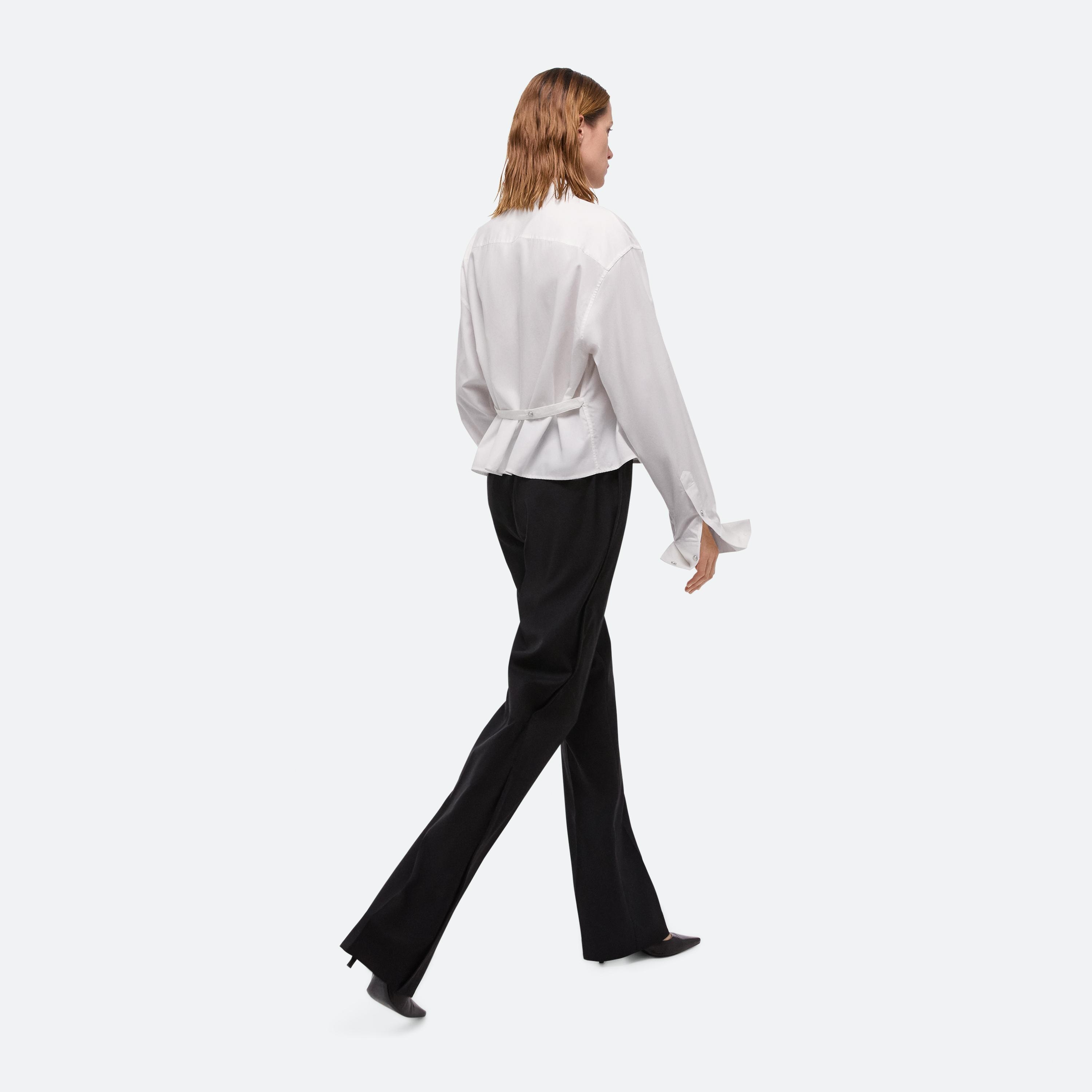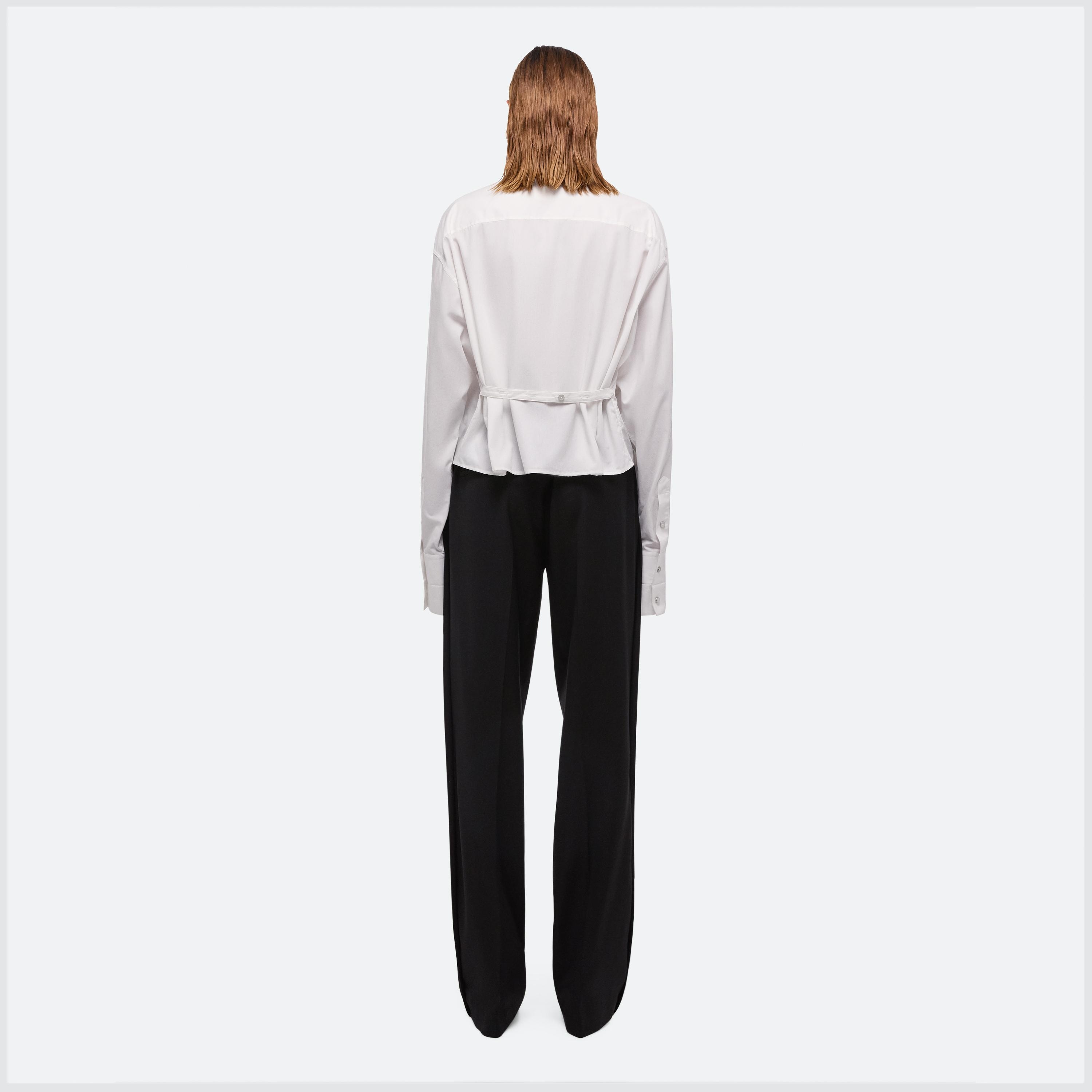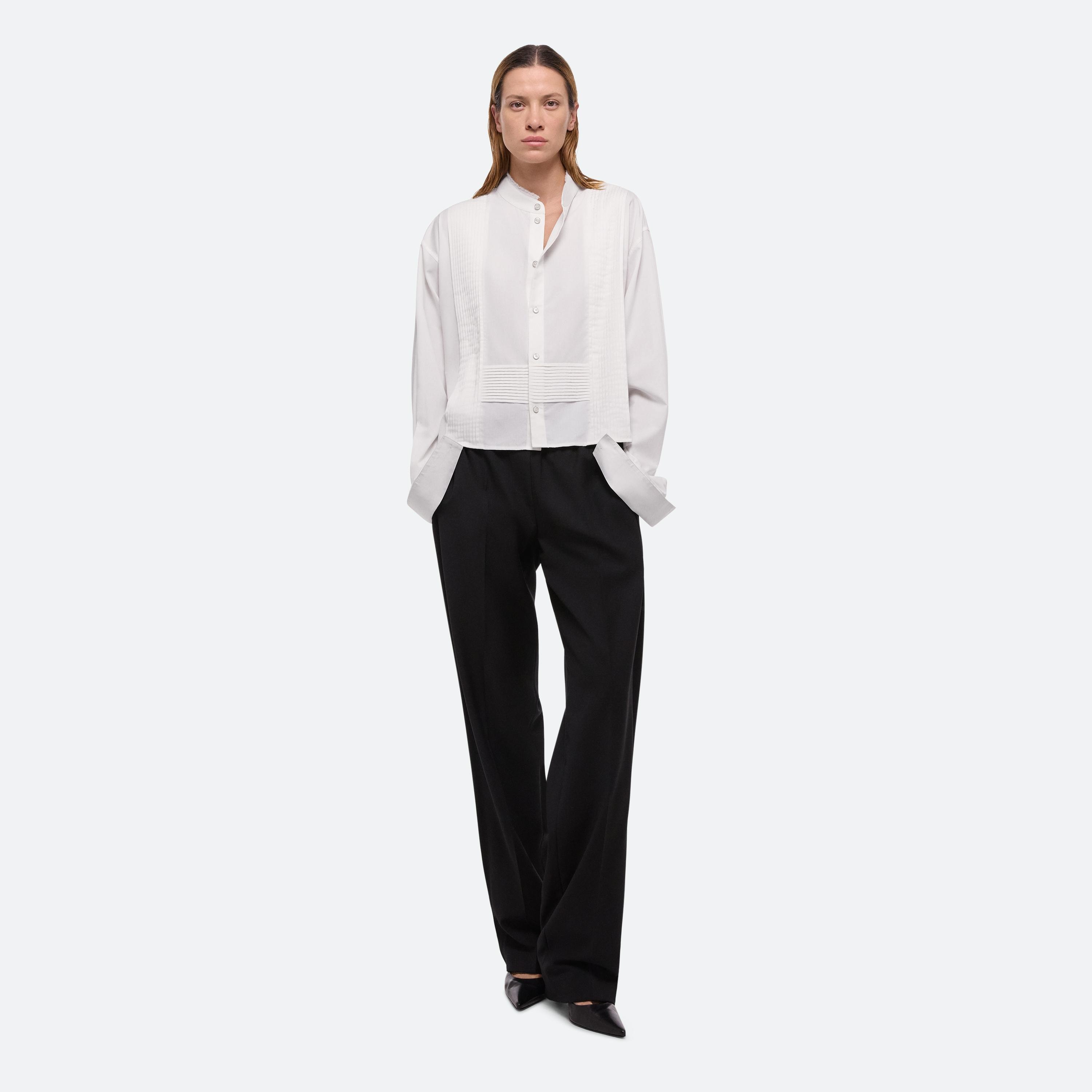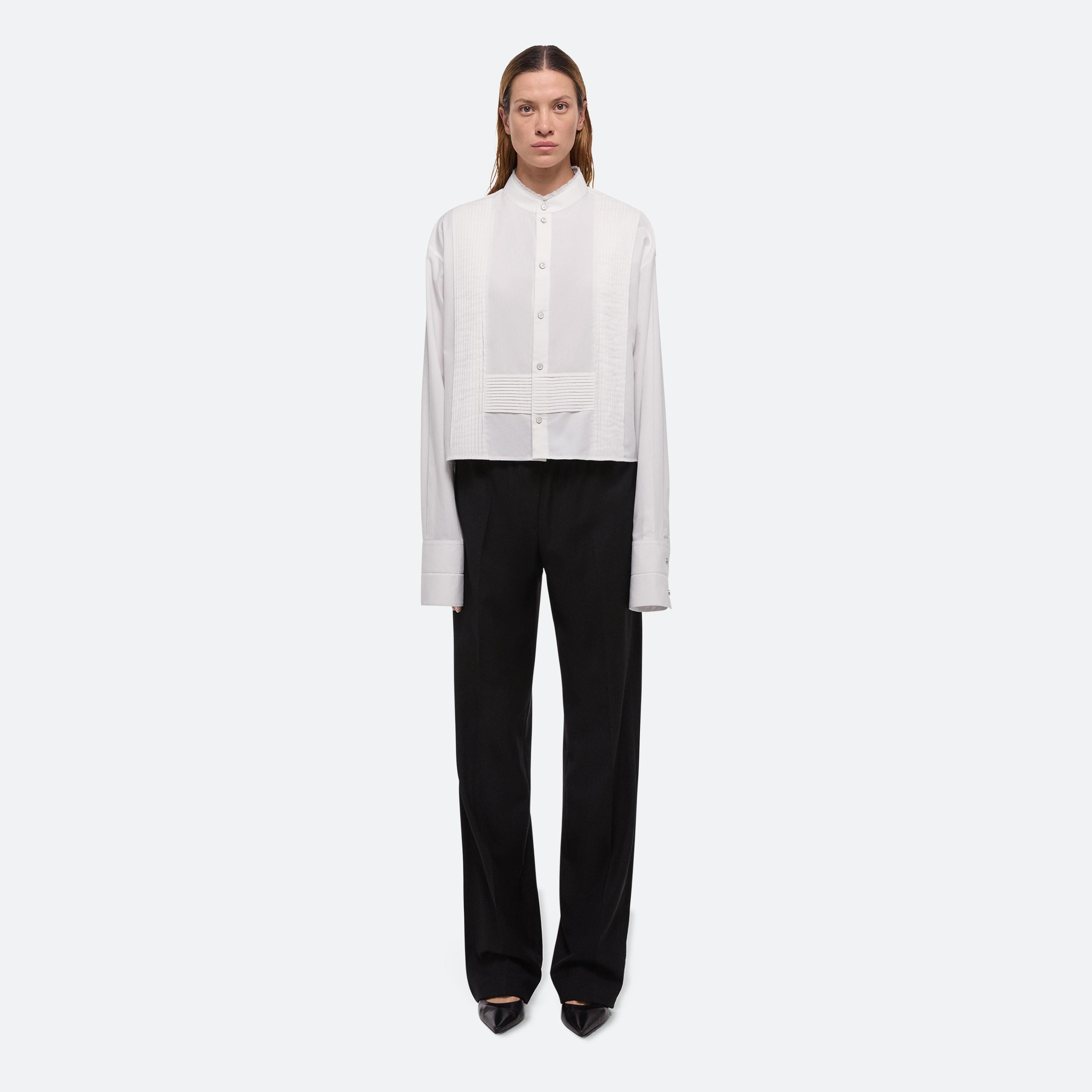 Oversized tuxedo shirt in cotton poplin with geometric pin-tucked details and a cut-off collar.