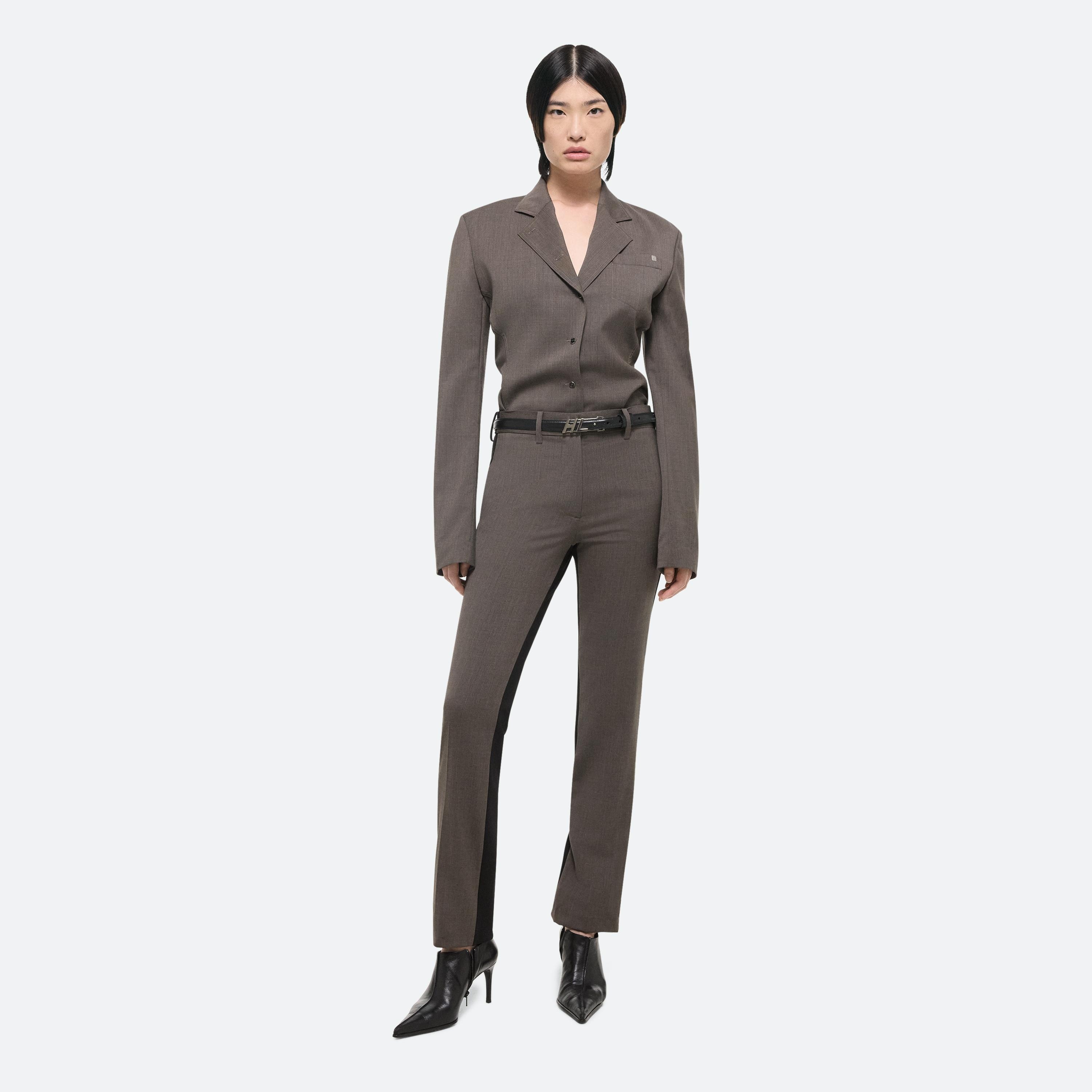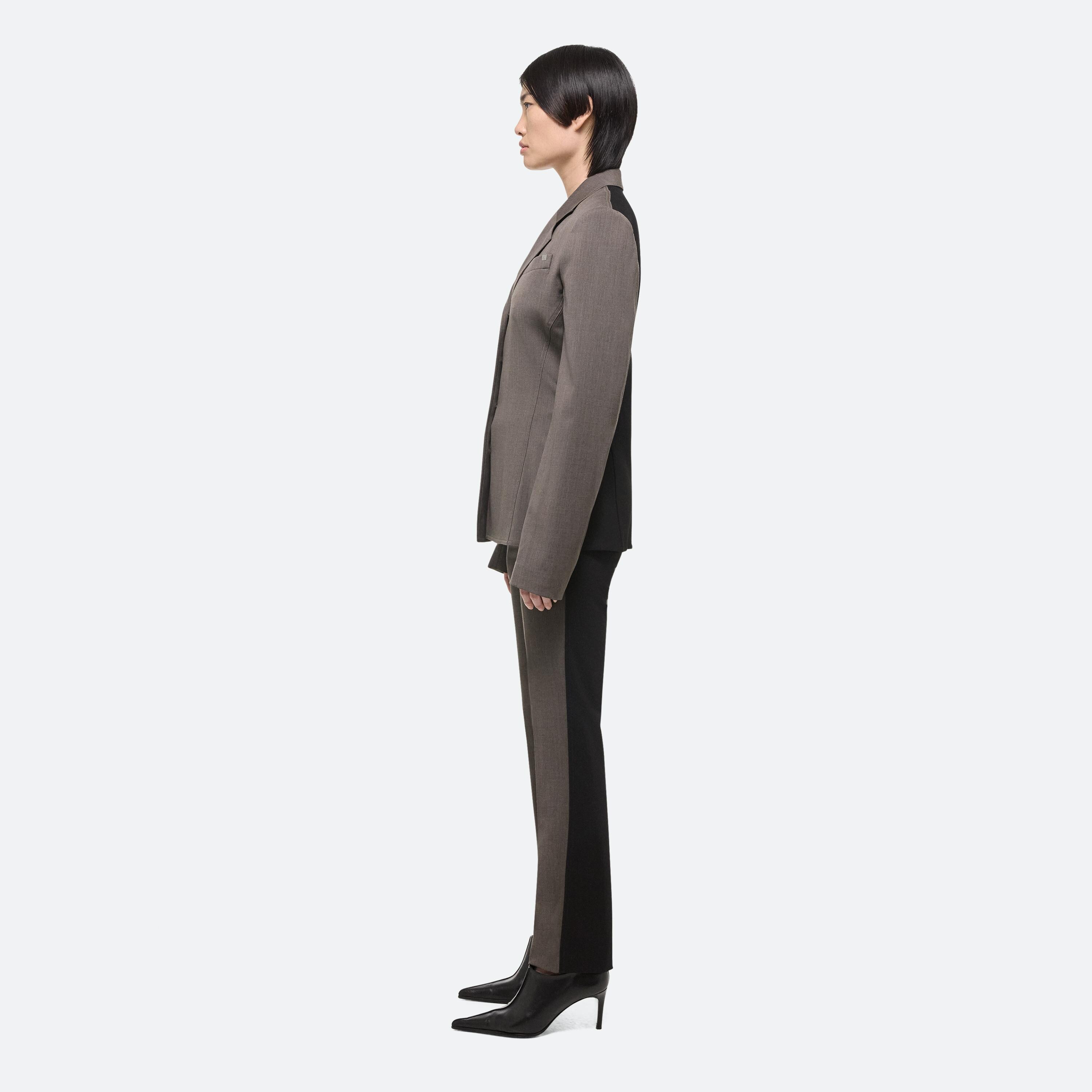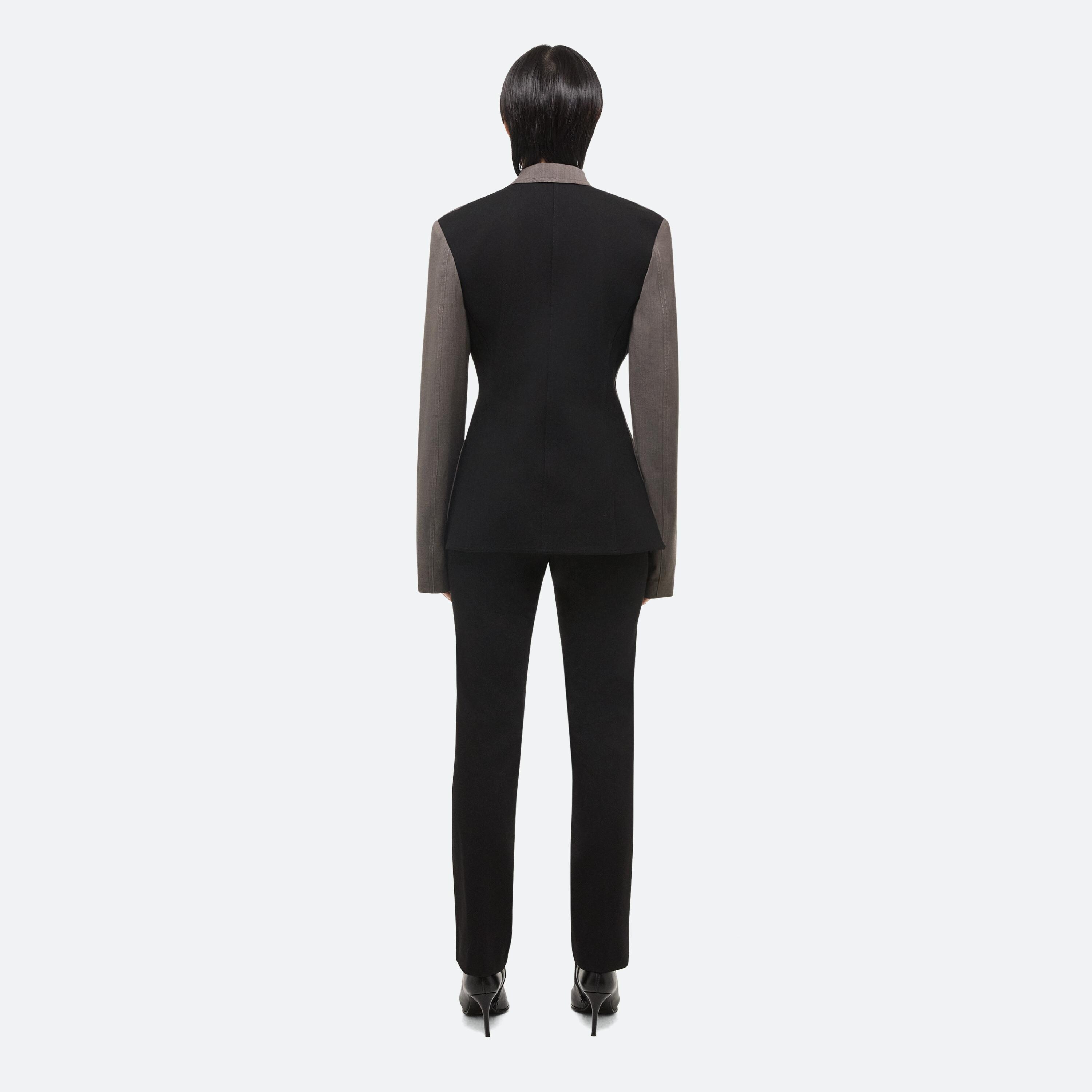 Tailored shirt in virgin Italian wool suiting, with a notched collar and classic suit jacket details. Back panel cut from a dense, structured ponte knit for an easy fit.