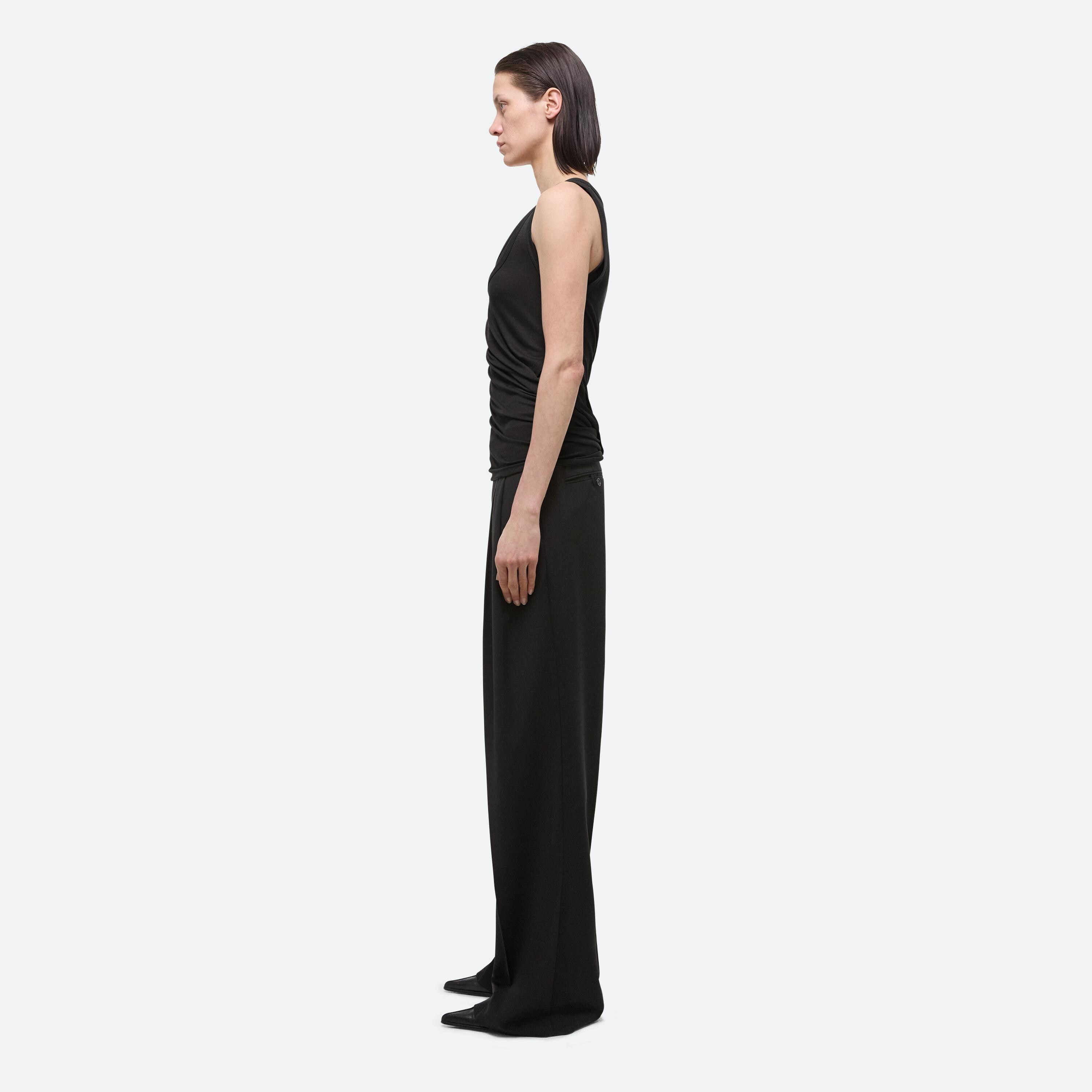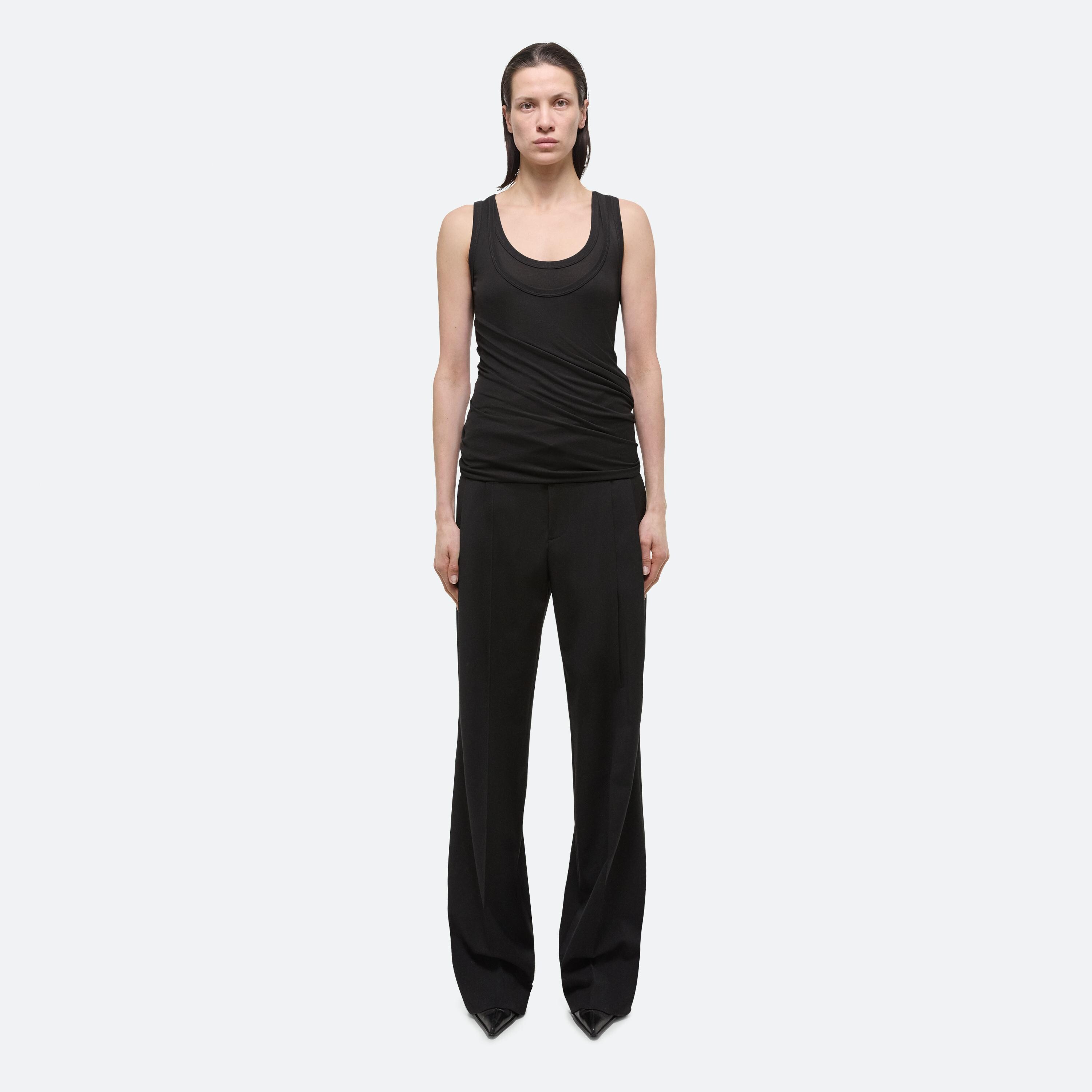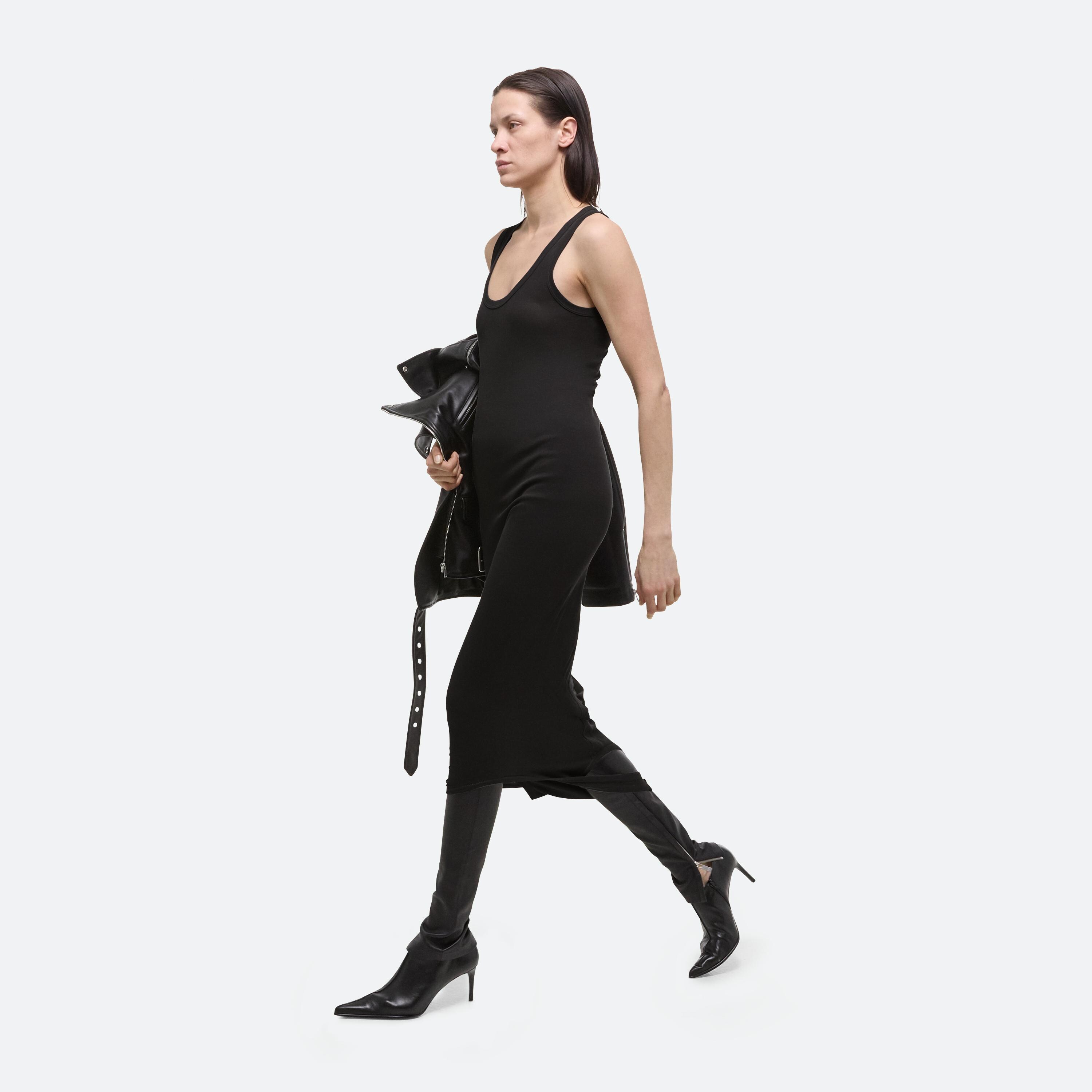 Layered tank top in a stretch viscose rib from Portugal. Twist and loop the two necklines to create a custom style, or wear it open as a dress.
