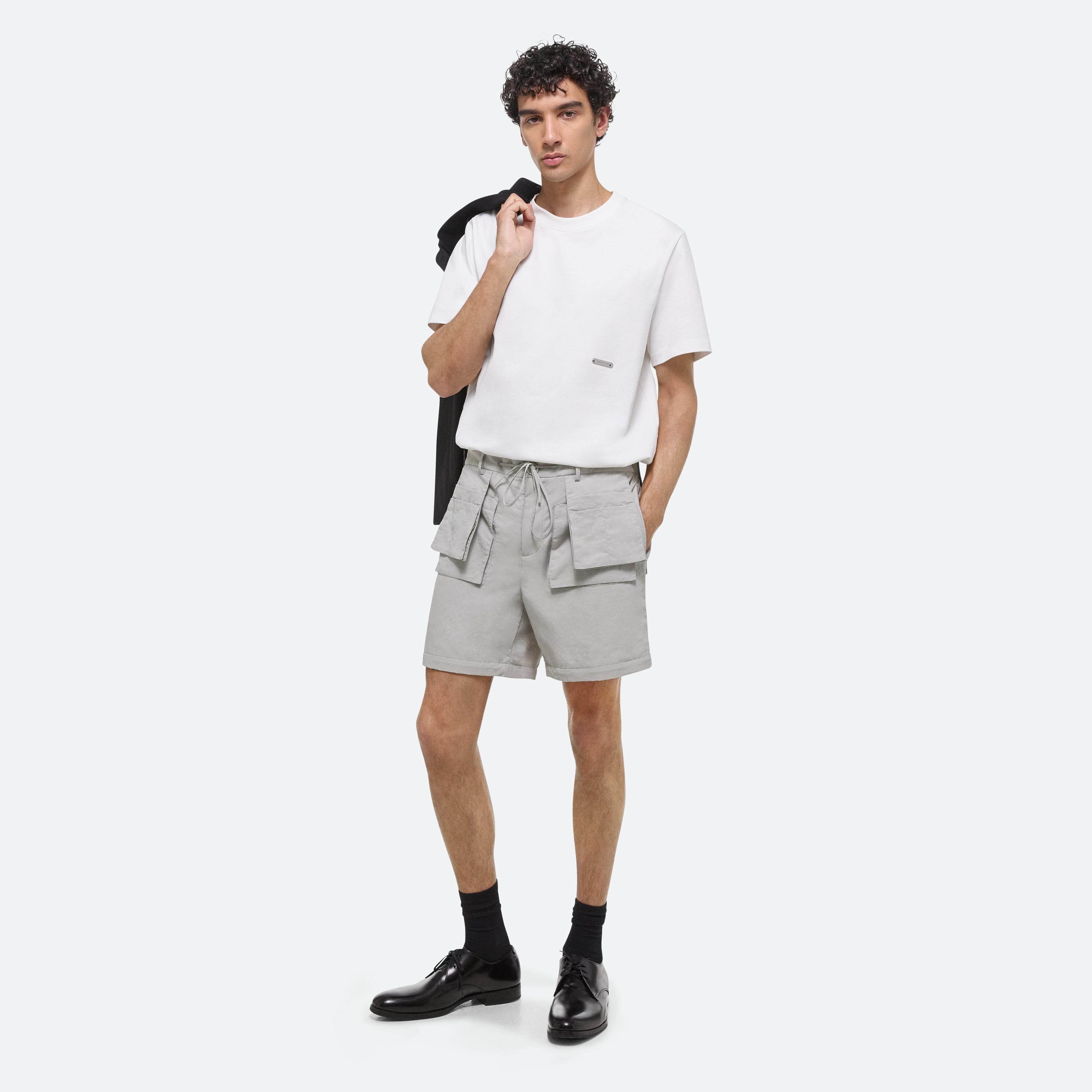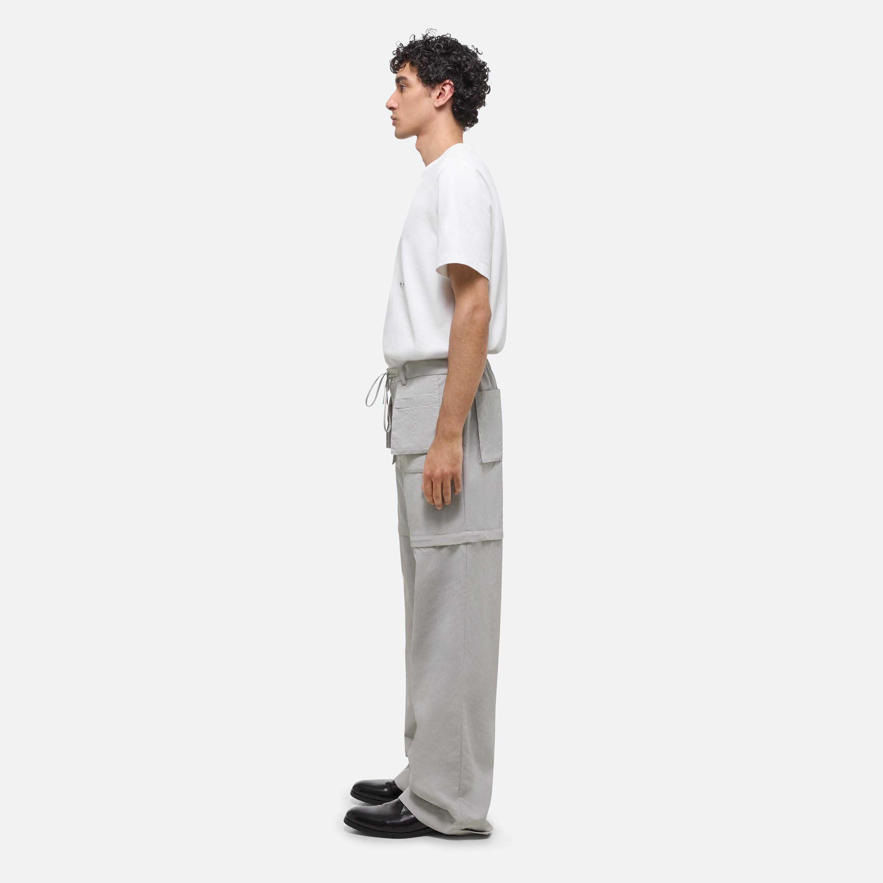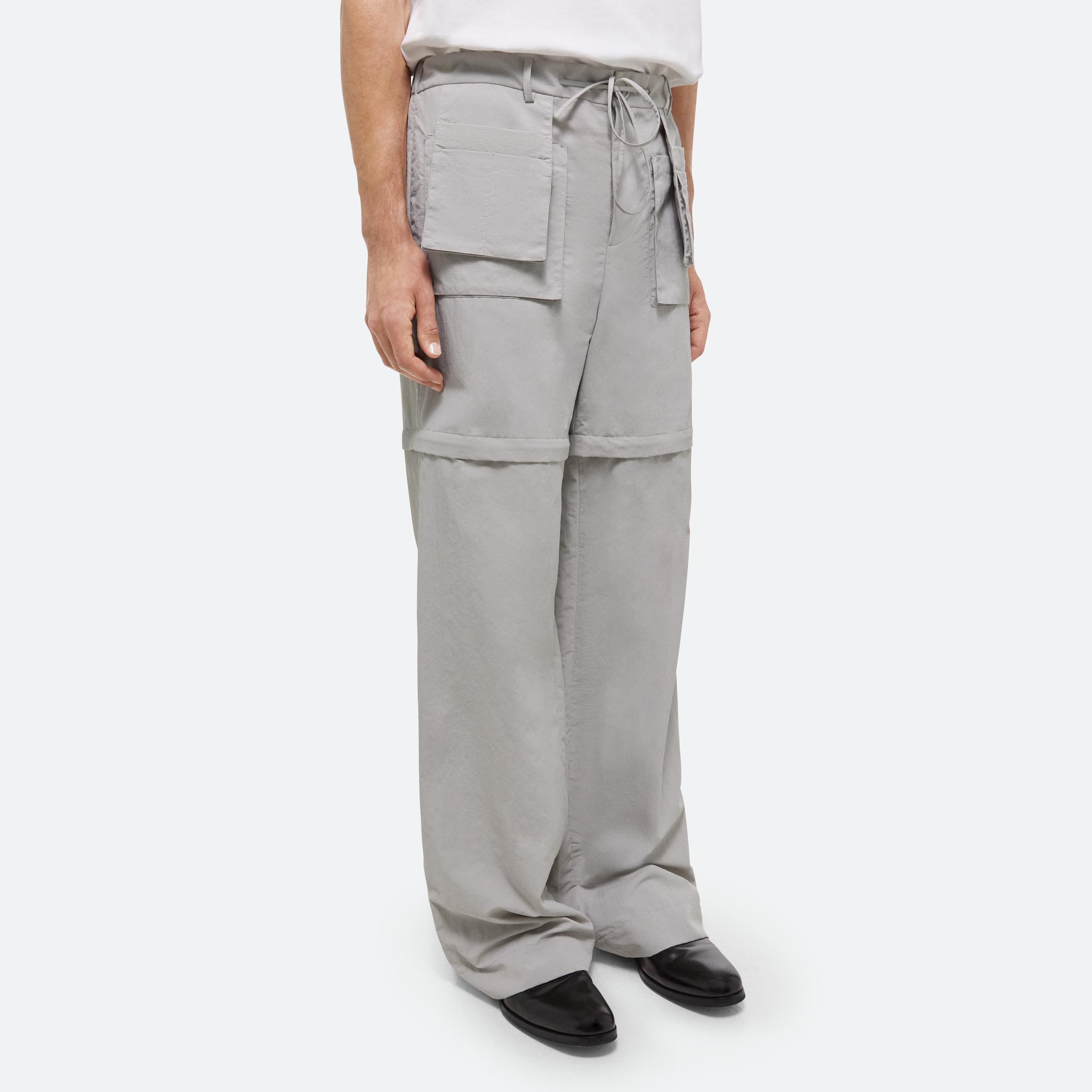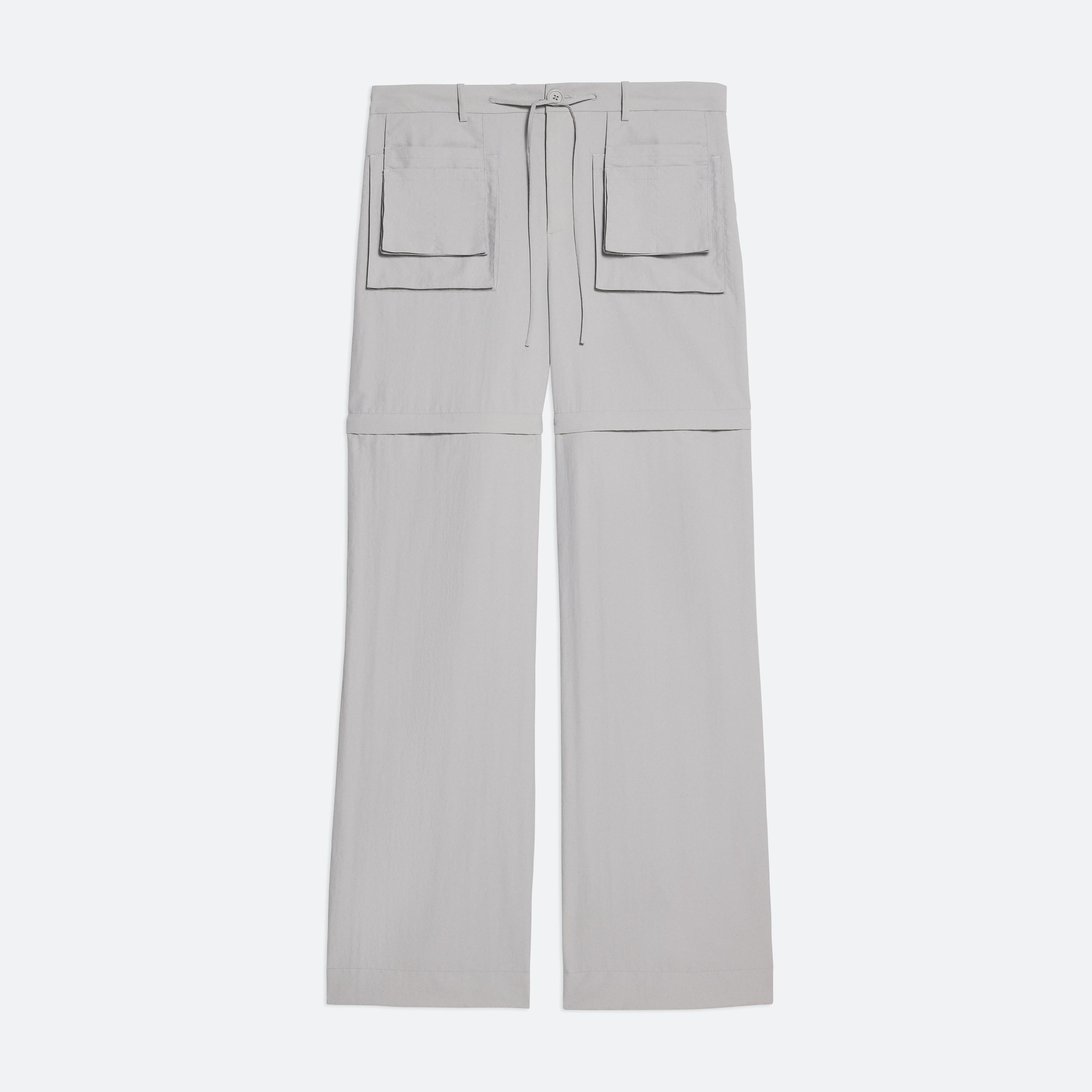 Convertible trouser in airy summerweight nylon. Zippers above the knee allow pants to become shorts, and trench-style tabs at cuffs control the shape of the leg. Tuck the utility pockets into the patch pockets underneath, or take them out for a custom layered effect.