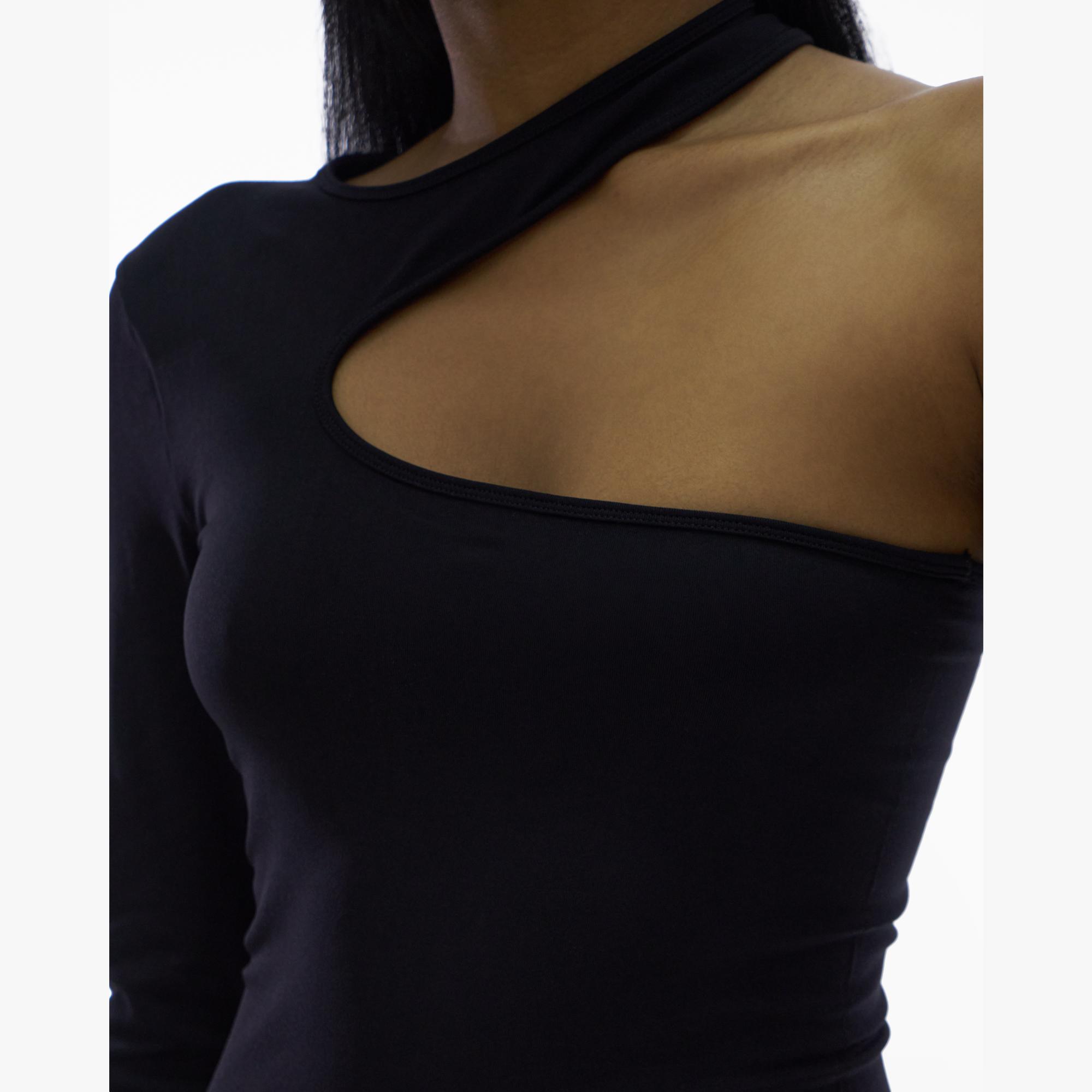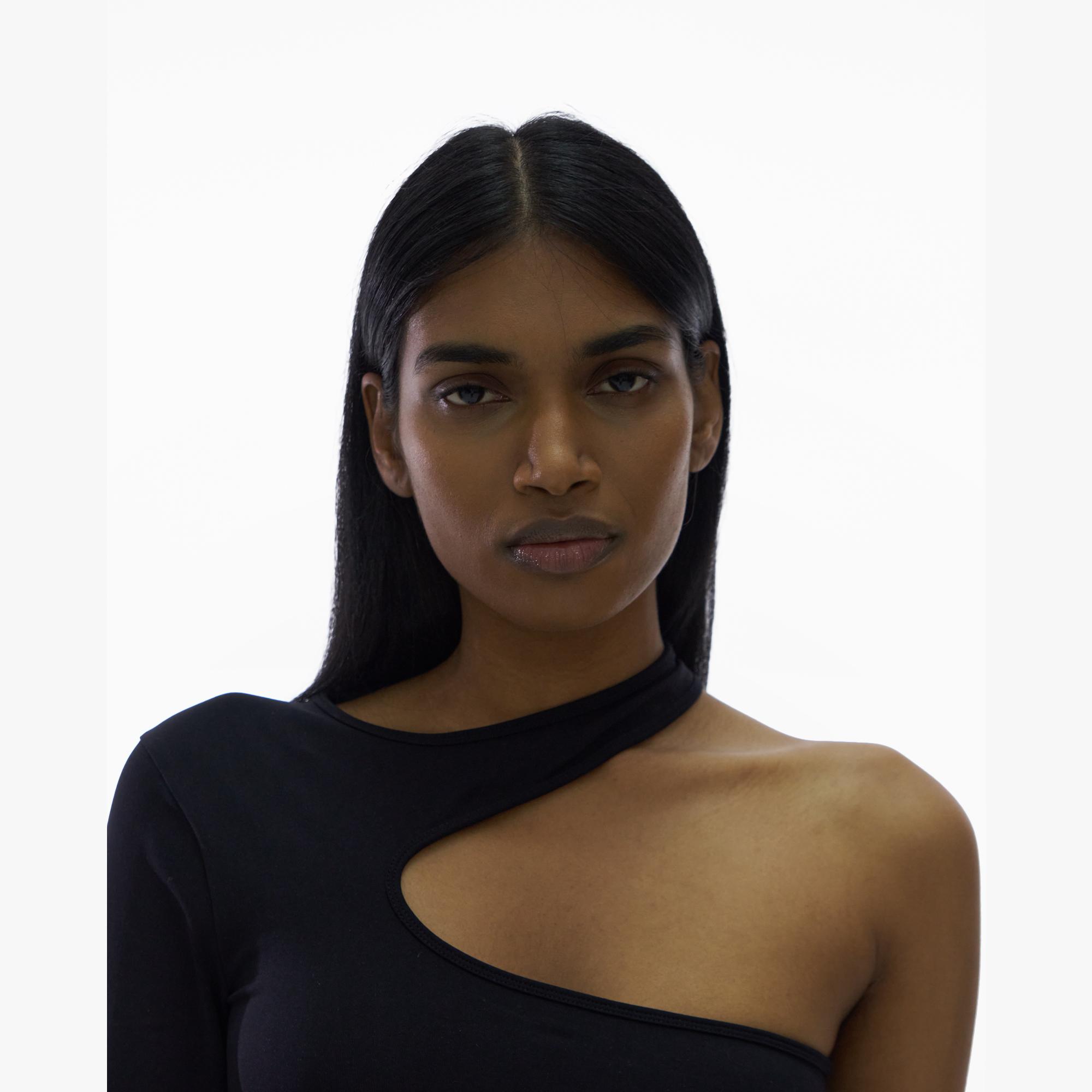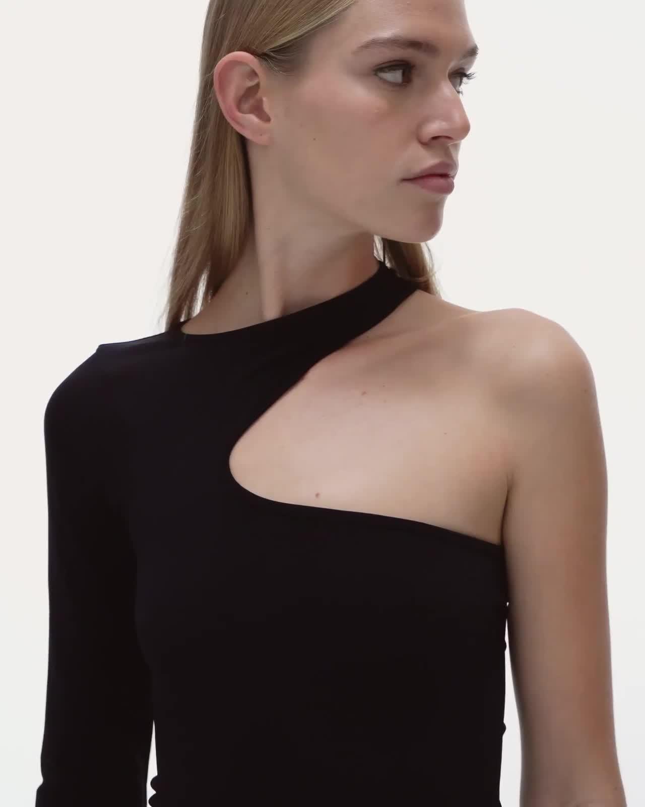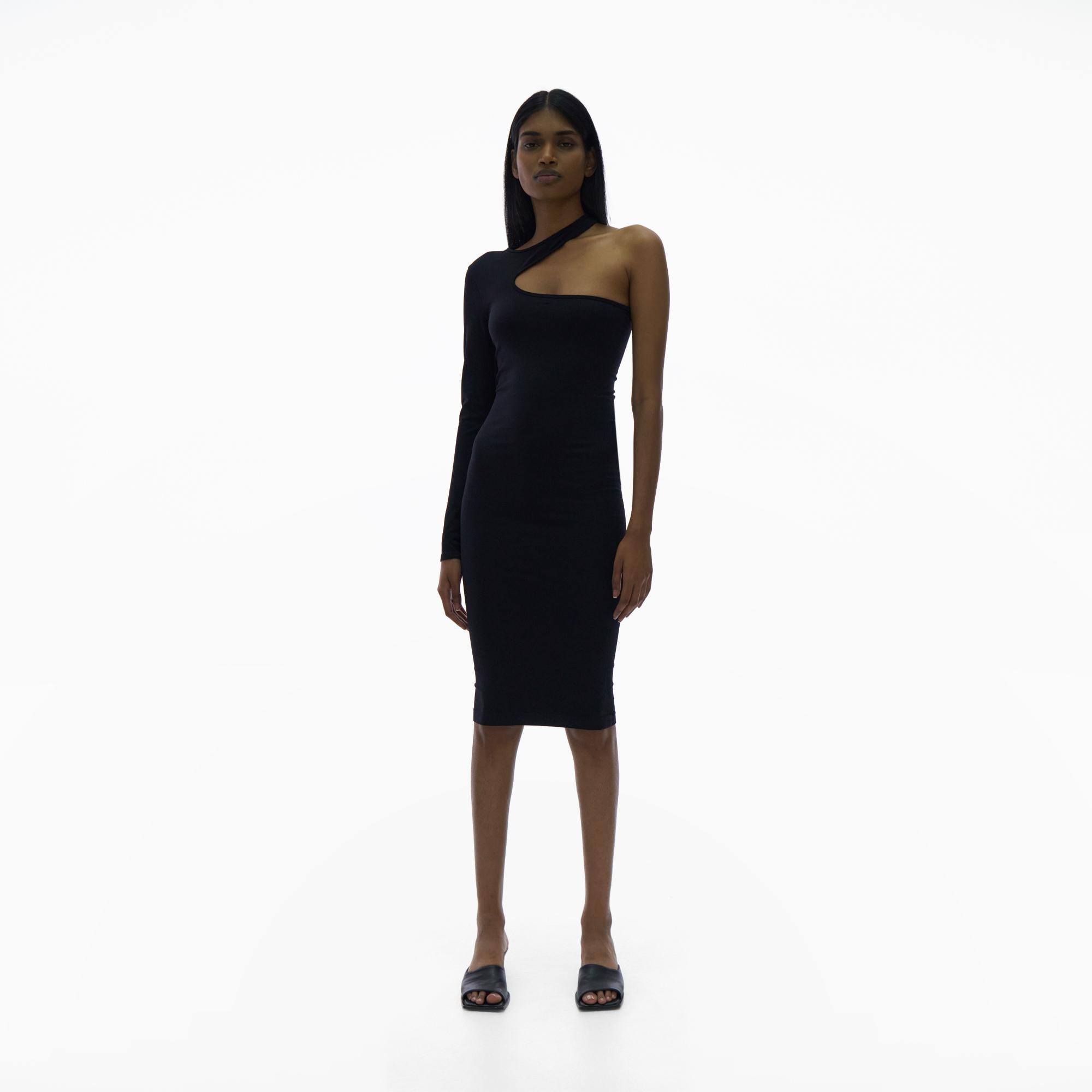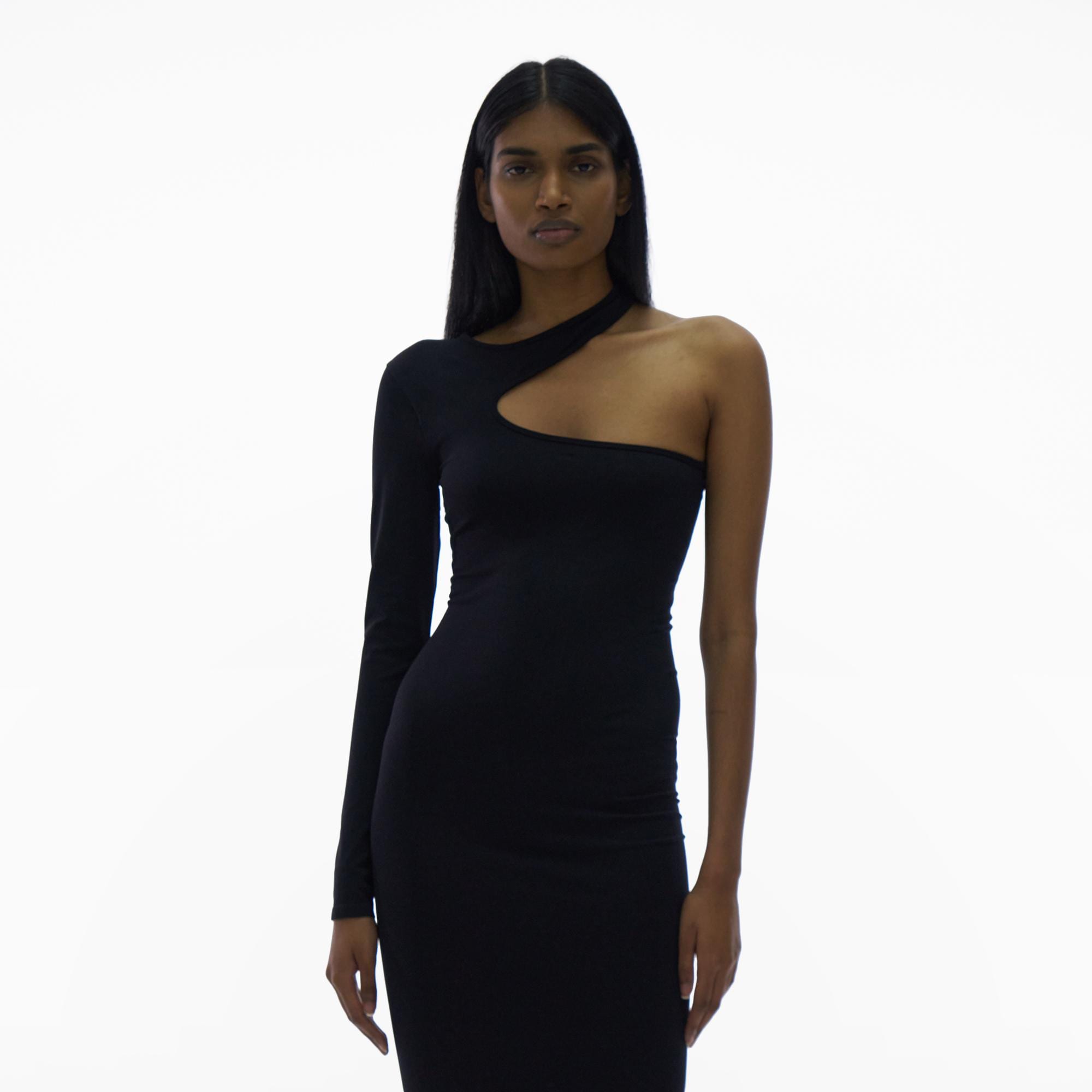 The Helmut Lang Core Cut-Out Dress is constructed in Helmut Lang seamless stretch jersey, with a single shoulder and cut-outs at the front and back. The seamless jersey is knit in a stretch nylon-blend with minimal seams and does not compromise on stretch, breathability, and comfort.