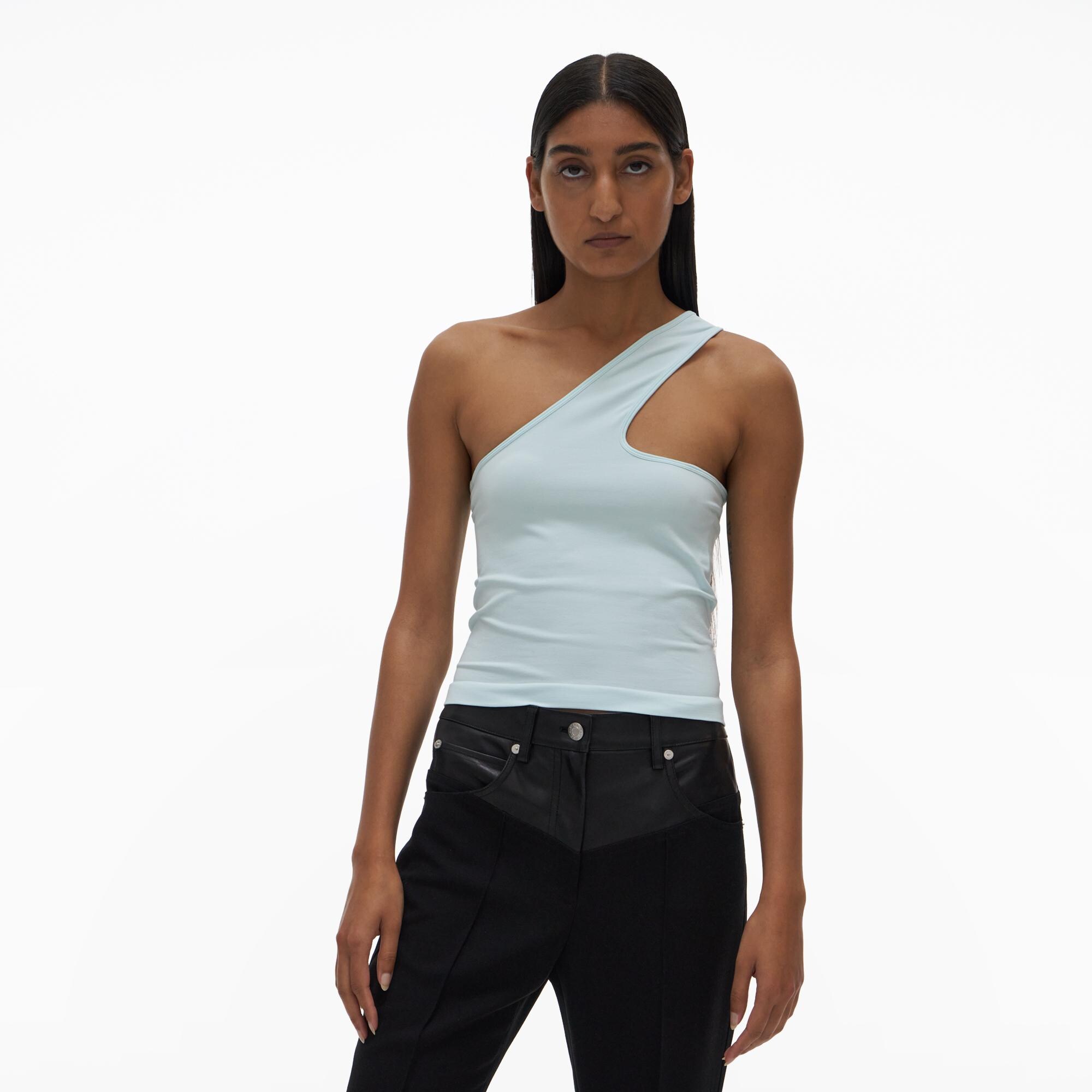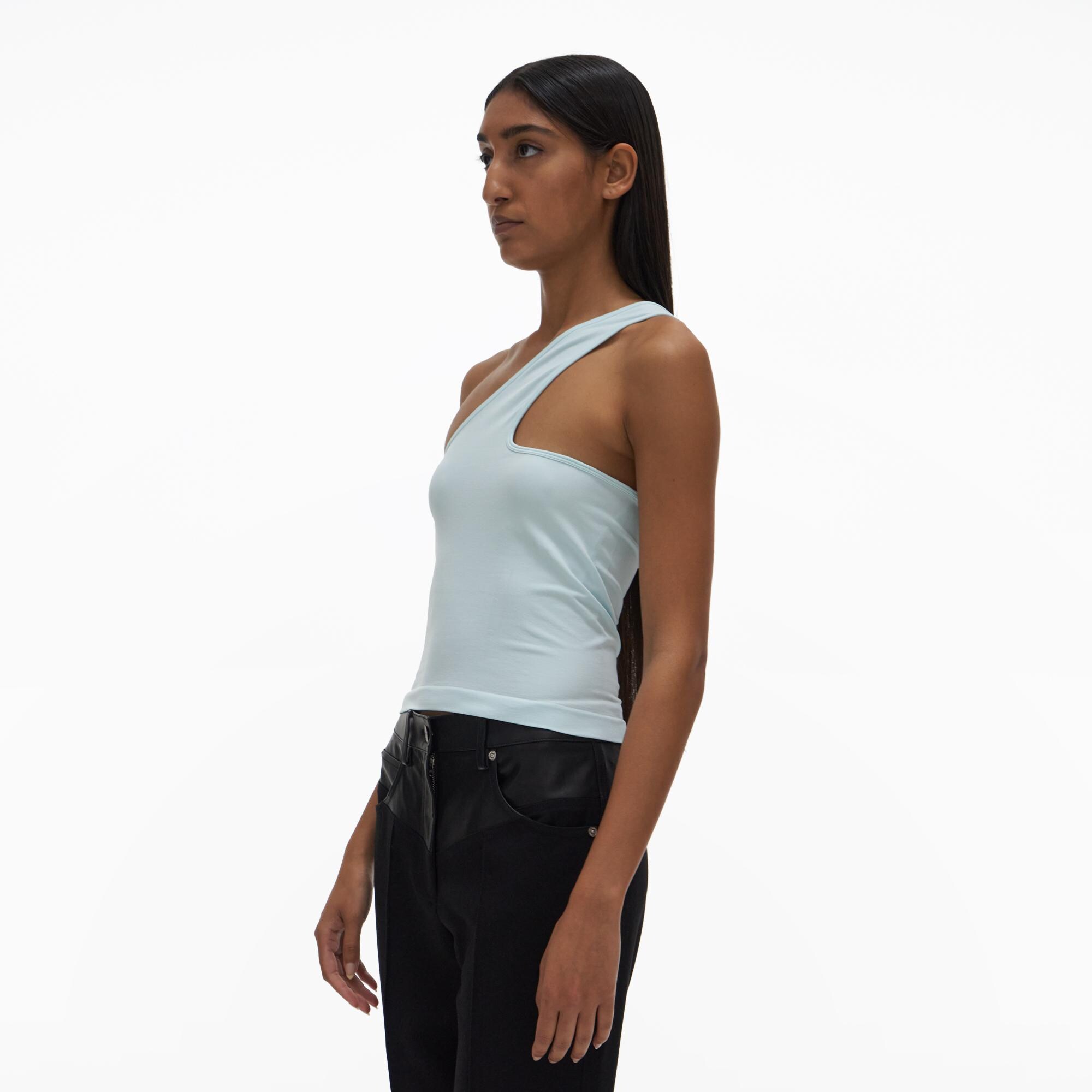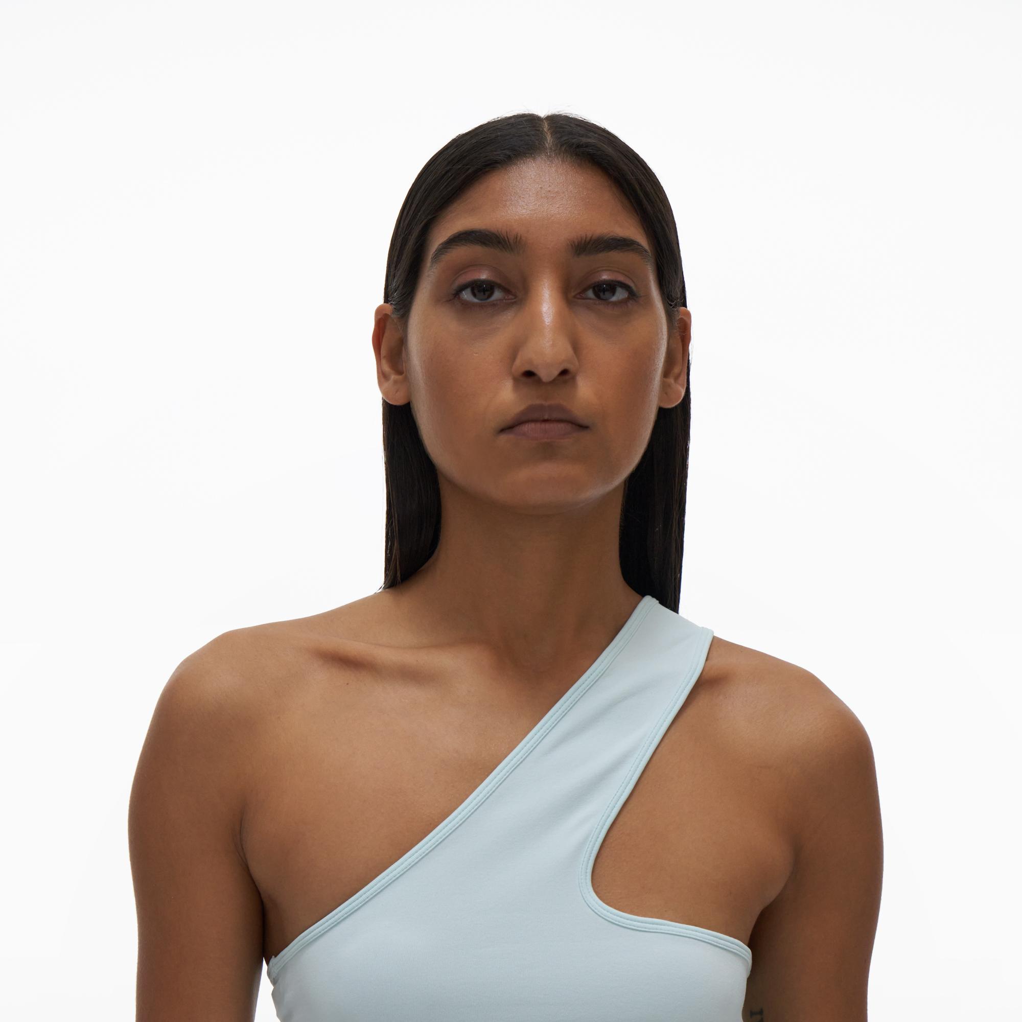The Helmut Lang Core Cut-Out Tank Top is constructed in Helmut Lang Seamless Stretch Jersey, with a single shoulder and cut-outs at the front and back. The seamless jersey knit in a stretch nylon-blend with minimal seams and does not compromise on stretch, breathability, and comfort.