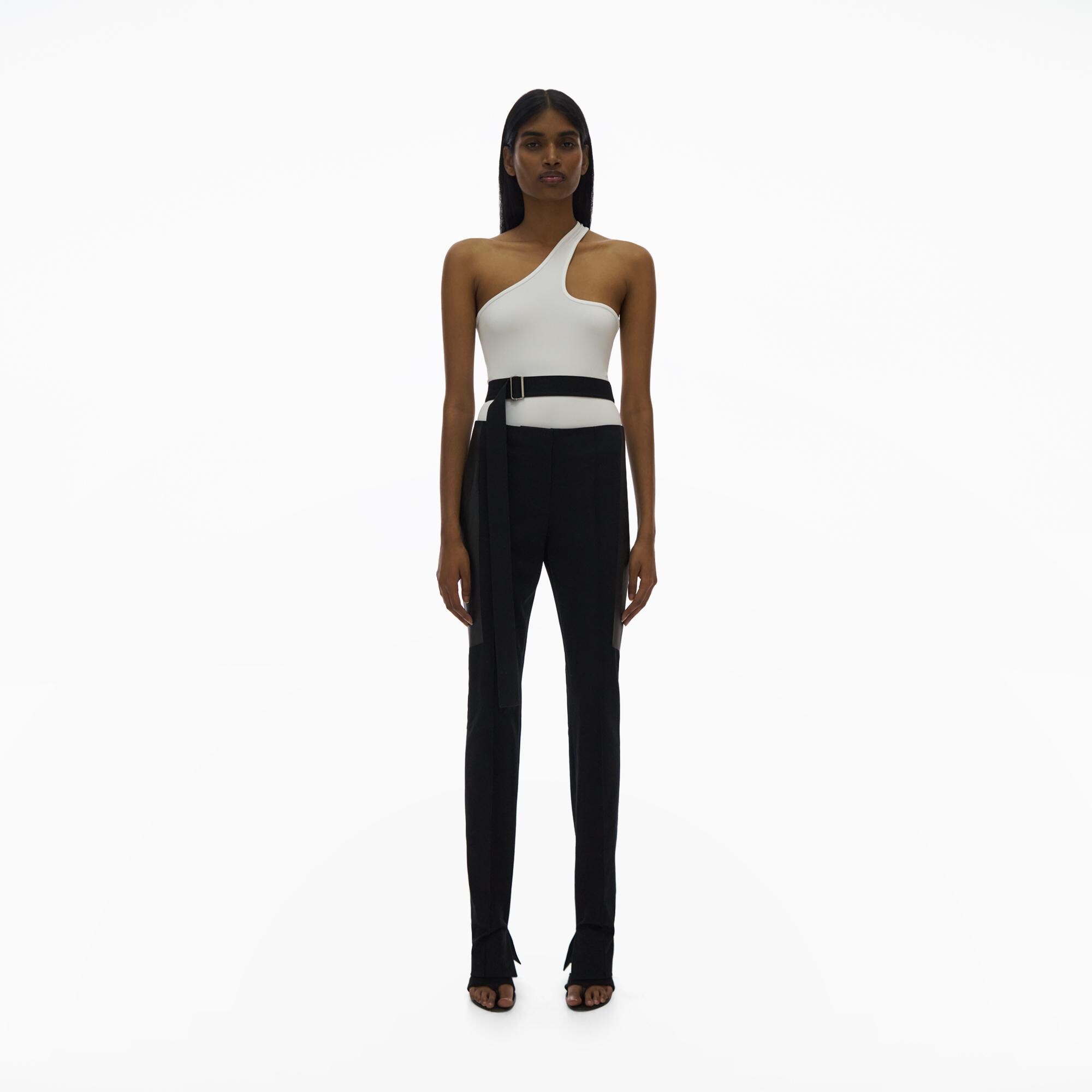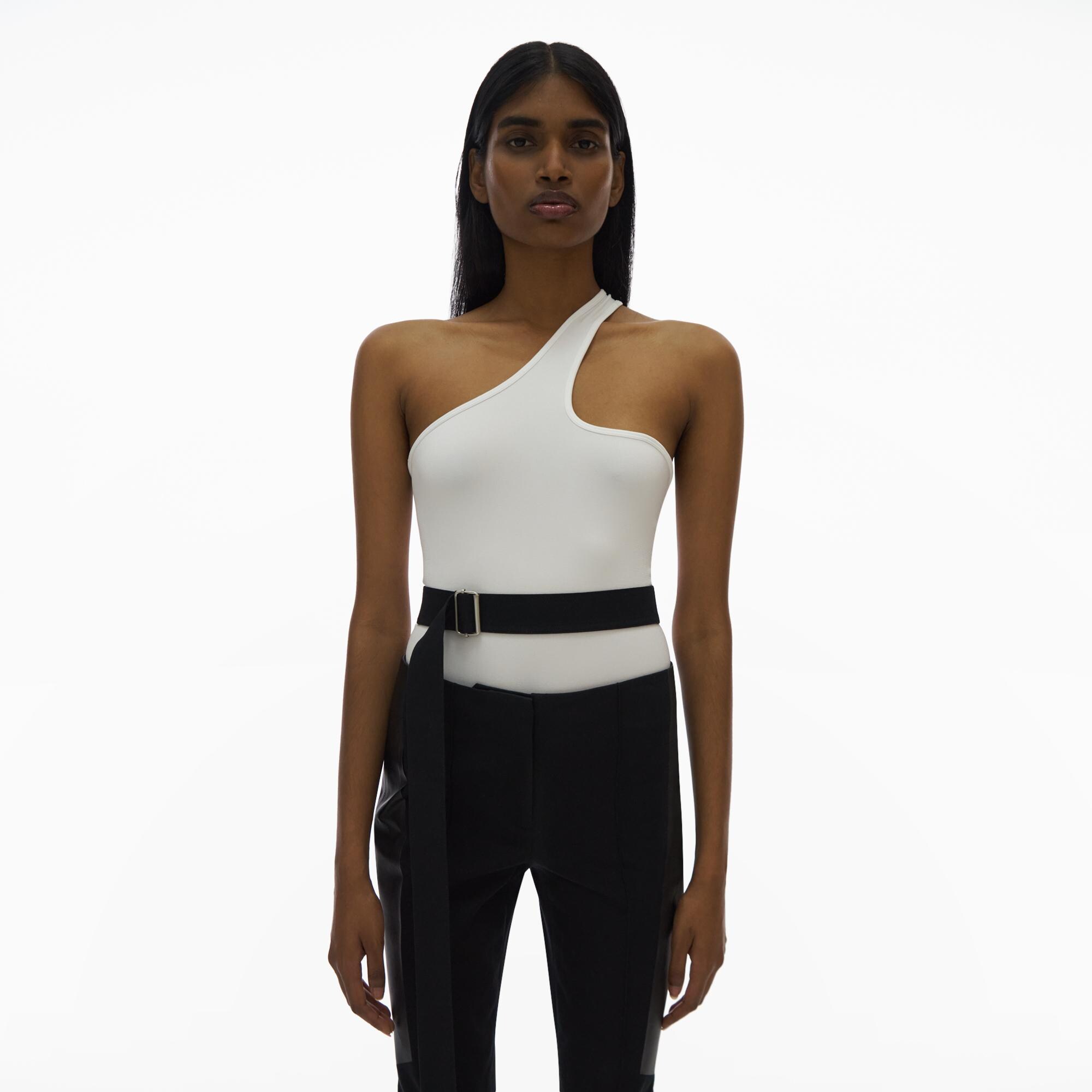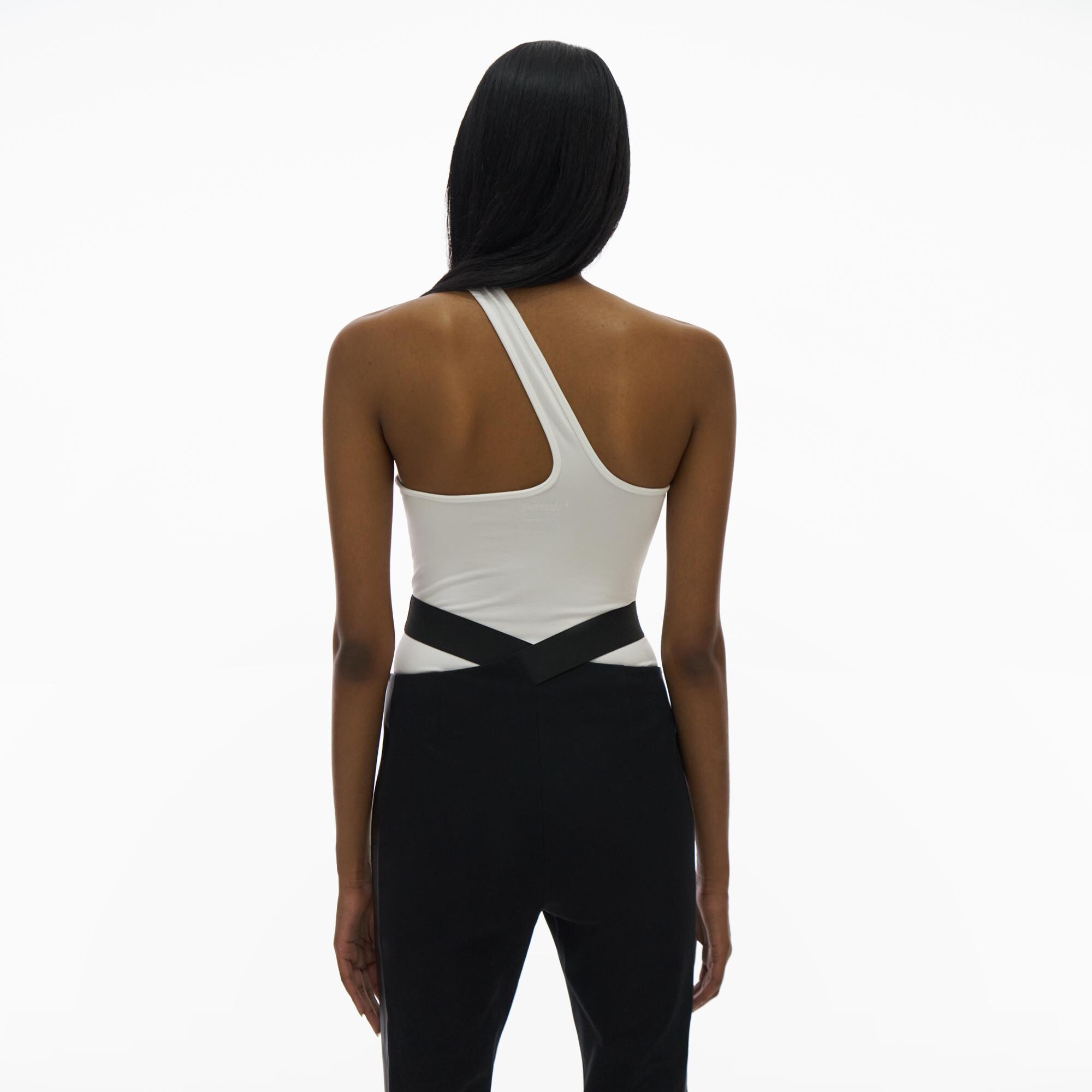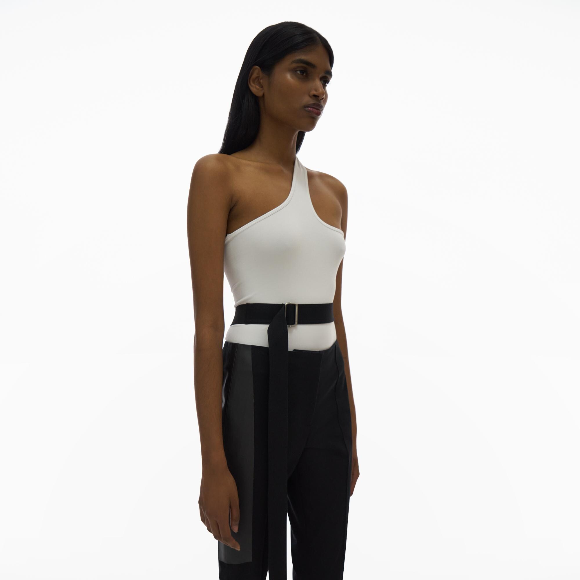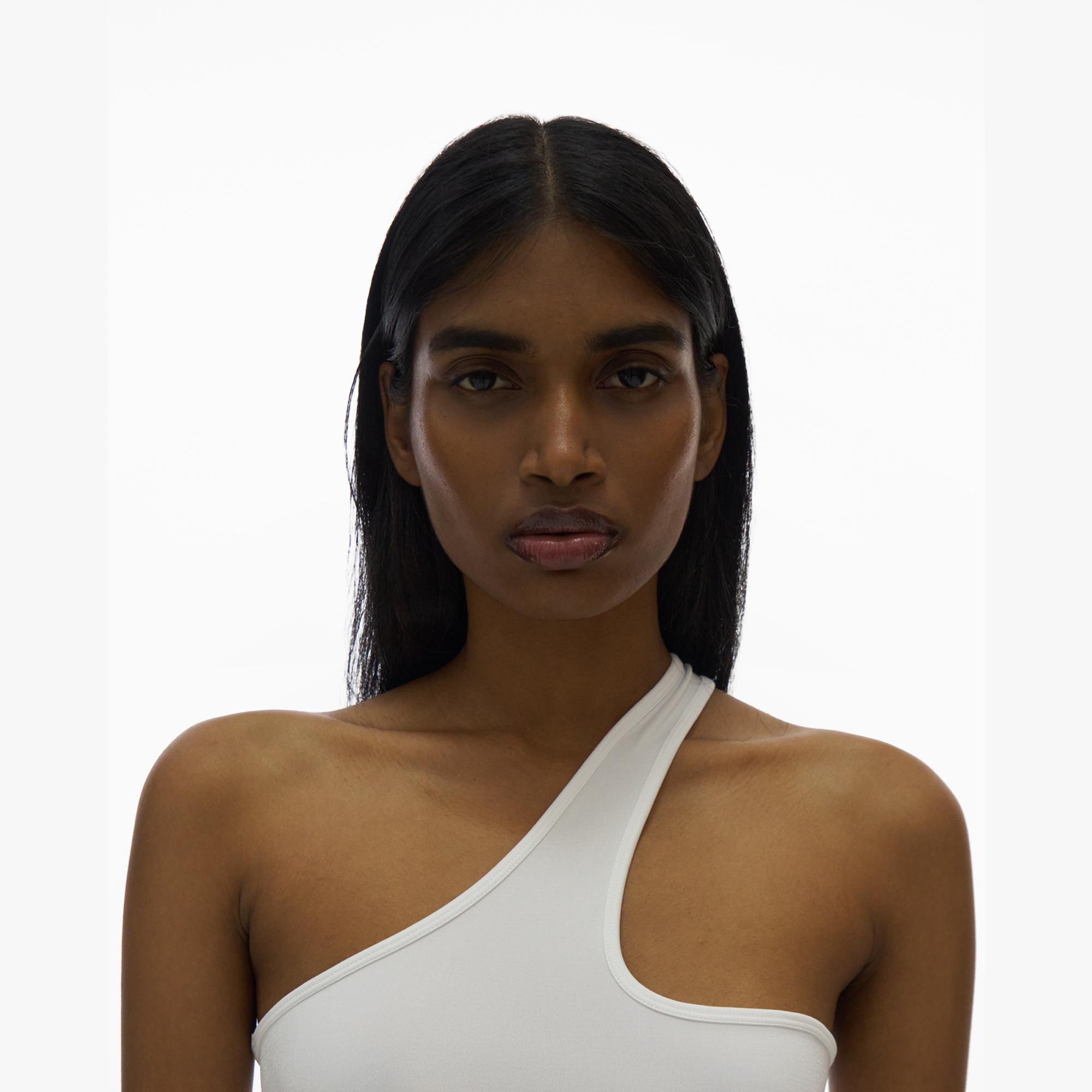 The Helmut Lang Core Cut-Out Tank Top is constructed in Helmut Lang Seamless Stretch Jersey, with a single shoulder and cut-outs at the front and back. The seamless jersey knit in a stretch nylon-blend with minimal seams and does not compromise on stretch, breathability, and comfort.