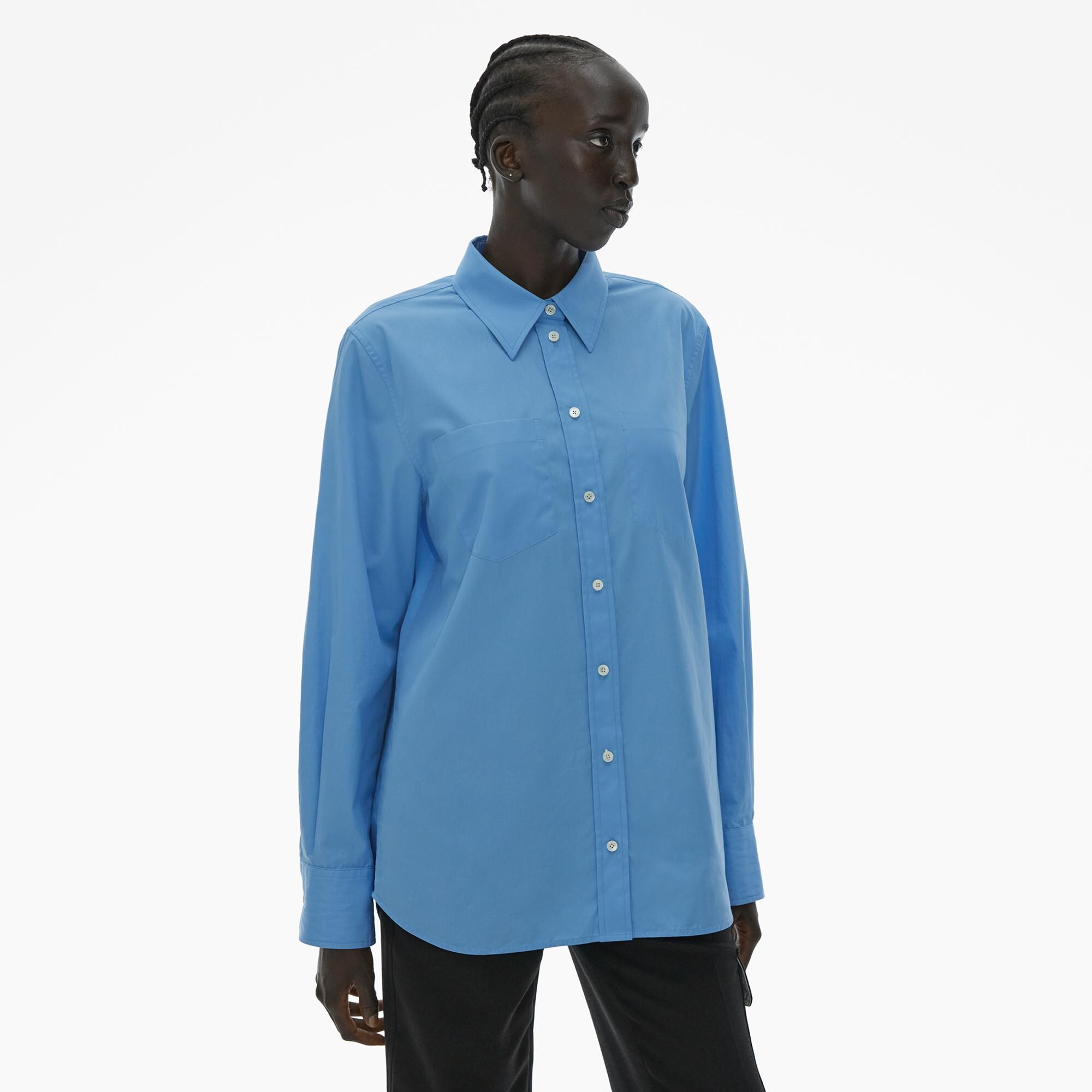 The Helmut Lang Core Shirt is a long-sleeve style in Italian cotton poplin with a point collar and button front closures.
