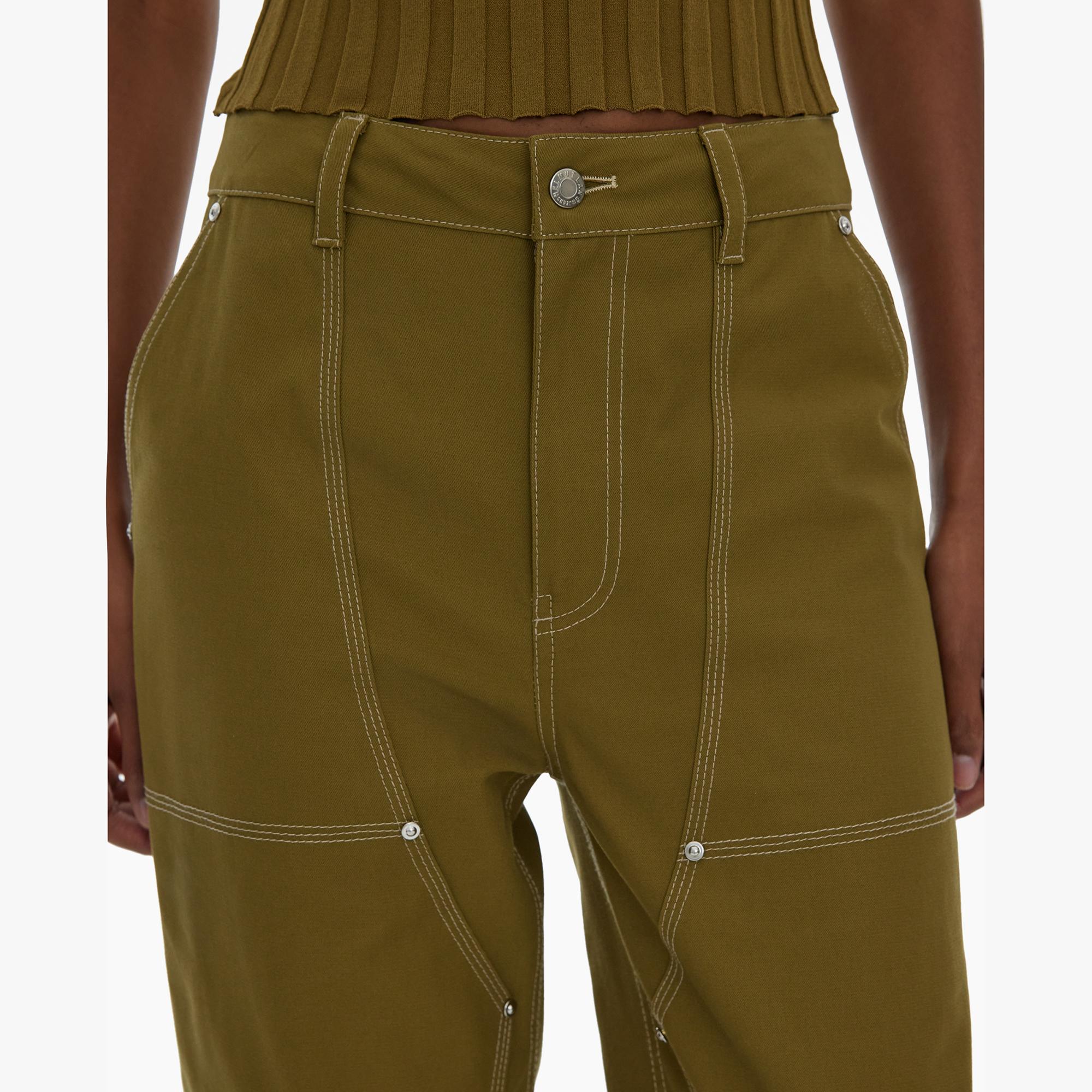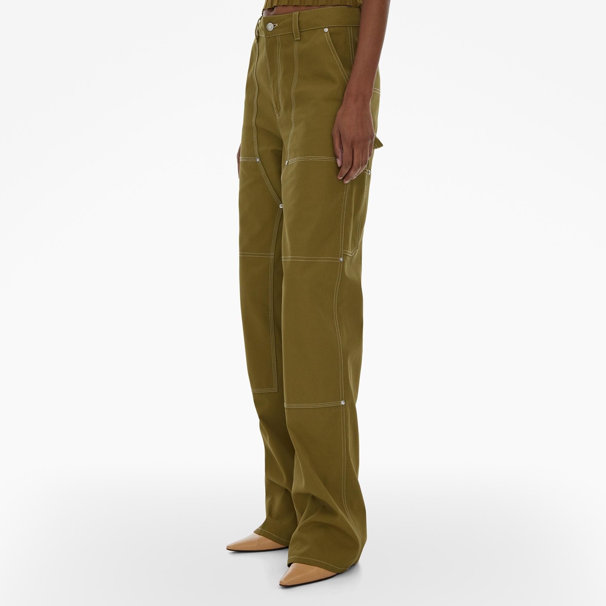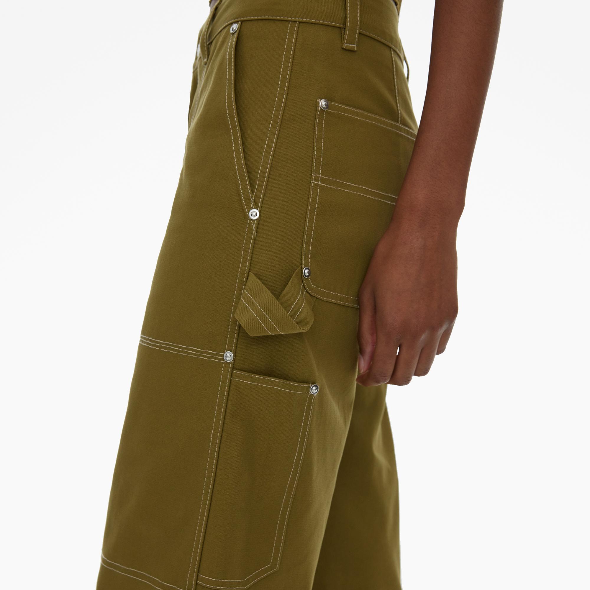 The Helmut Lang Carpenter Pant is a wide-leg 5-pocket style pant in cotton with belt loops, zip fly and button closure and utilitarian details.