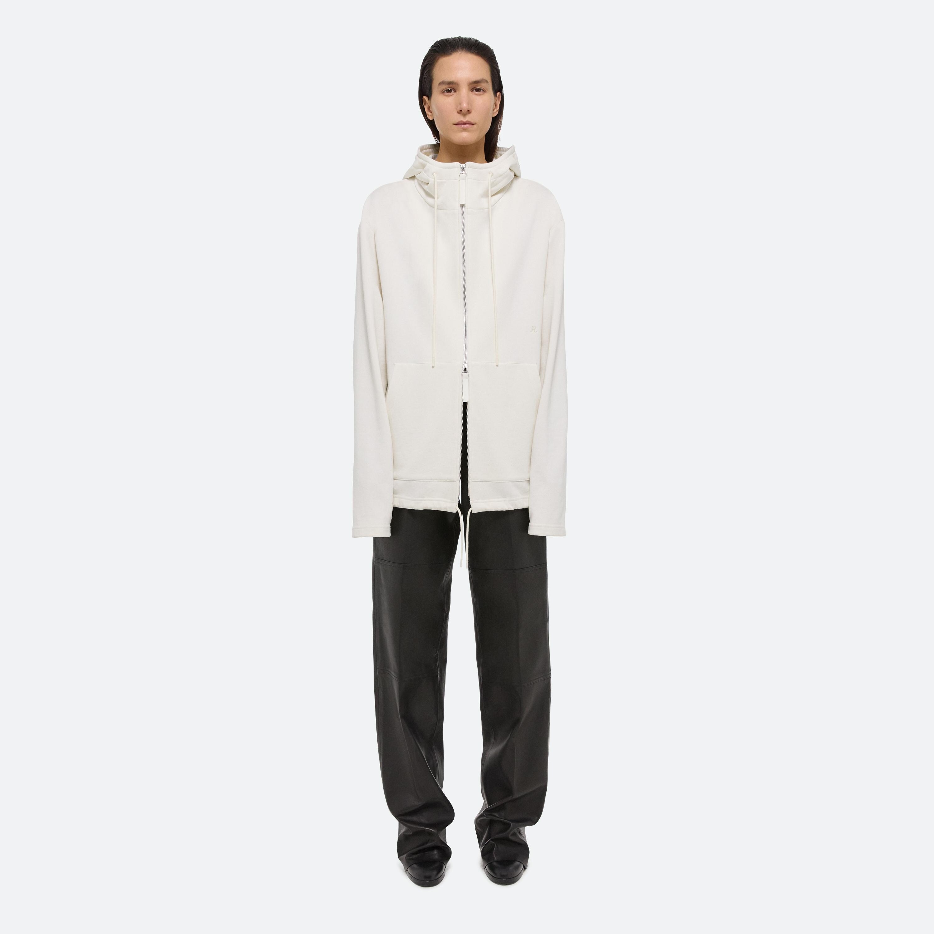 Hooded oversized sweatshirt in soft cotton fleece. Relaxed fit with two way zip closure. This garment was designed with many body types and gender expressions in mind.