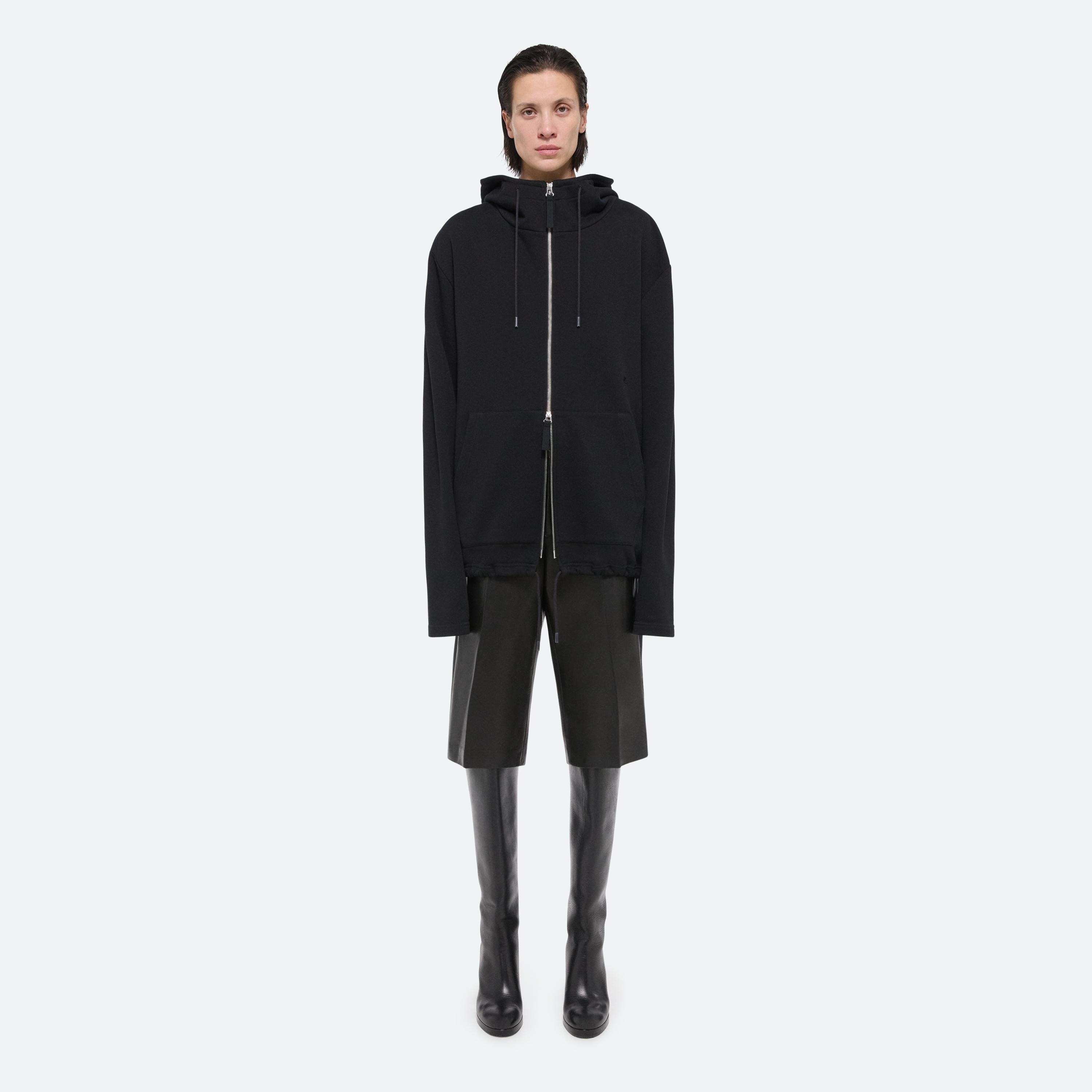 Hooded oversized sweatshirt in soft cotton fleece. Relaxed fit with two way zip closure. This garment was designed with many body types and gender expressions in mind.
