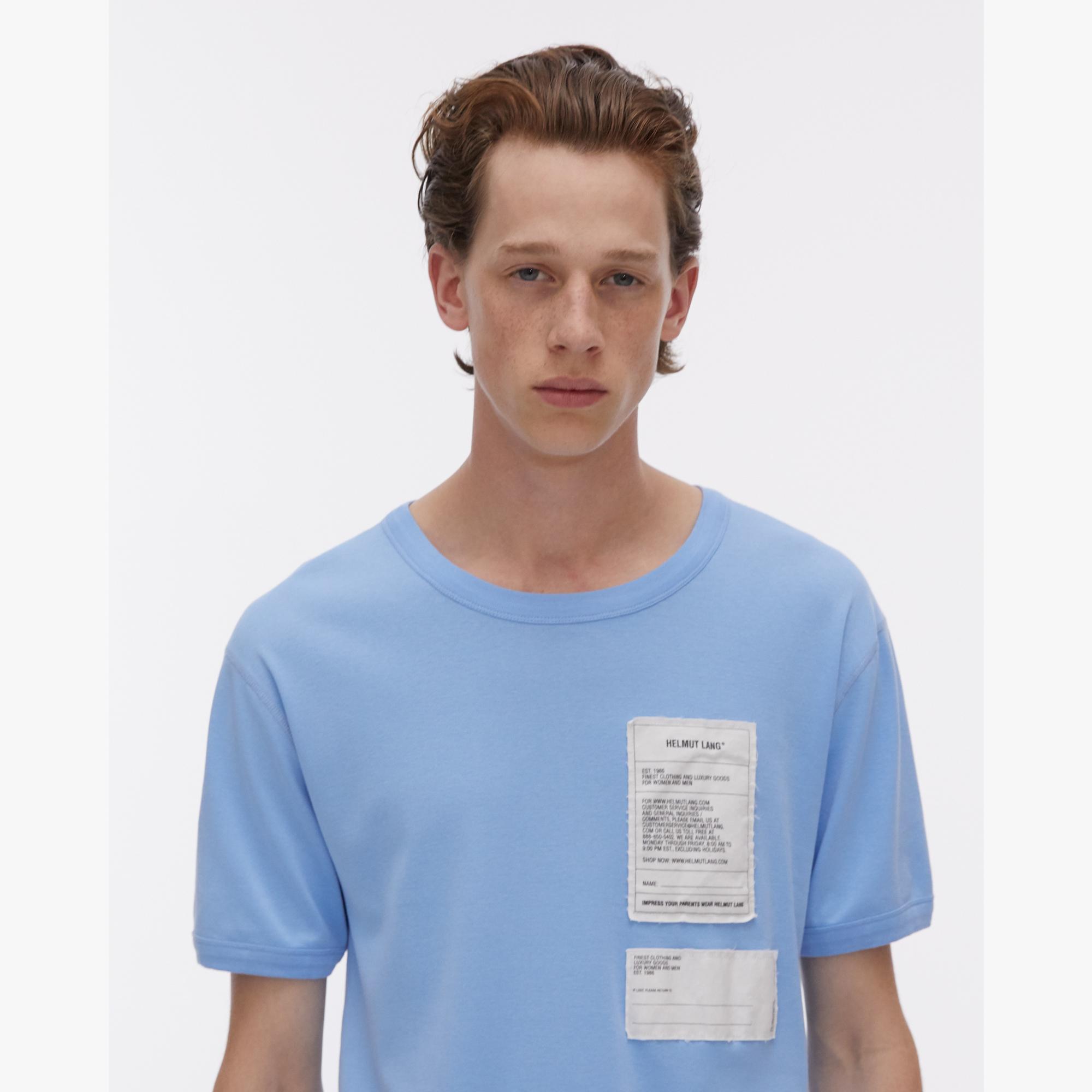 The Helmut Lang Cotton Tee with Patches is a classic cotton t-shirt with cotton patch details
