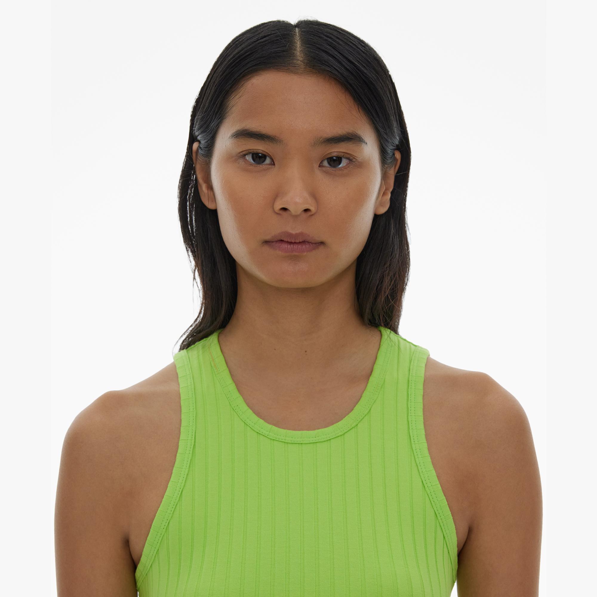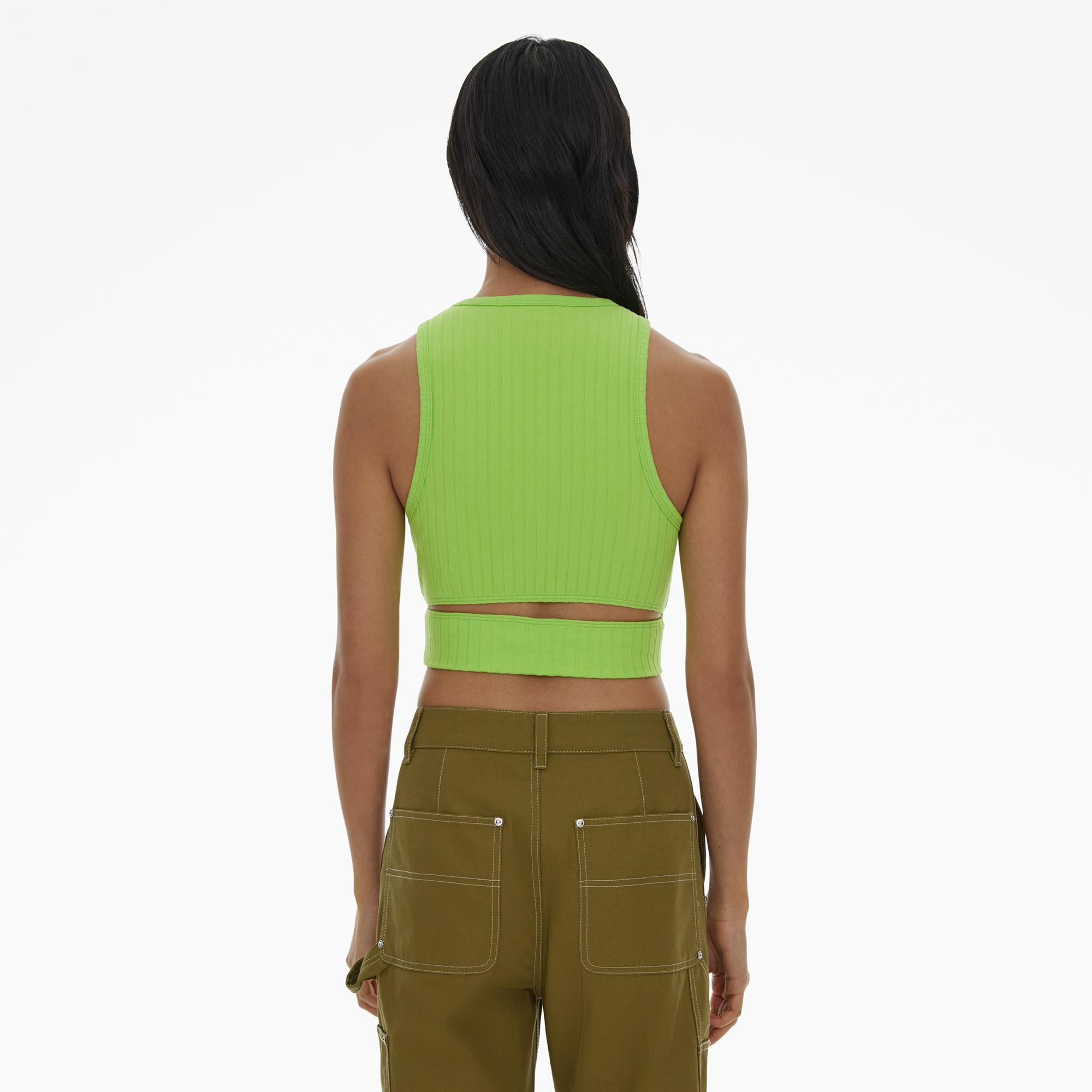 The Helmut Lang Cropped Tank Top is a slim-fitting style in cotton rib knit with a crew neckline.