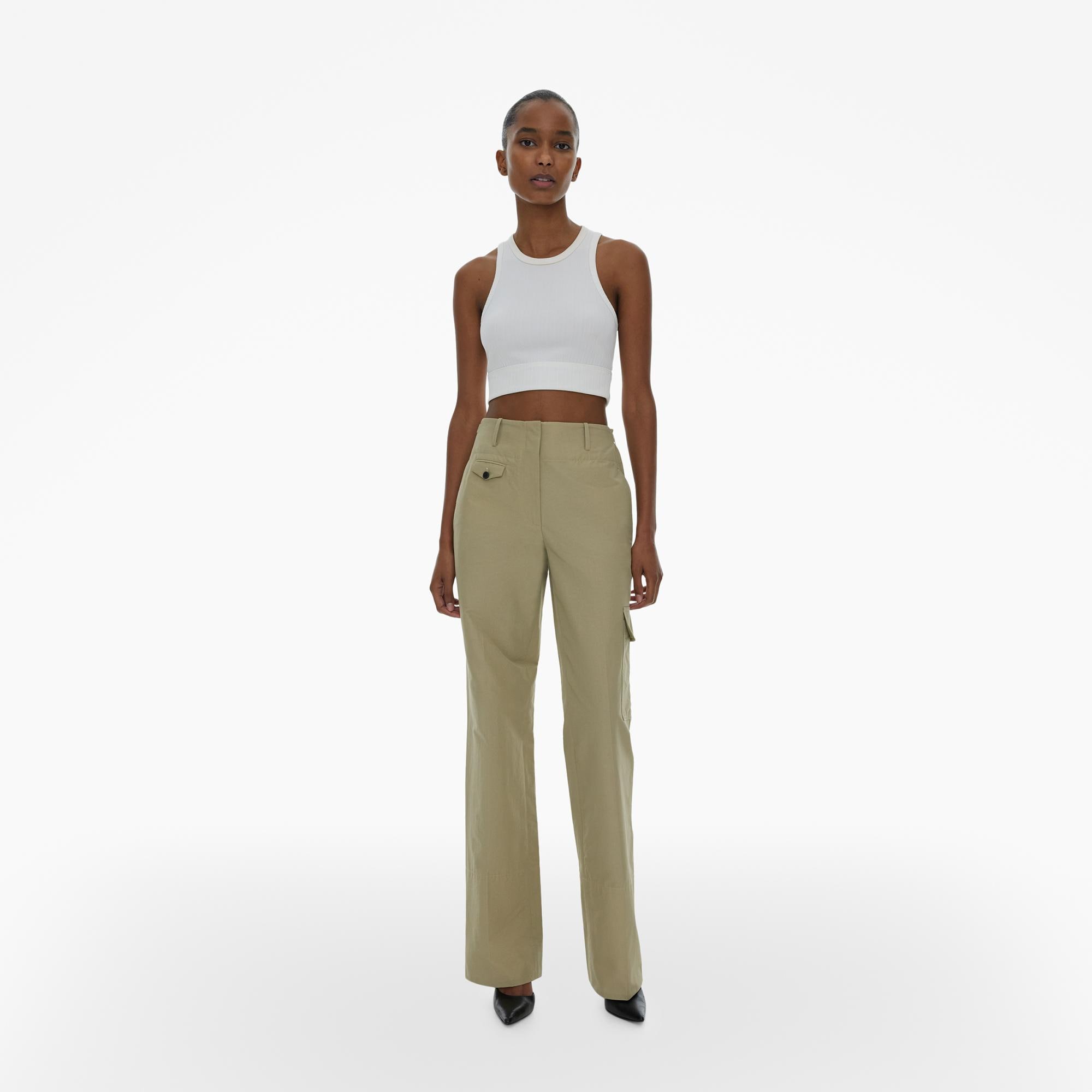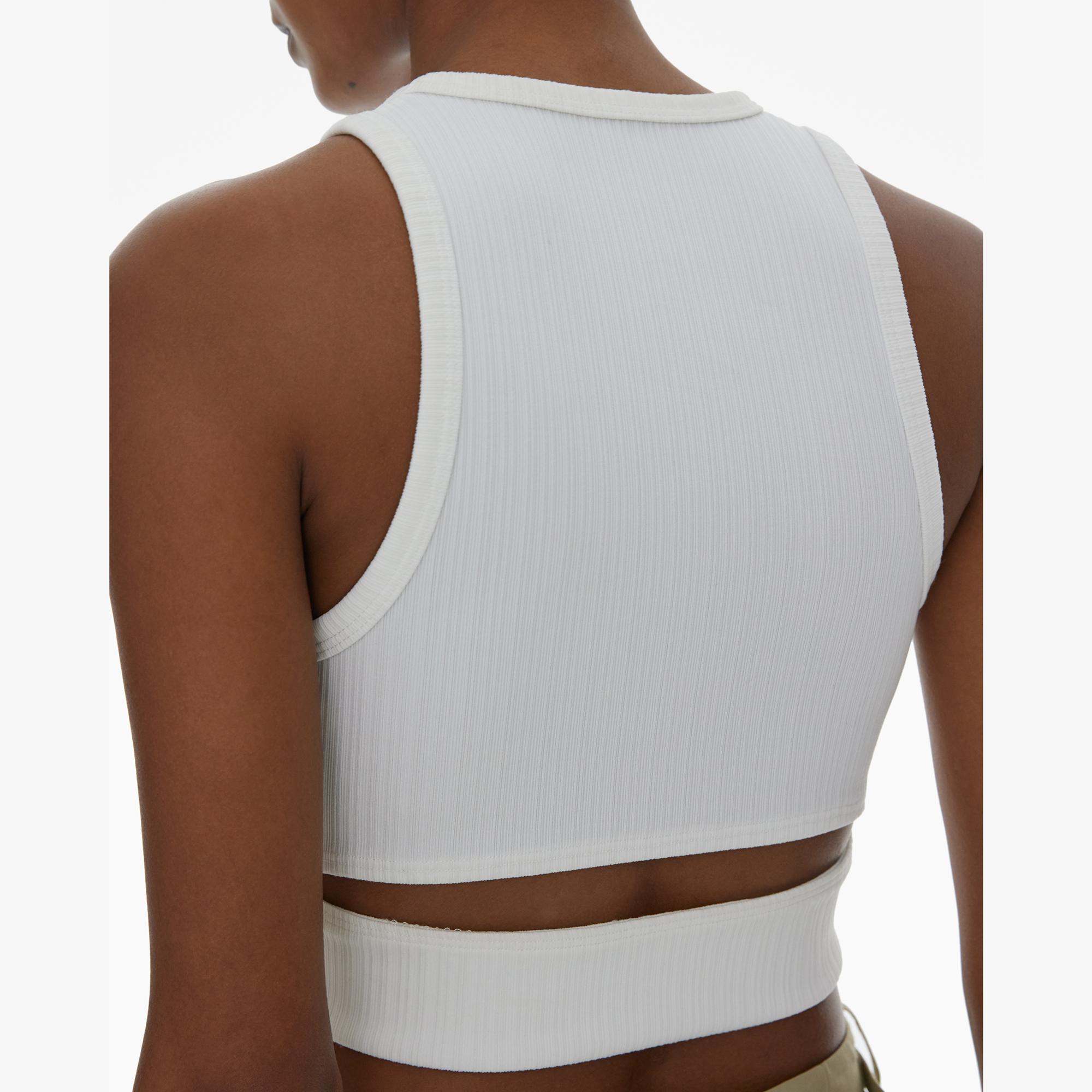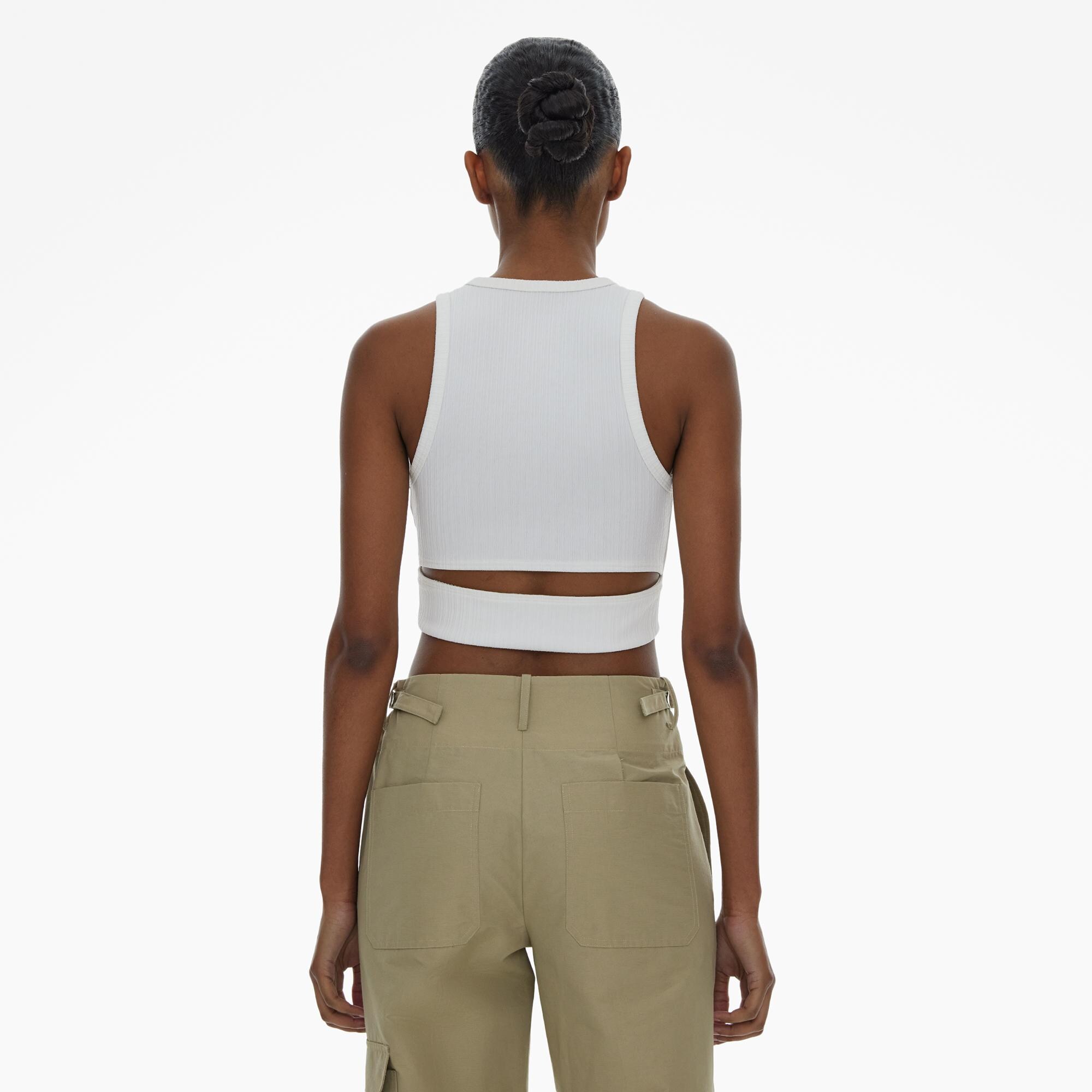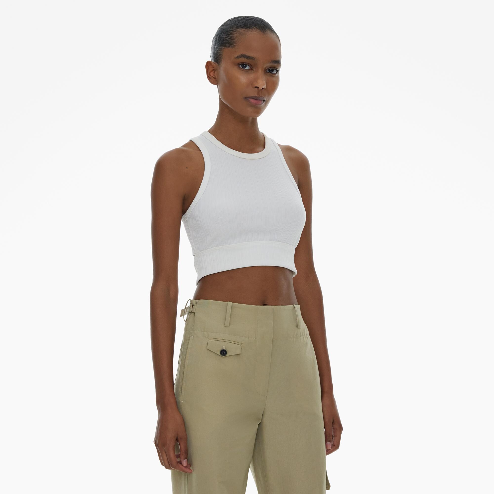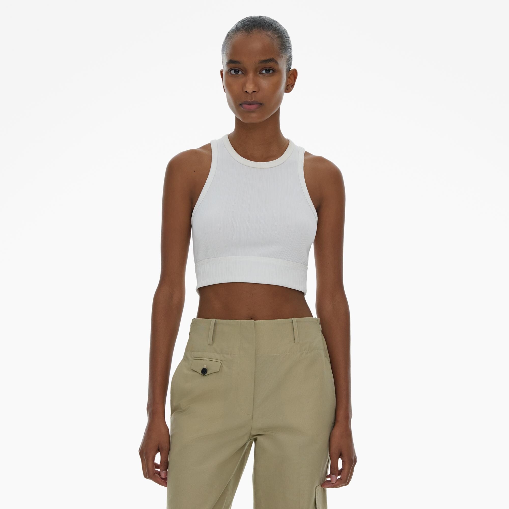 The Helmut Lang Cropped Tank Top is a slim-fitting style in cotton rib knit with a crew neckline.