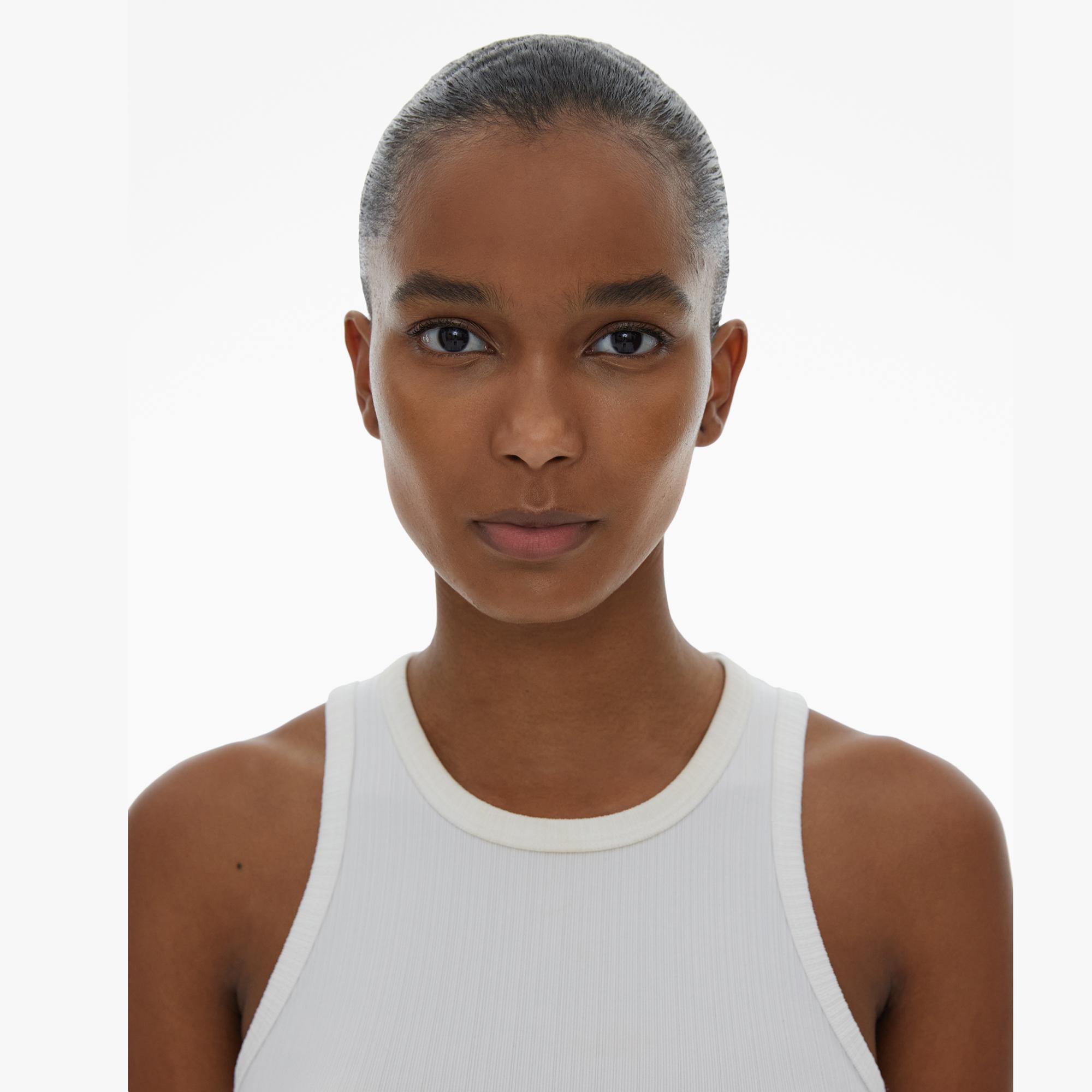 The Helmut Lang Cropped Tank Top is a slim-fitting style in cotton rib knit with a crew neckline.