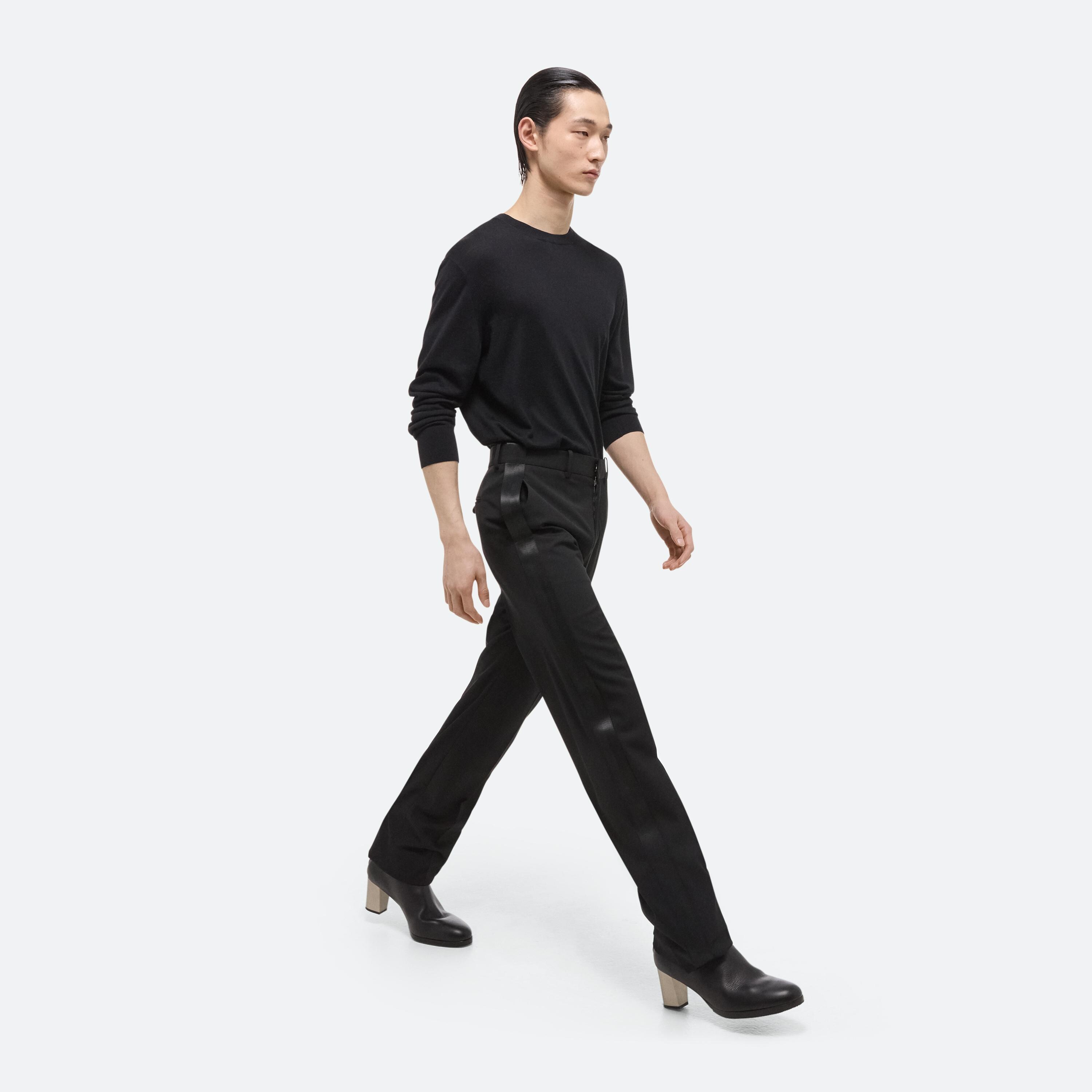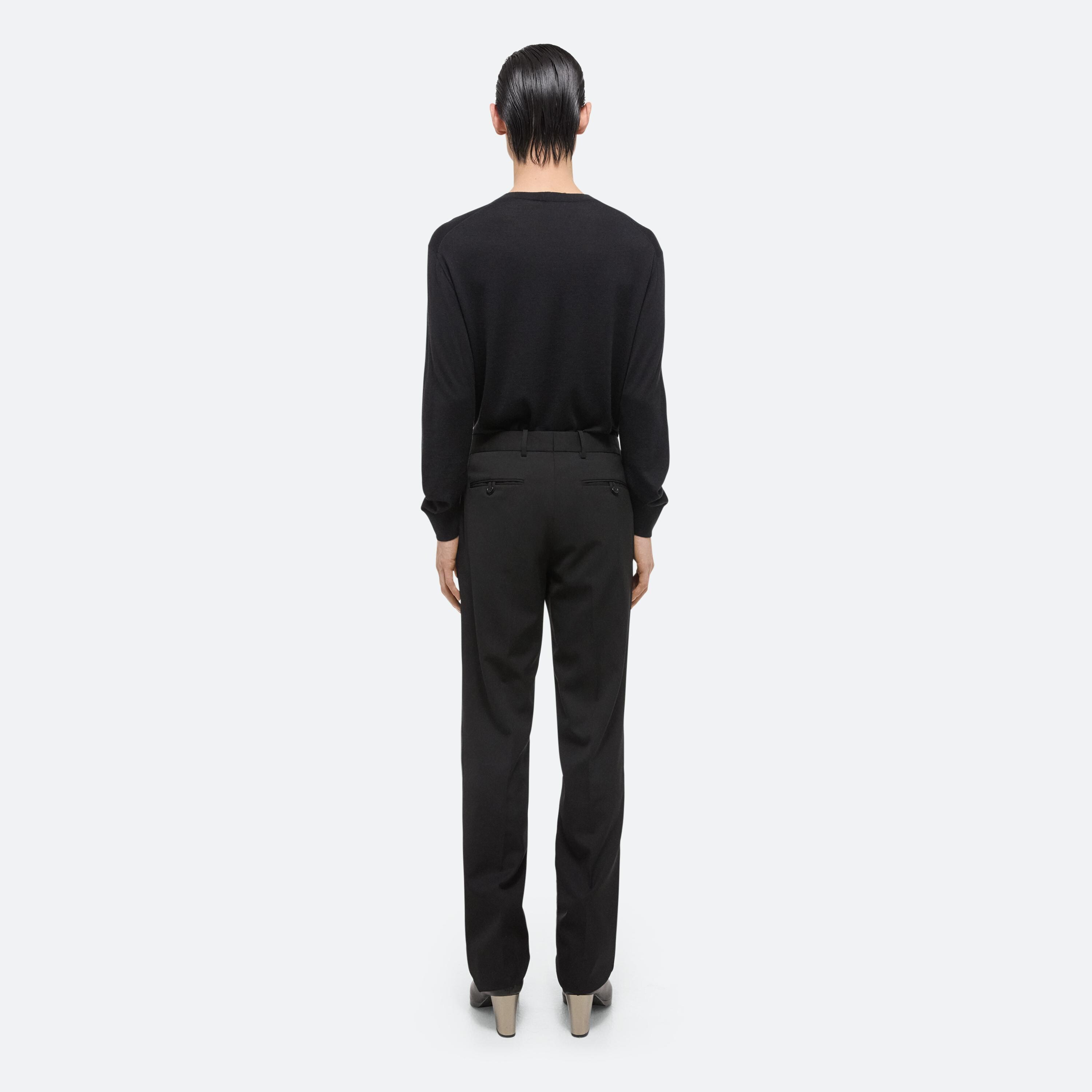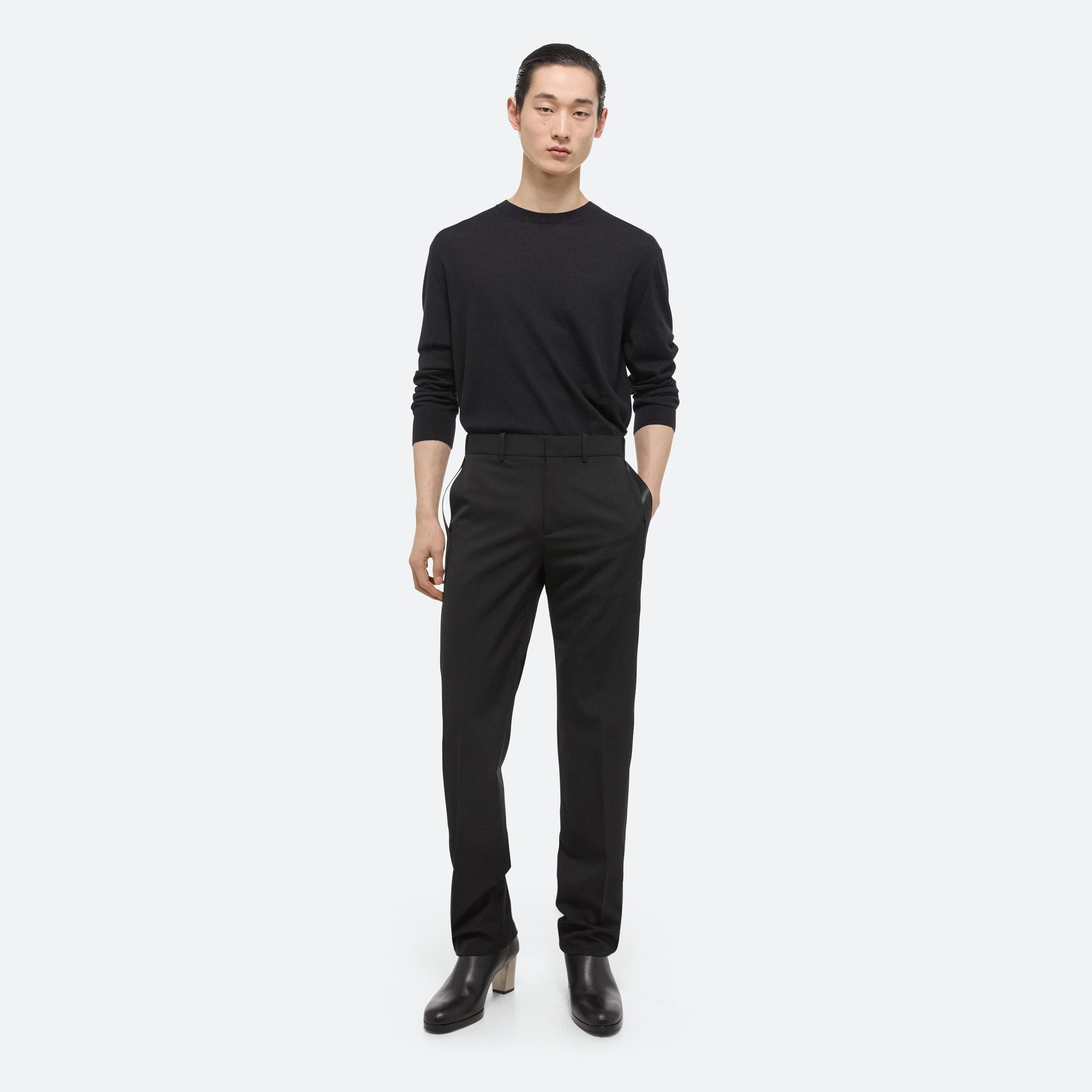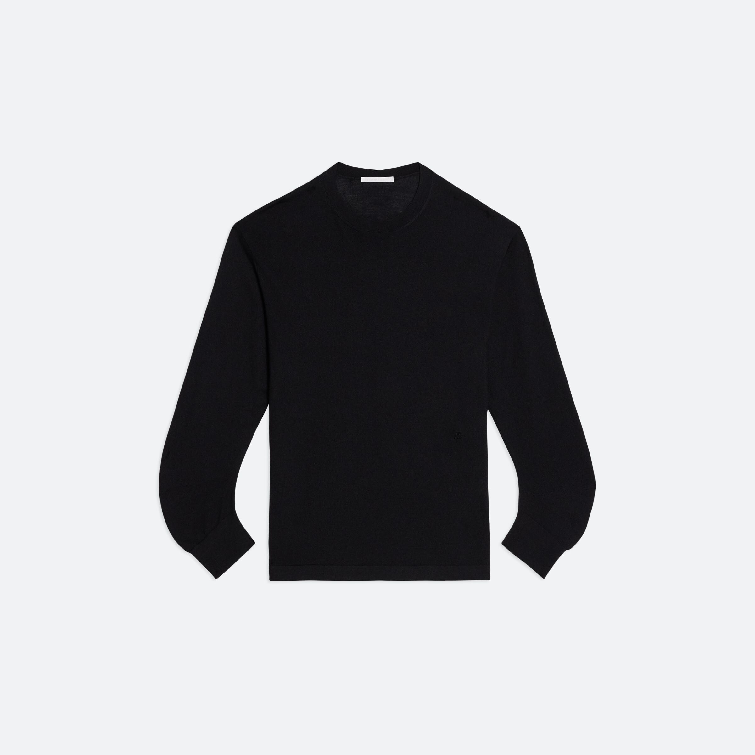 Crew neck sweater in a superfine Merino Wool Silk blend. Sleeves are shaped at the cuff to be worn at the elbows. This garment was designed with many body types and gender expressions in mind.
