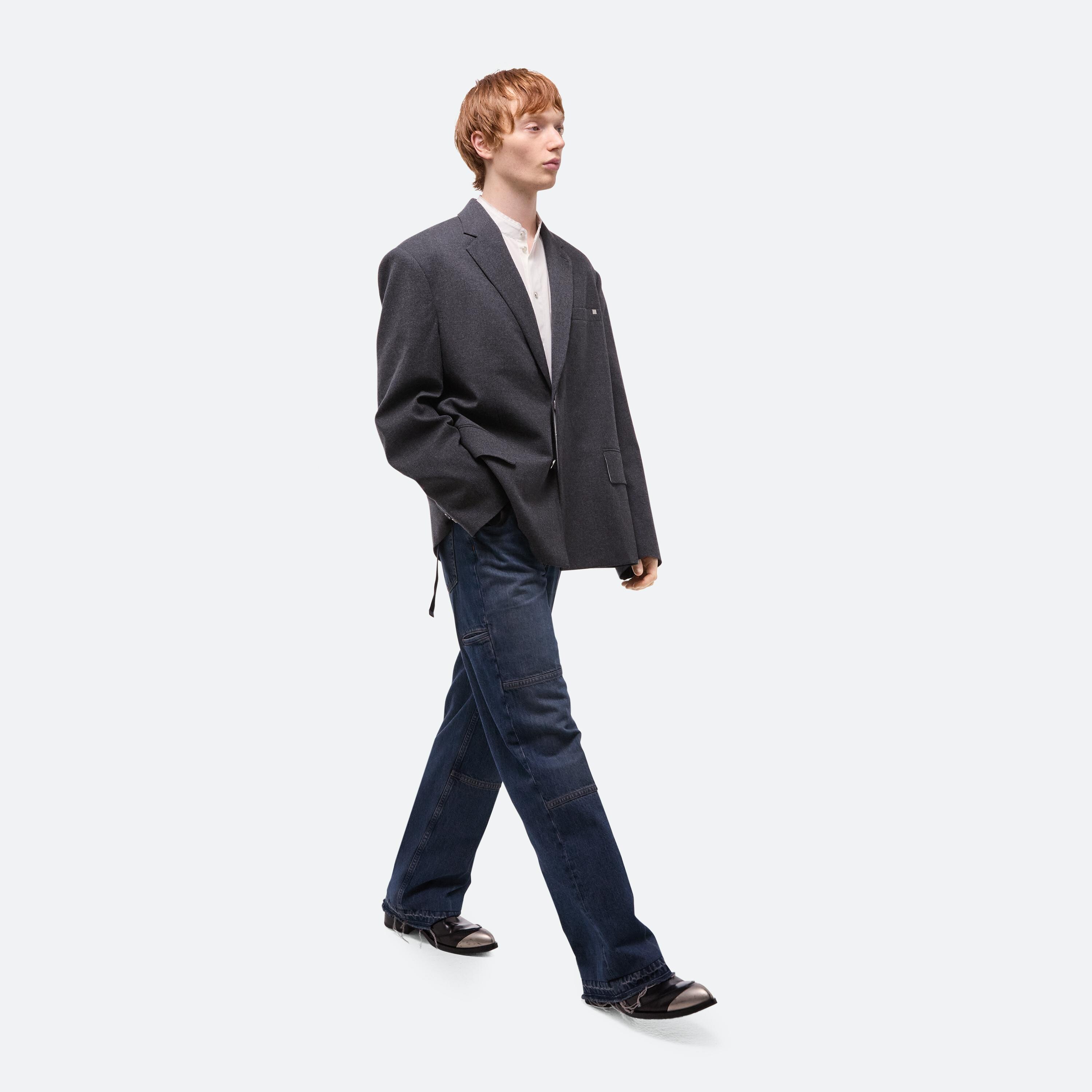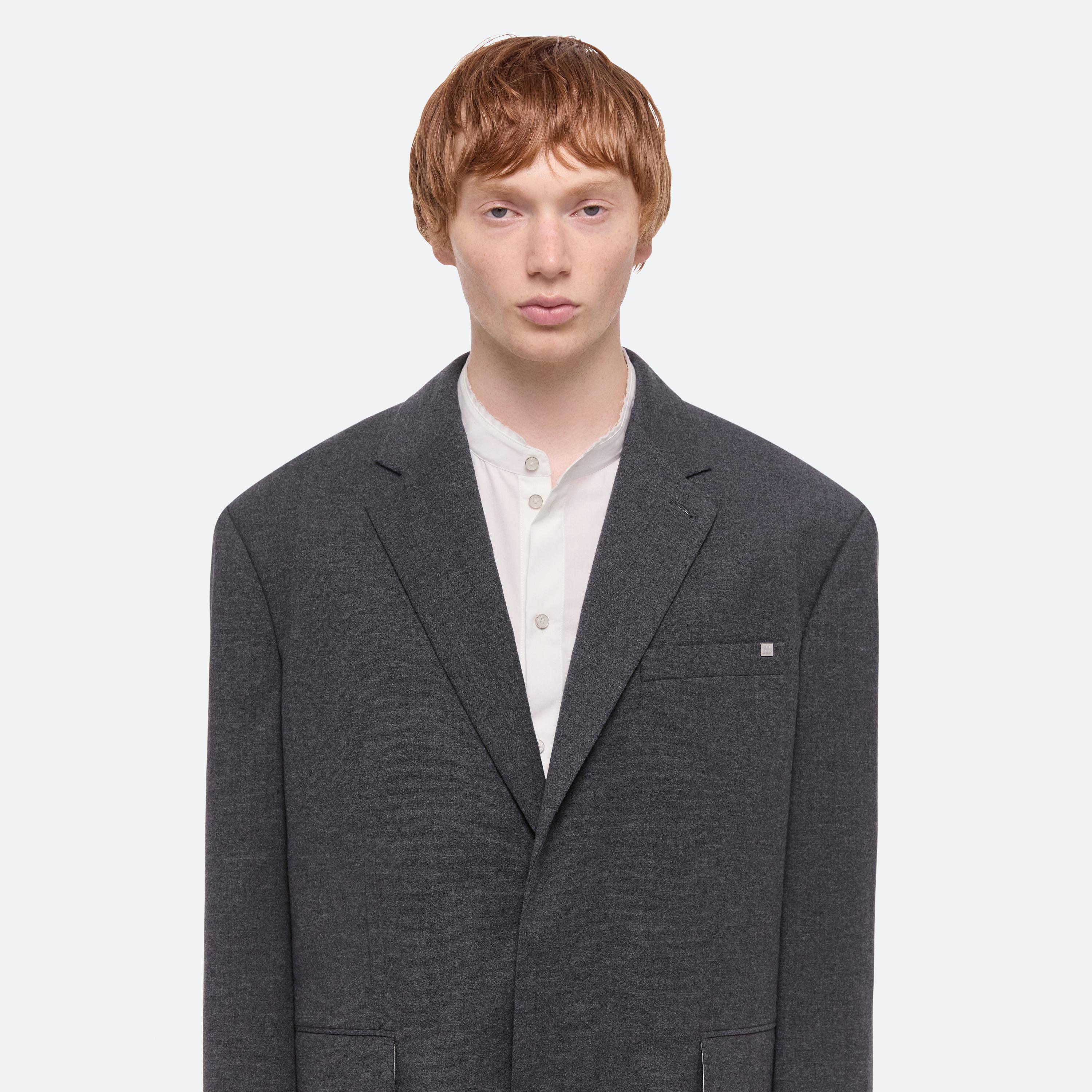 Classic blazer in a wool flannel melange. Oversized single-breasted fit with peak lapels and flap pockets.