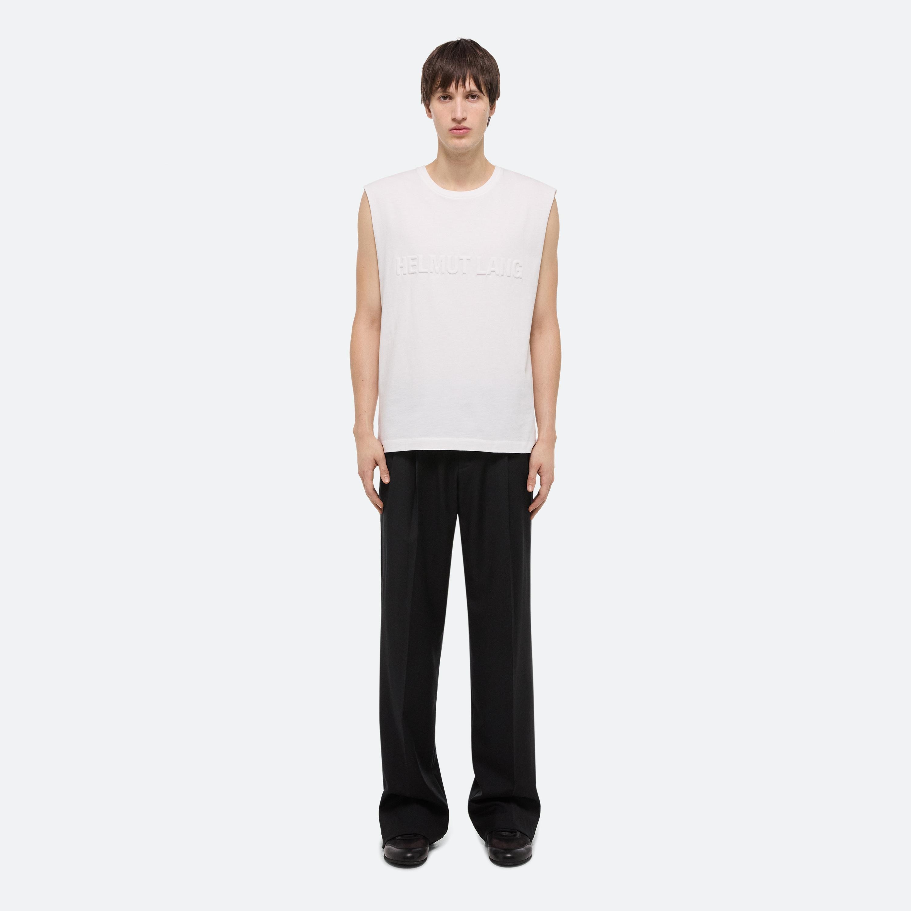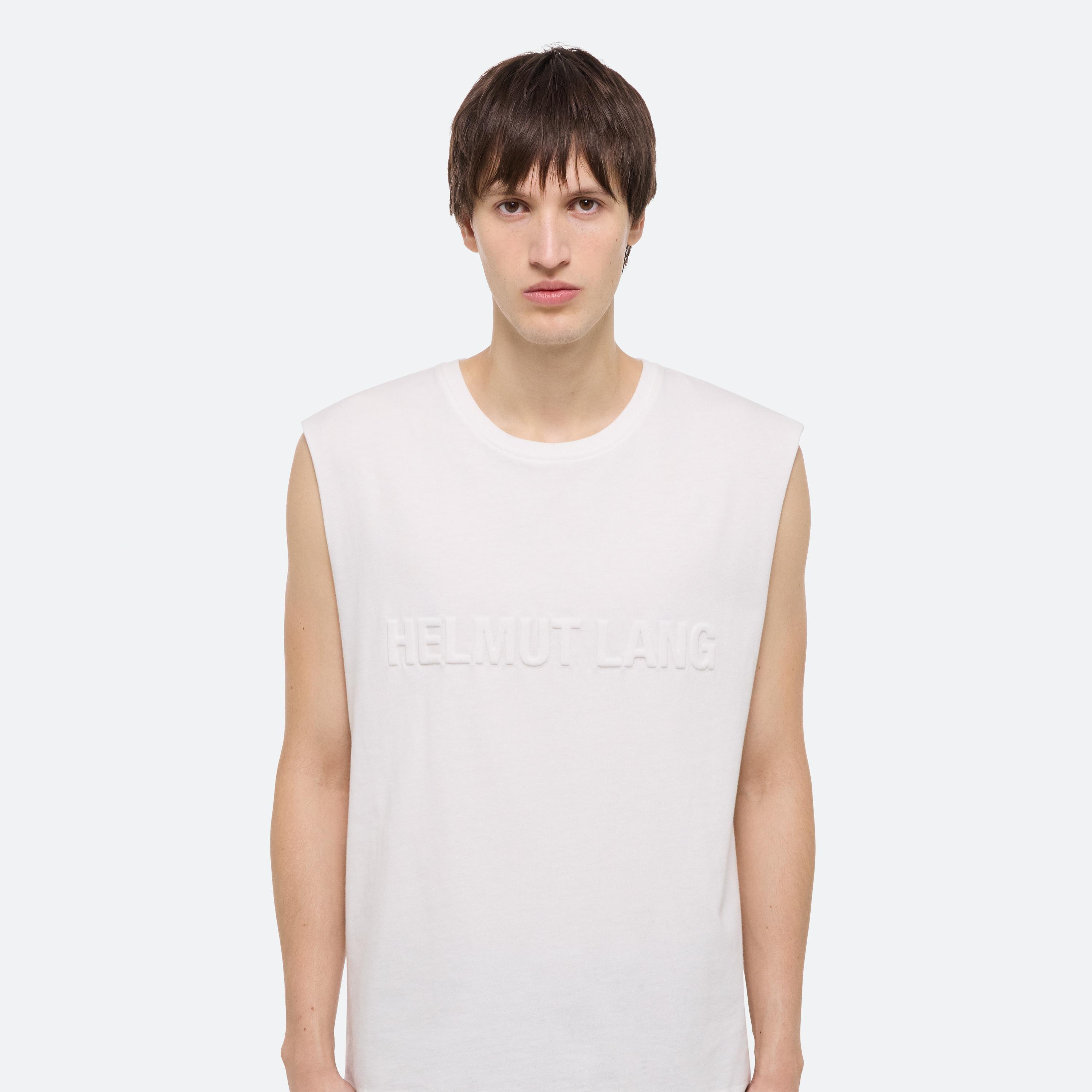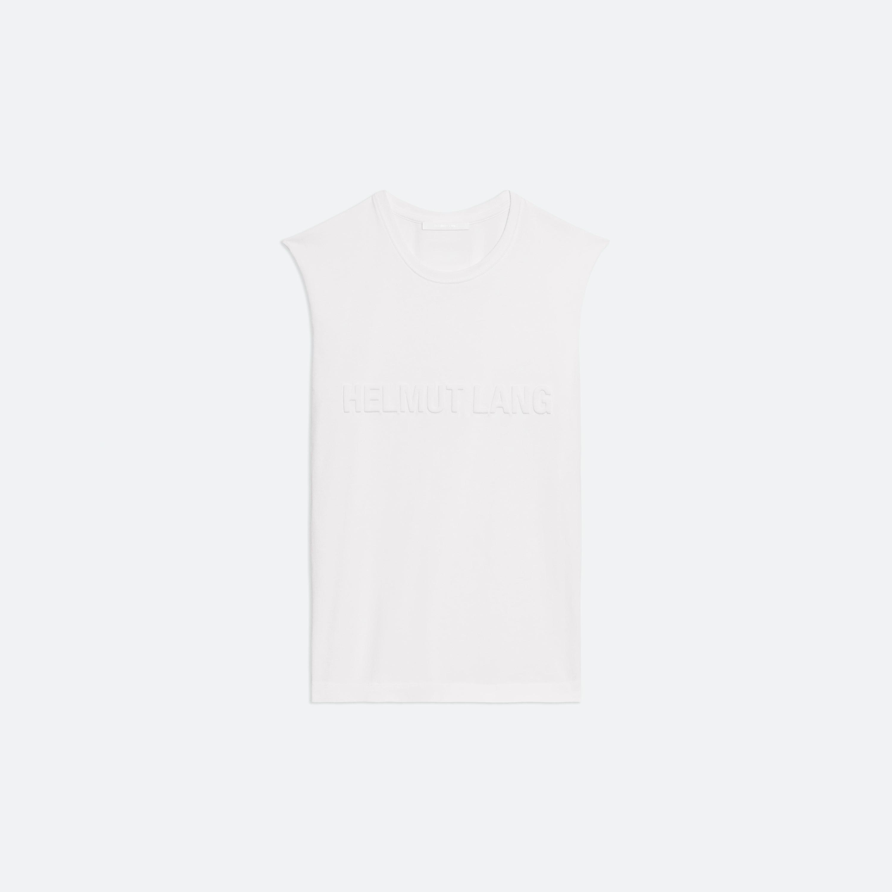 Relaxed-fit crewneck tank top with embossed logo at front.