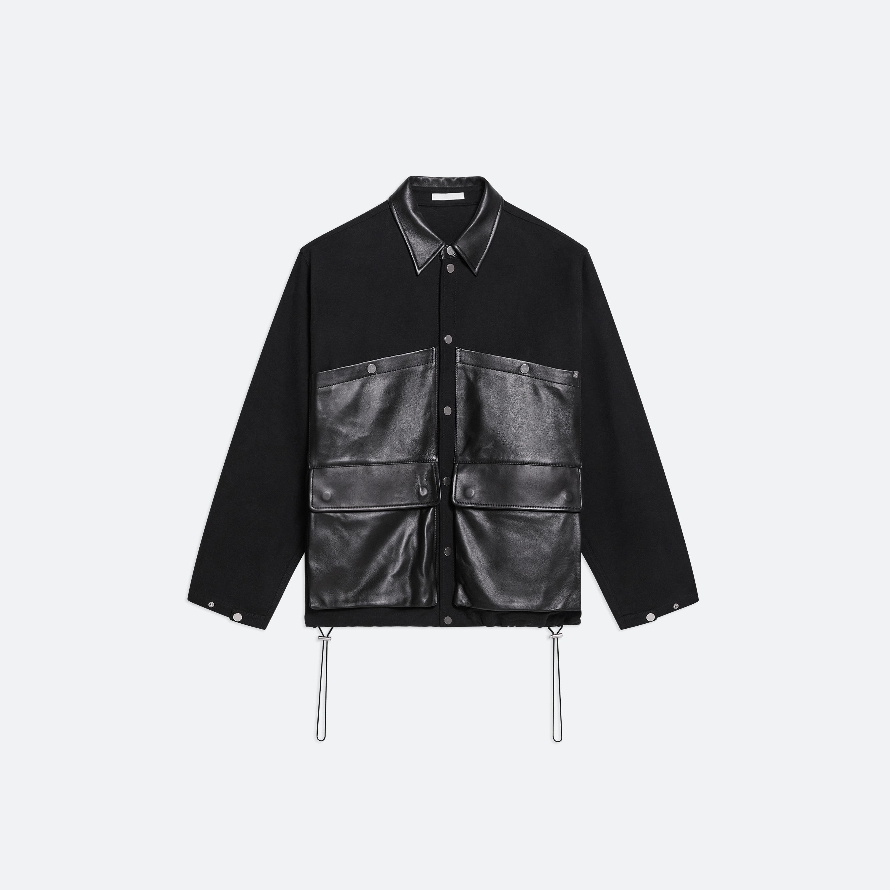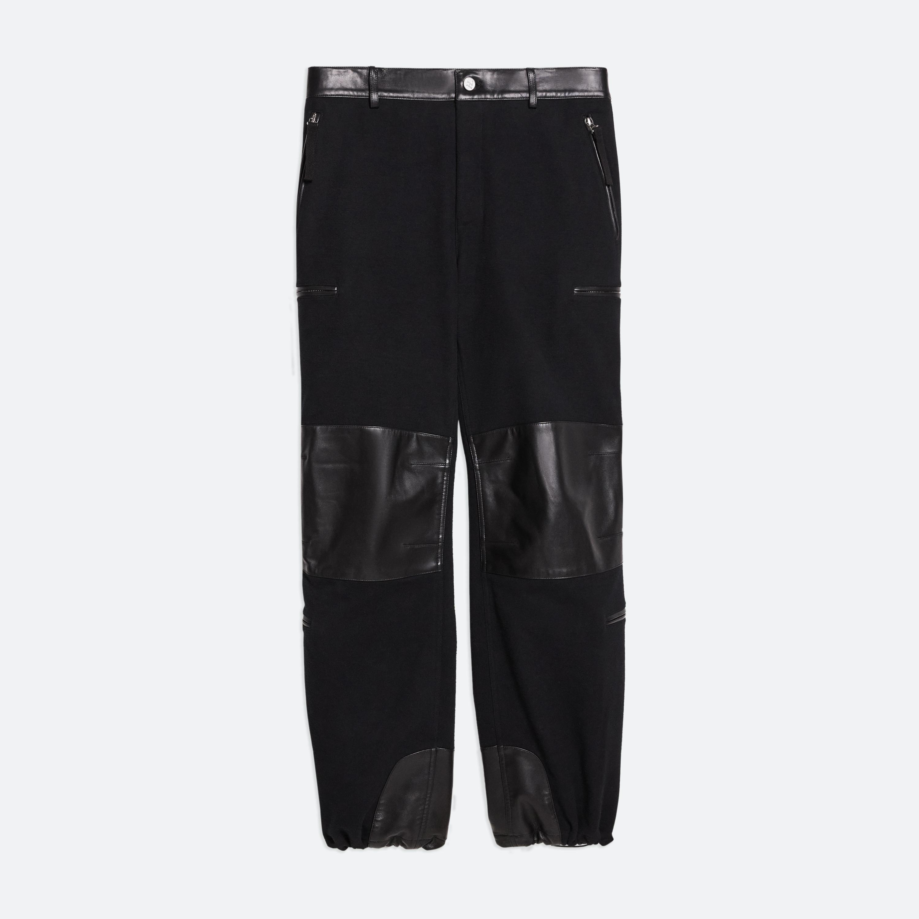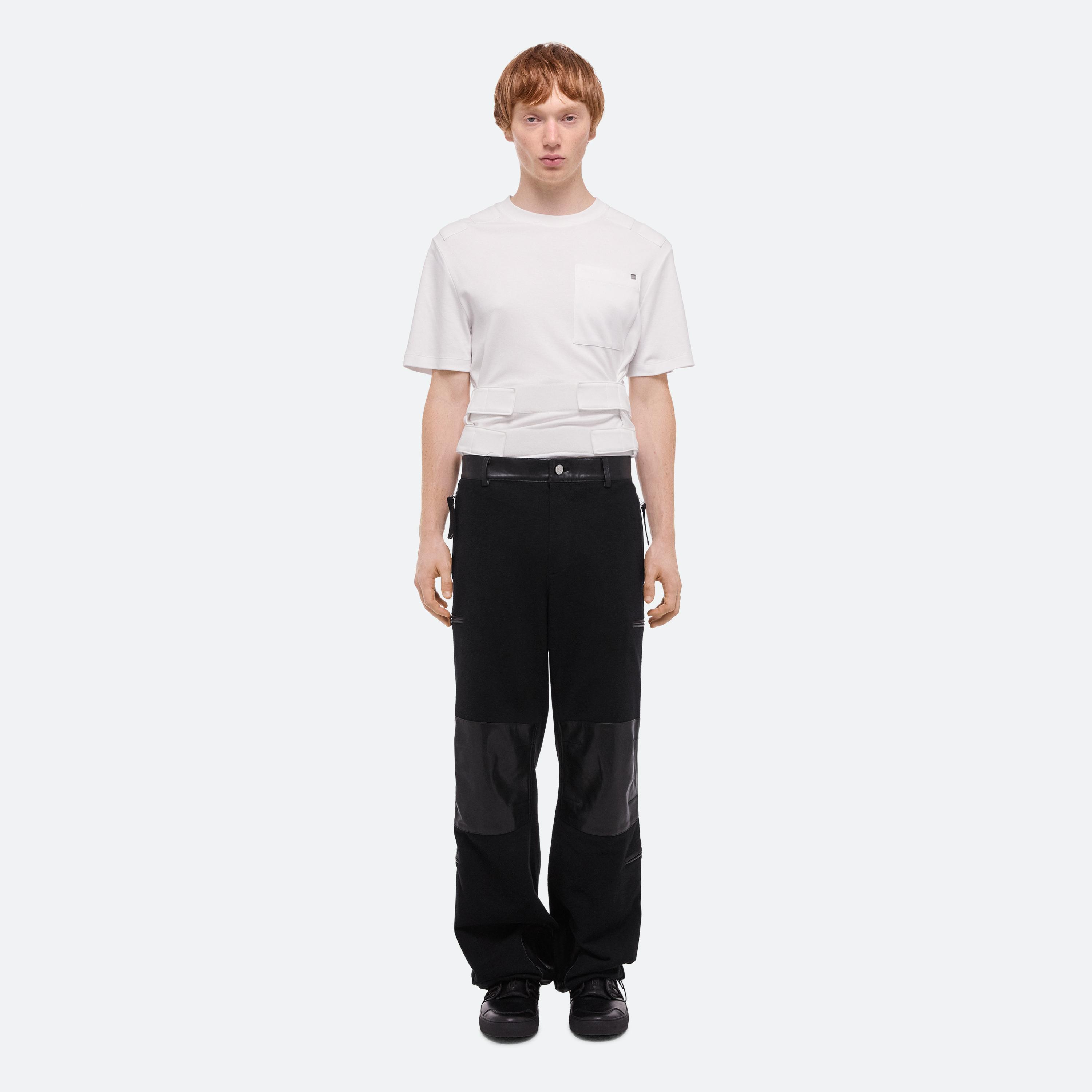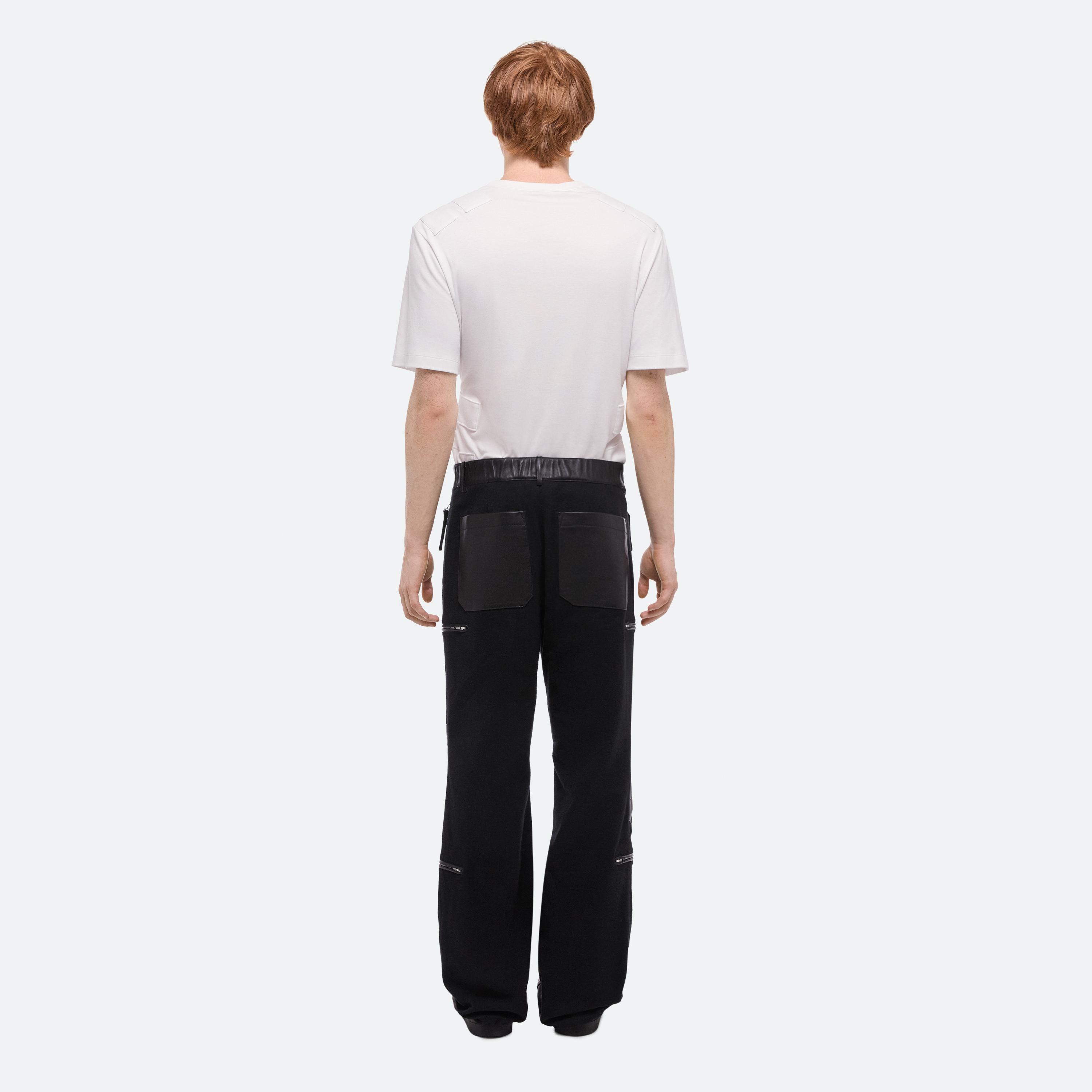 Mid-rise trousers in brushed cotton chamois with leather accents. Inspired by the tactical details of aviation flight suits, with articulated knees and zip pockets throughout. Cinch the bungee cords at the ankle for a parachute fit. Matches the Hunting Jacket.