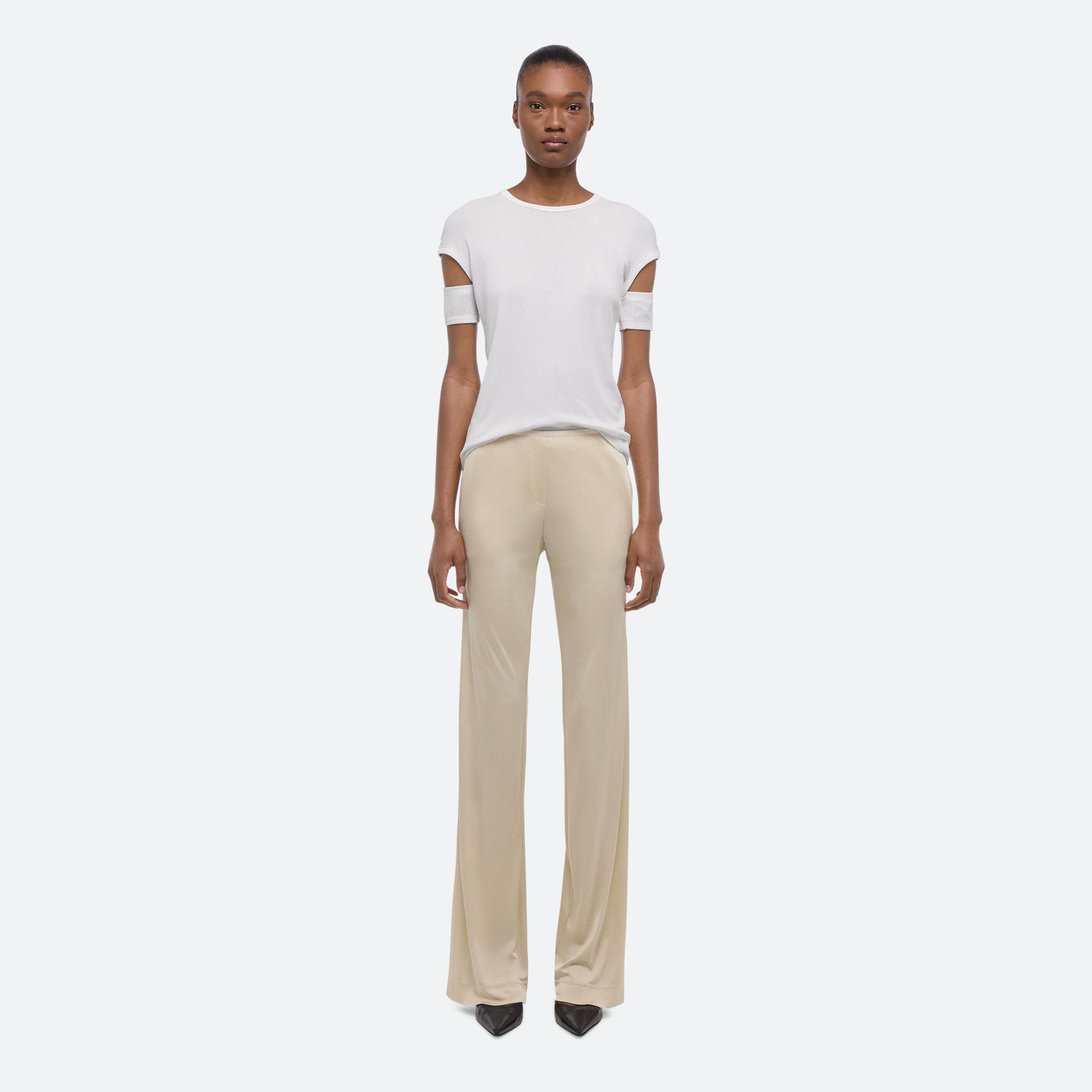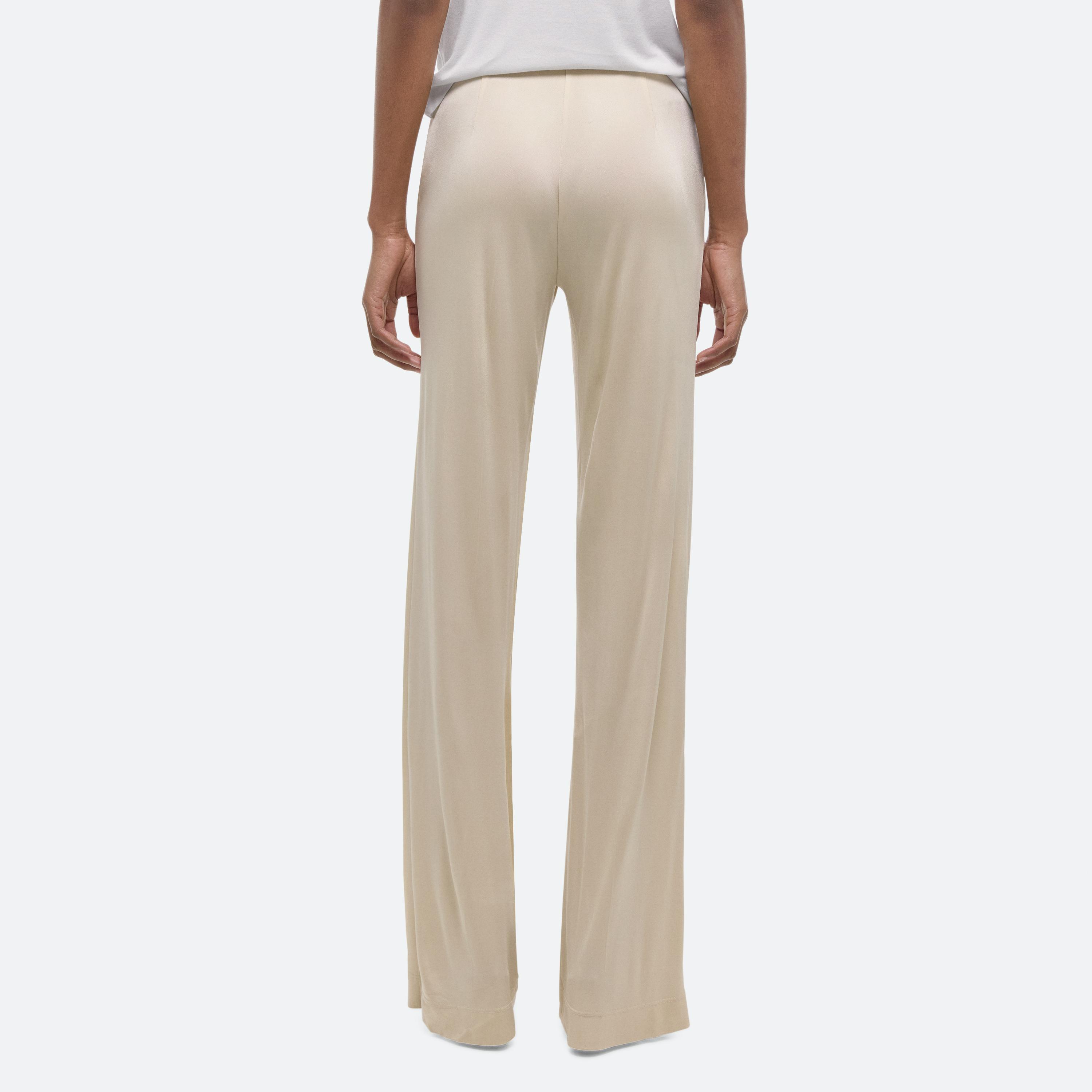 Straight-leg trouser in a fluid Italian viscose jersey. Cut with a relaxed fit and finished with a hidden elastic waistband. Matches the Fluid Slim Shirt.