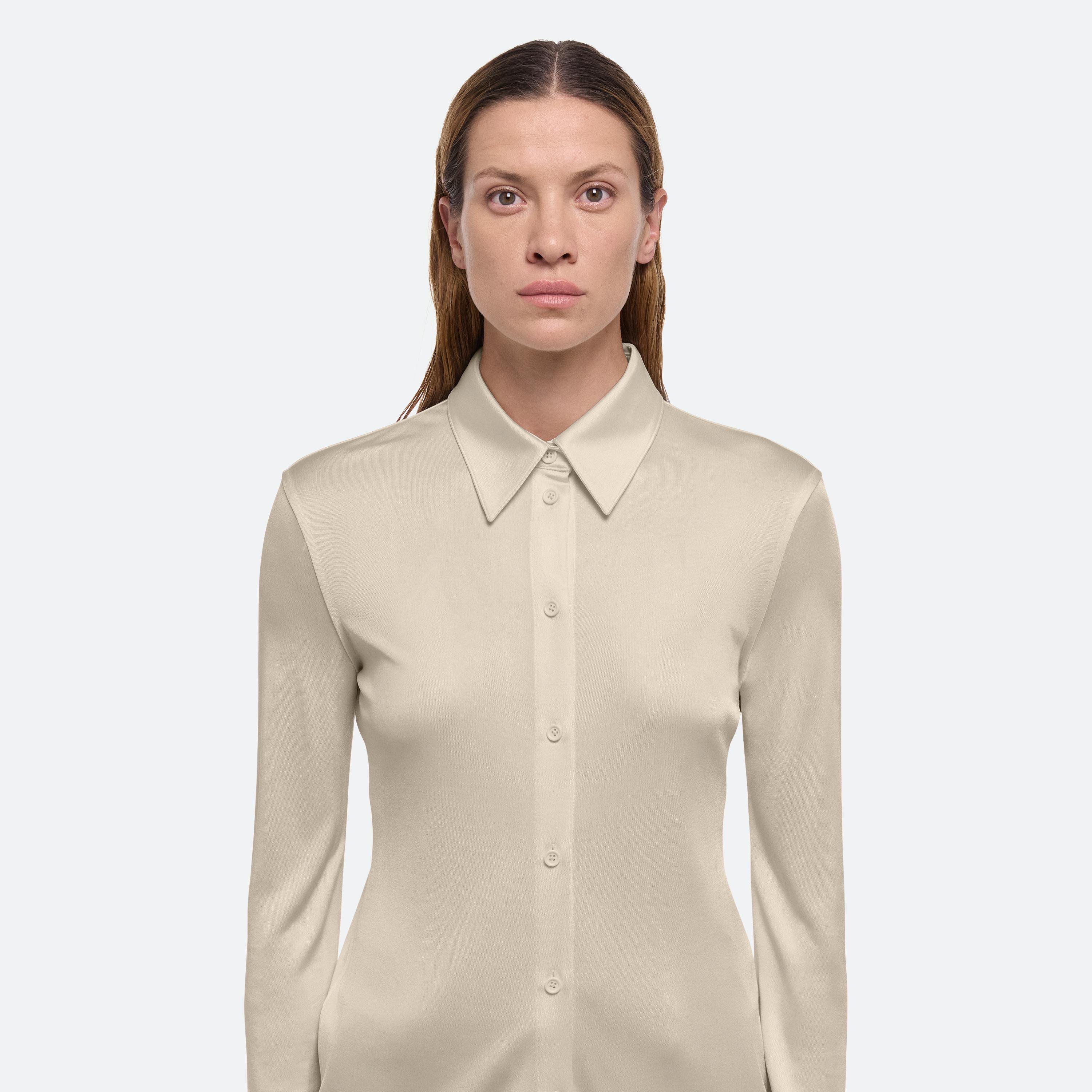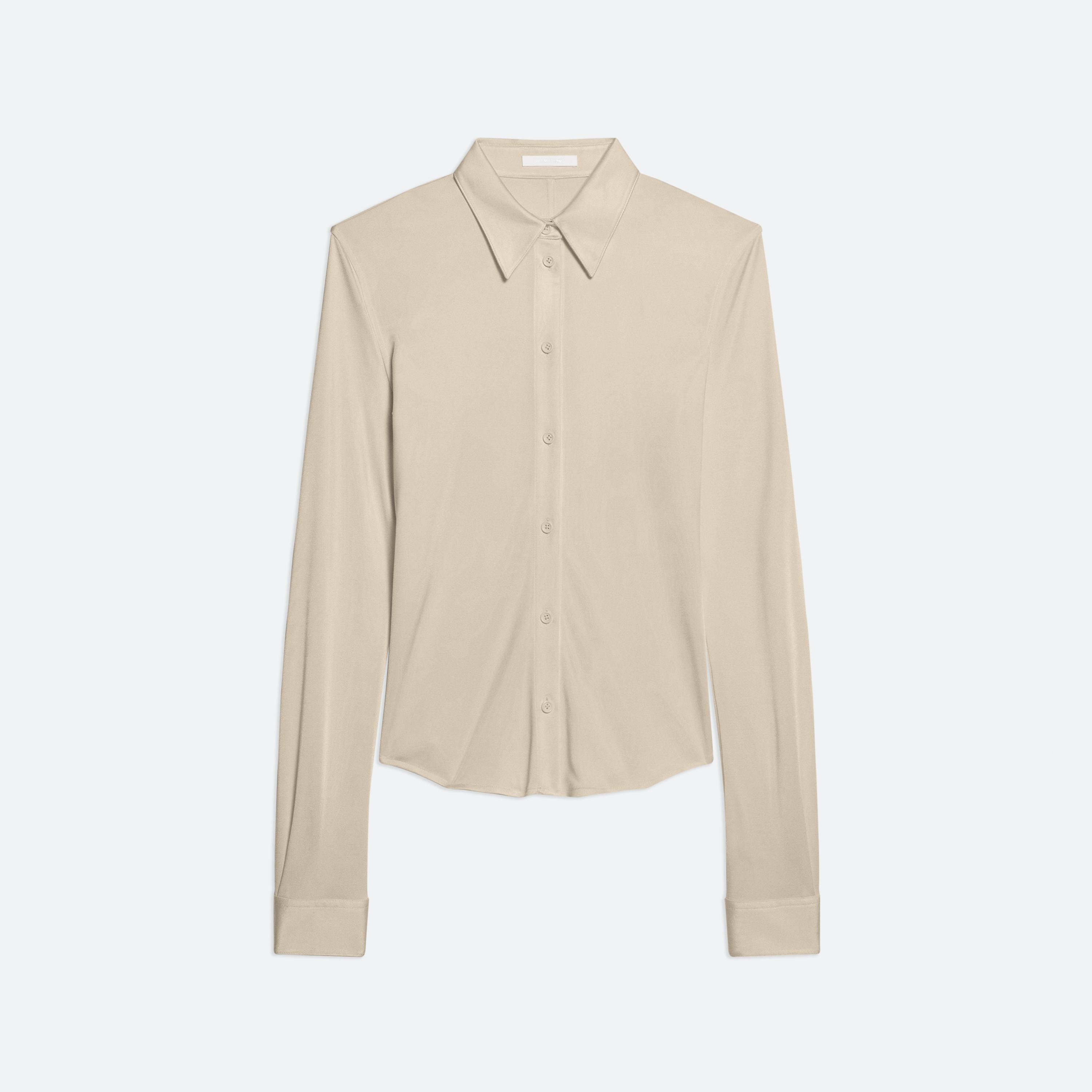 Classic slim fit shirt in fluid Italian viscose jersey. Matches the Fluid Car Trouser.