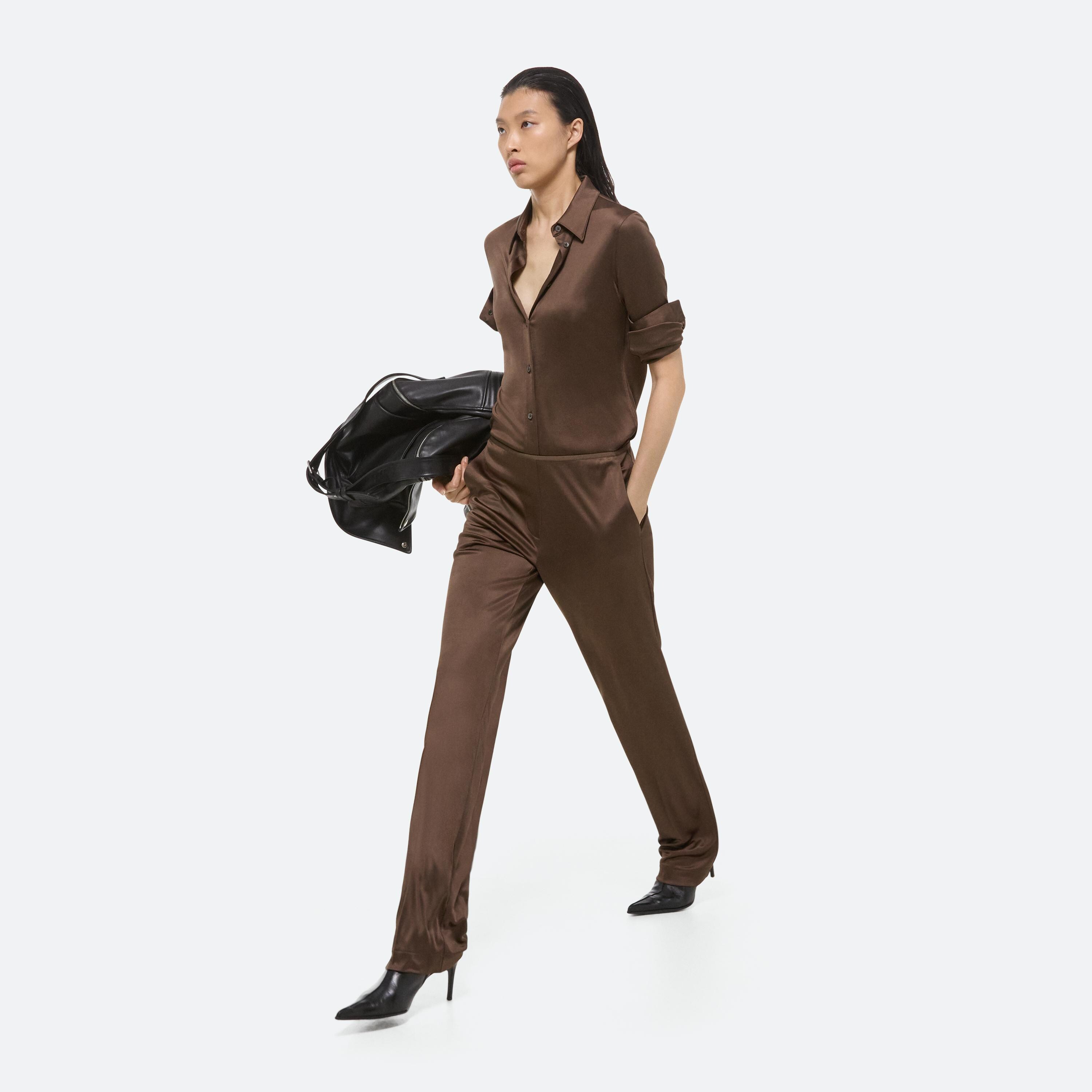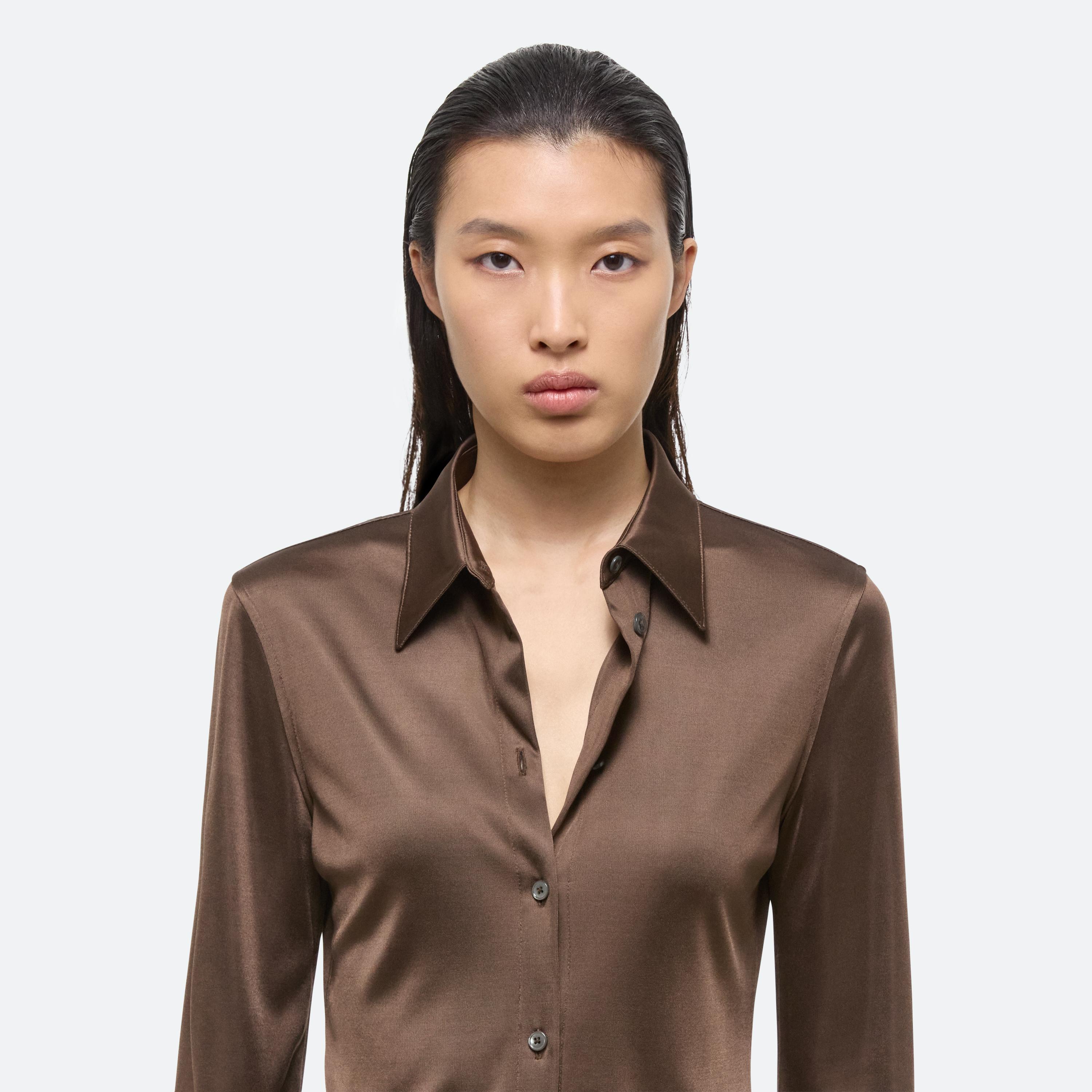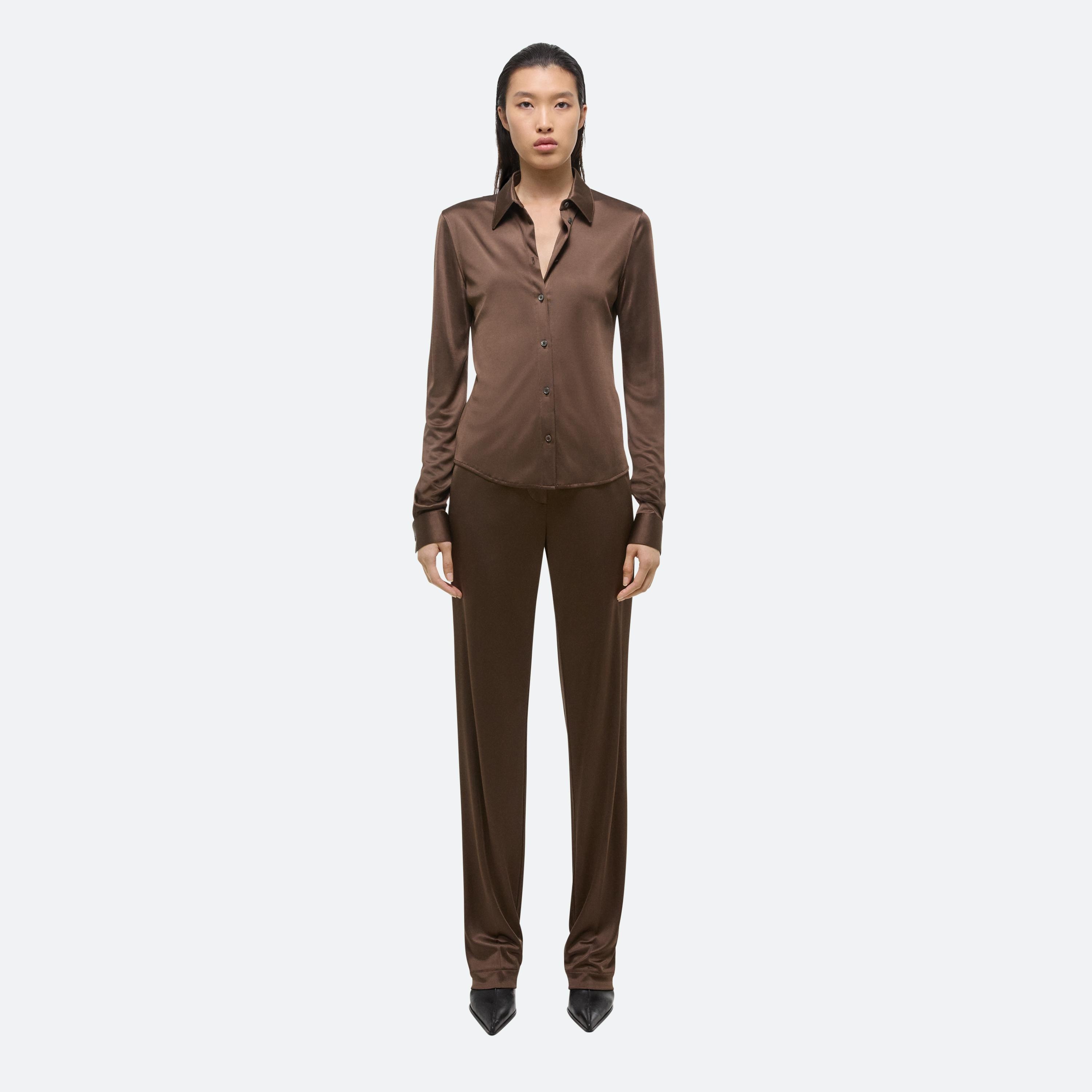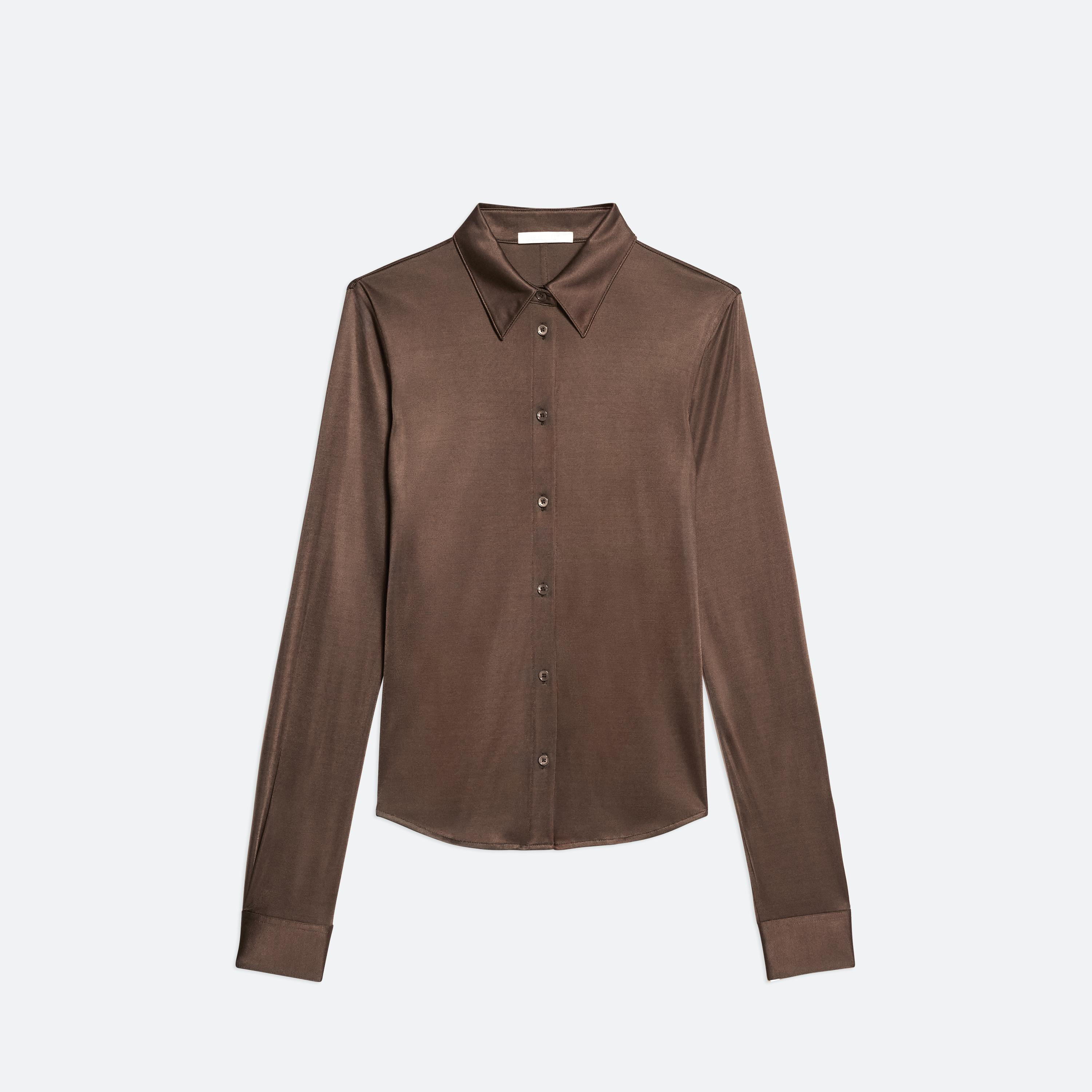 Classic slim fit shirt in fluid Italian viscose jersey. Matches the Fluid Car Trouser.