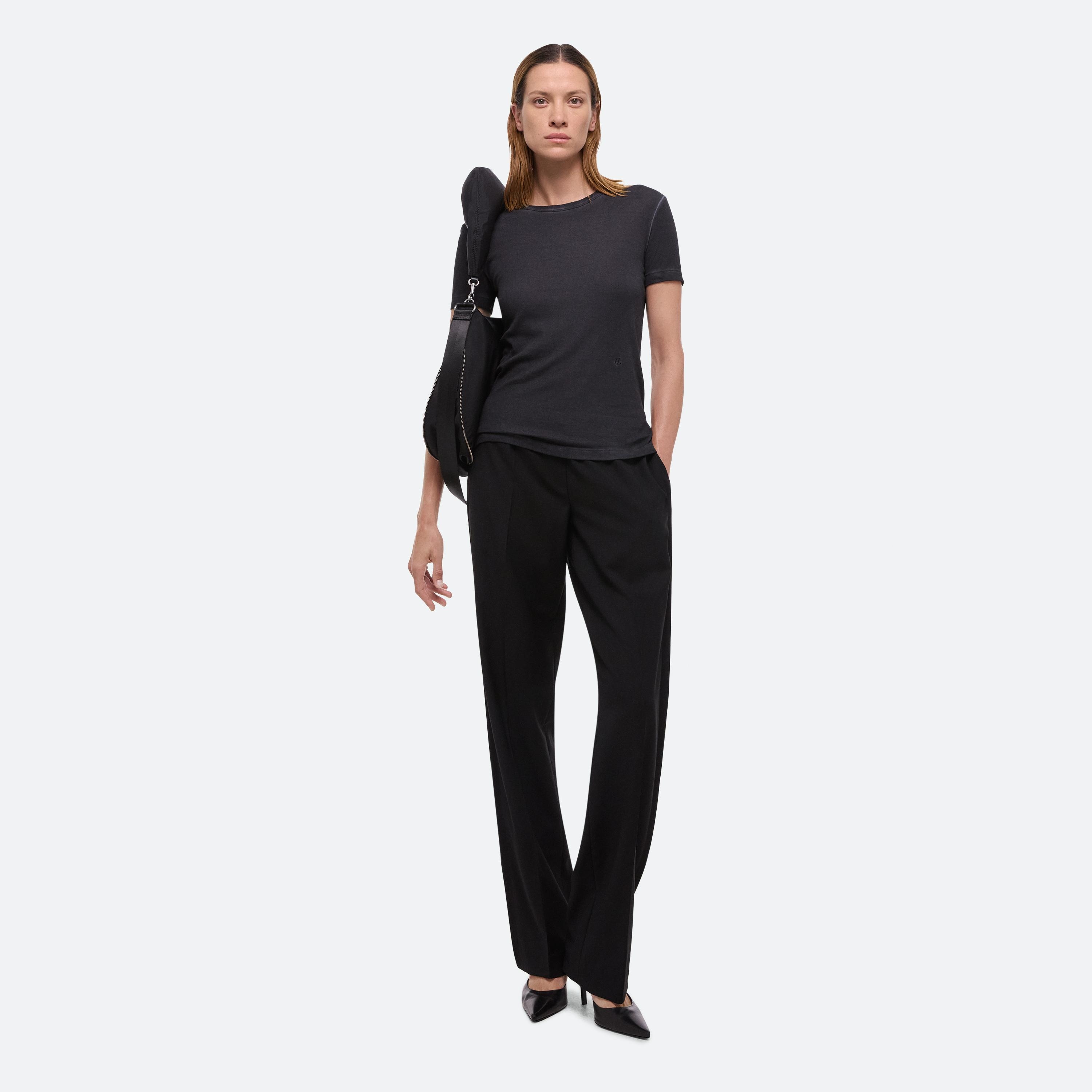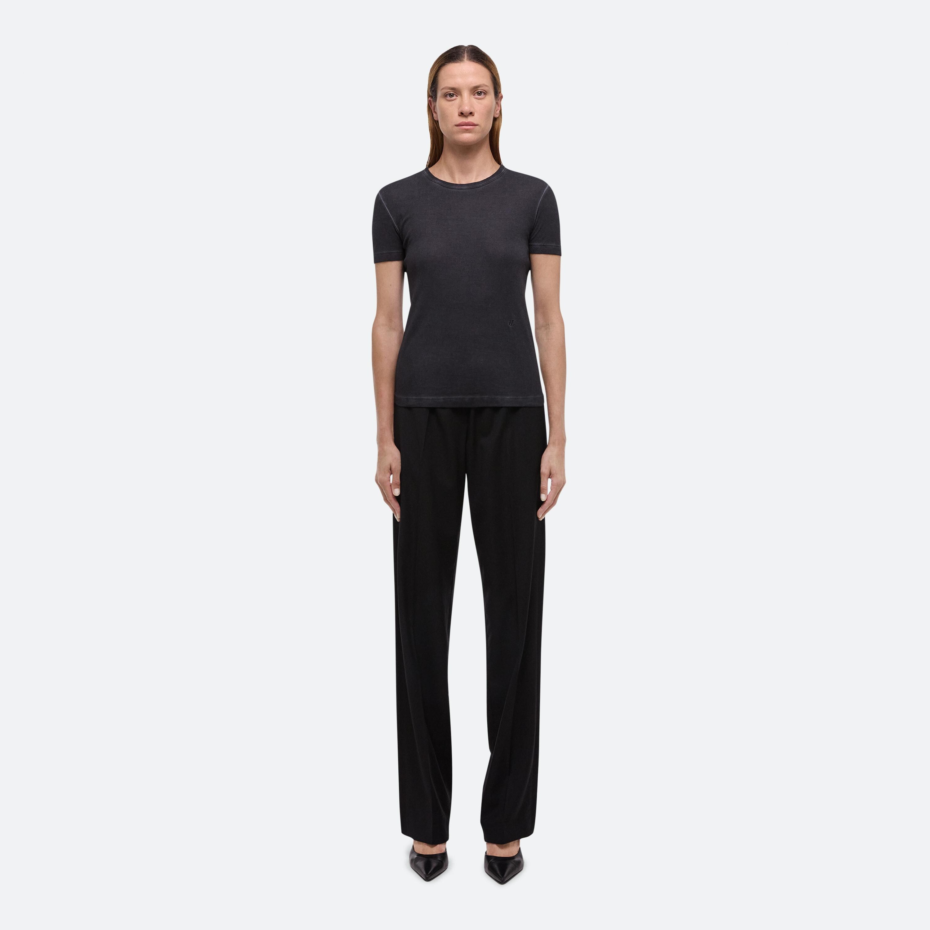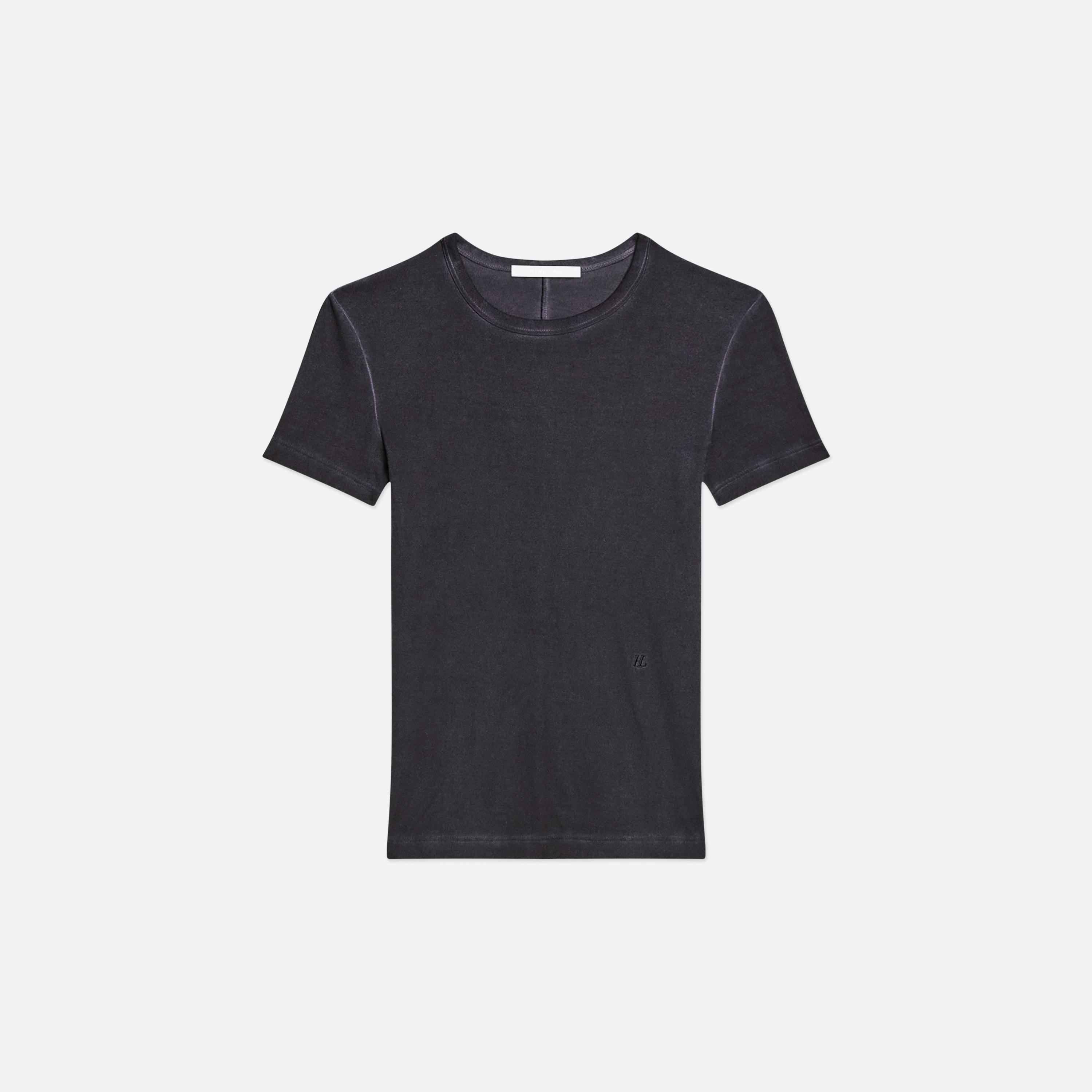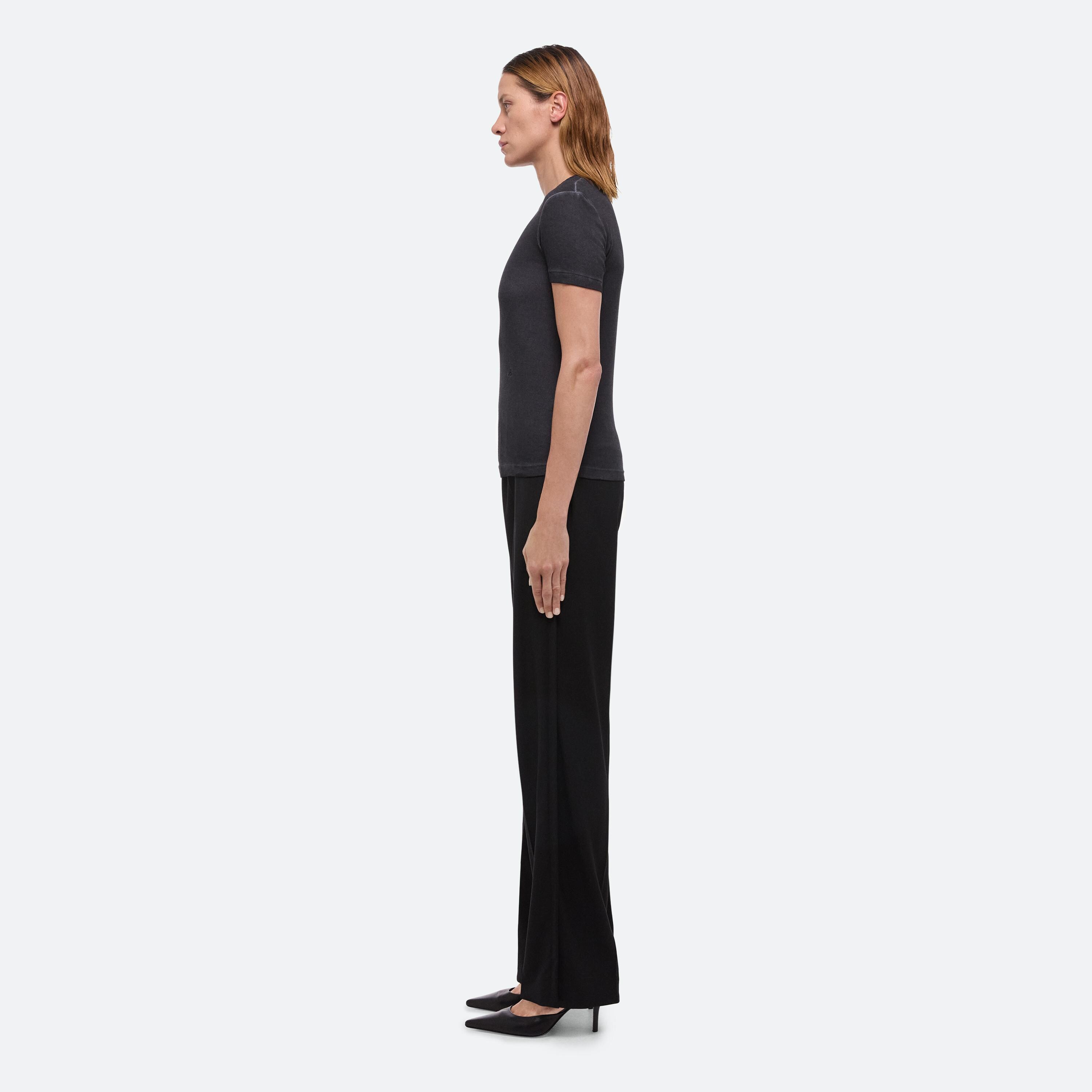 Slim-fit crewneck tee in ultra-soft cotton modal rib. A garment dyeing process gives each piece a unique wash with vintage depth, highlighted by soft chalk-line distressing at the seams.
