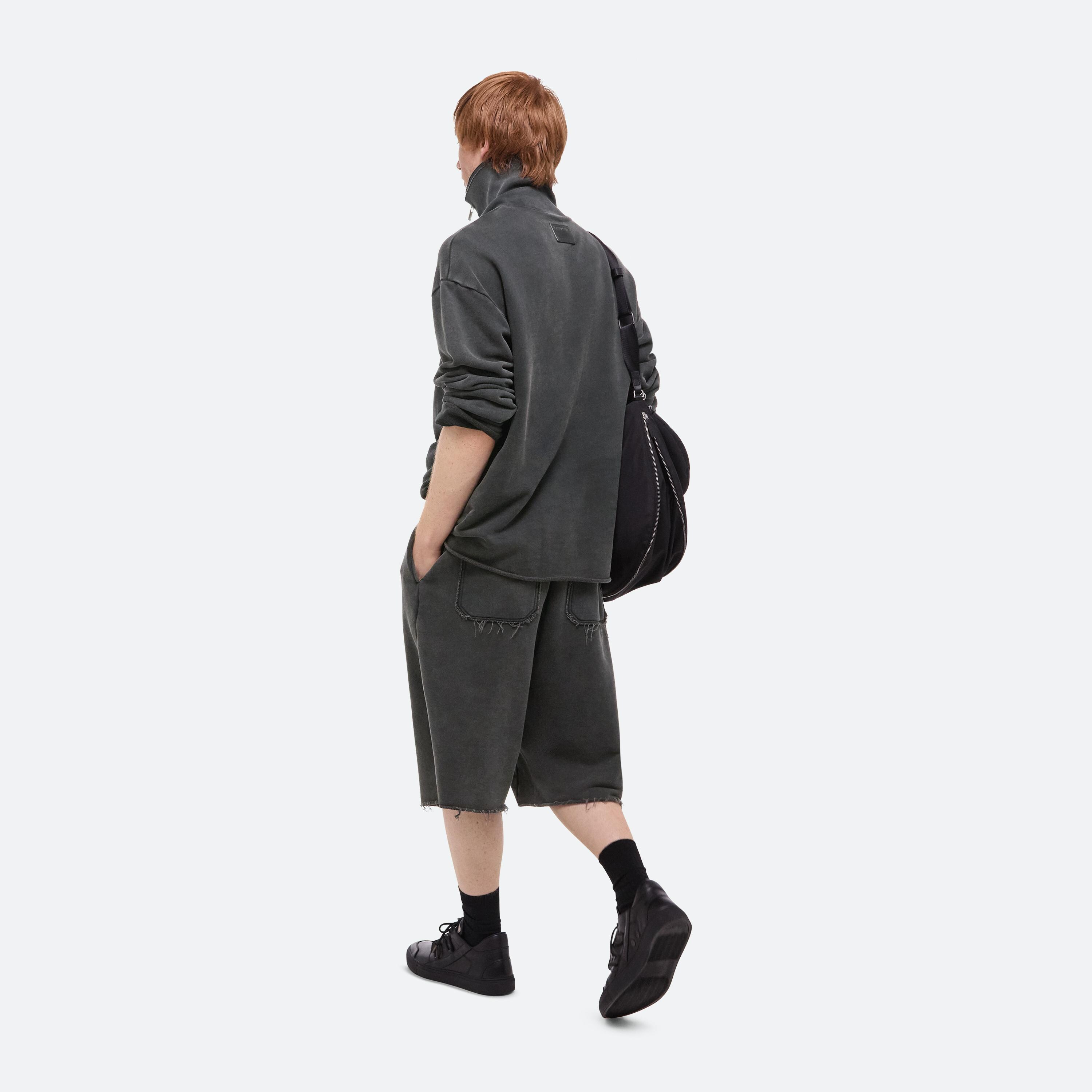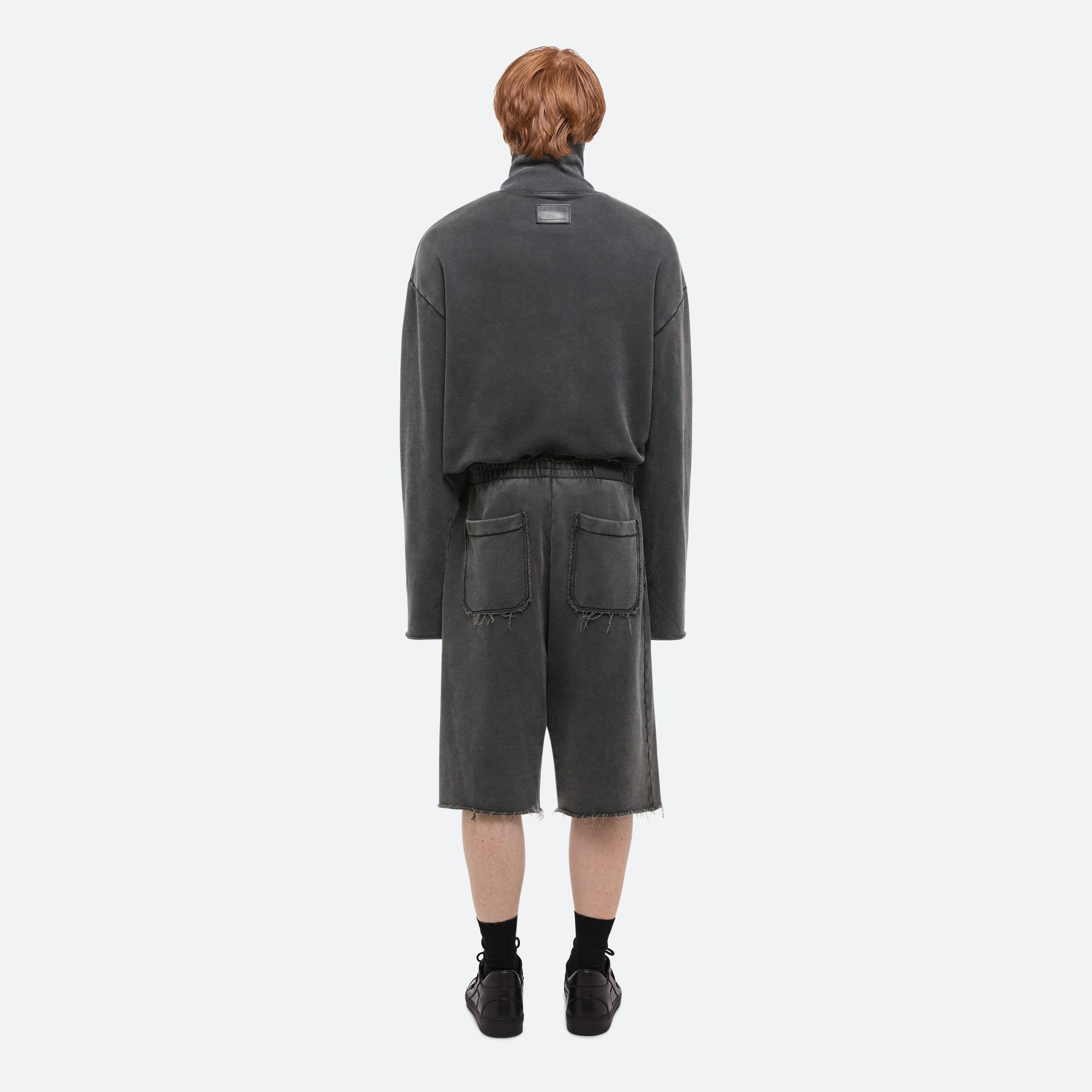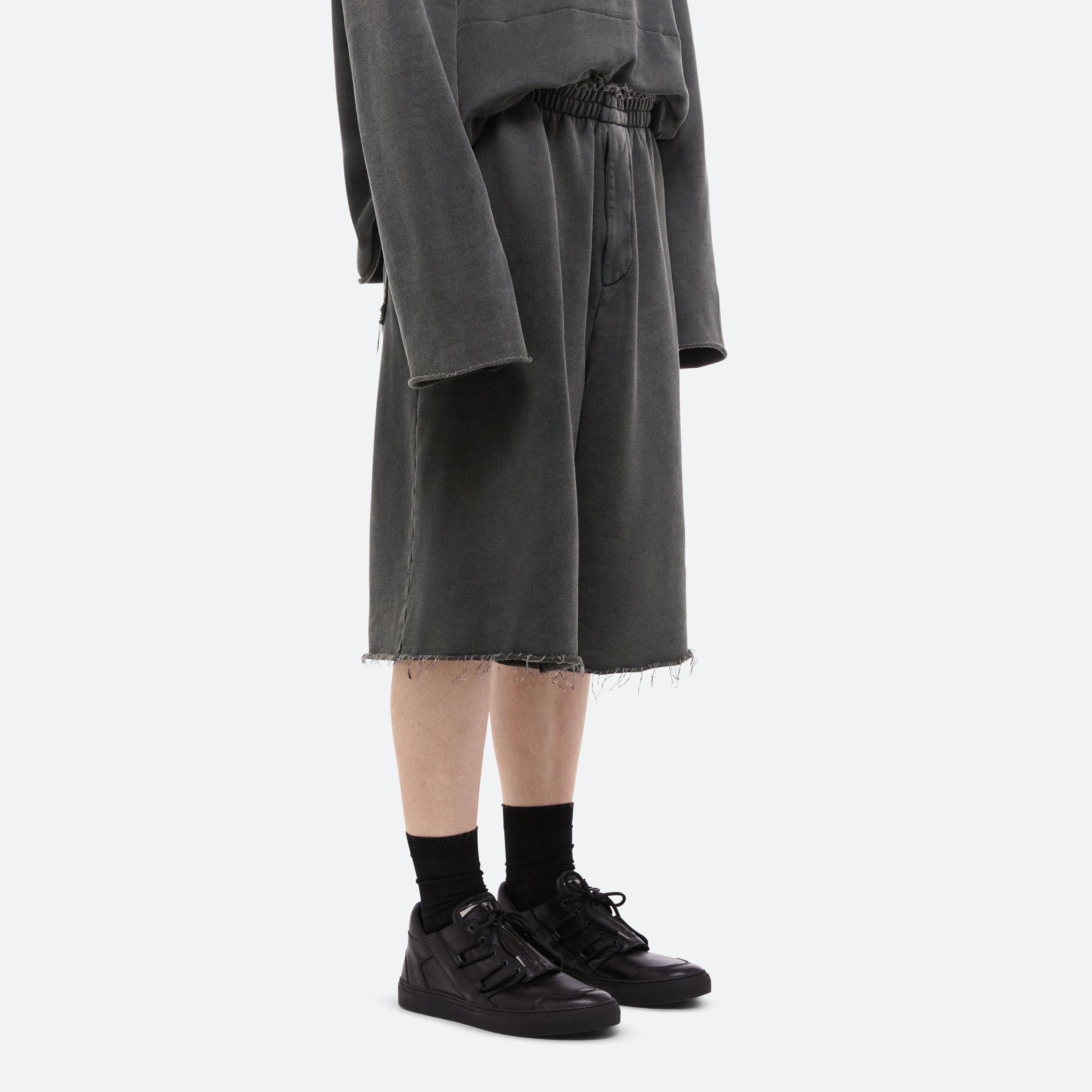 Cotton terry shorts with raw hem. Finished with a garment dye process for a unique wash with vintage depth.