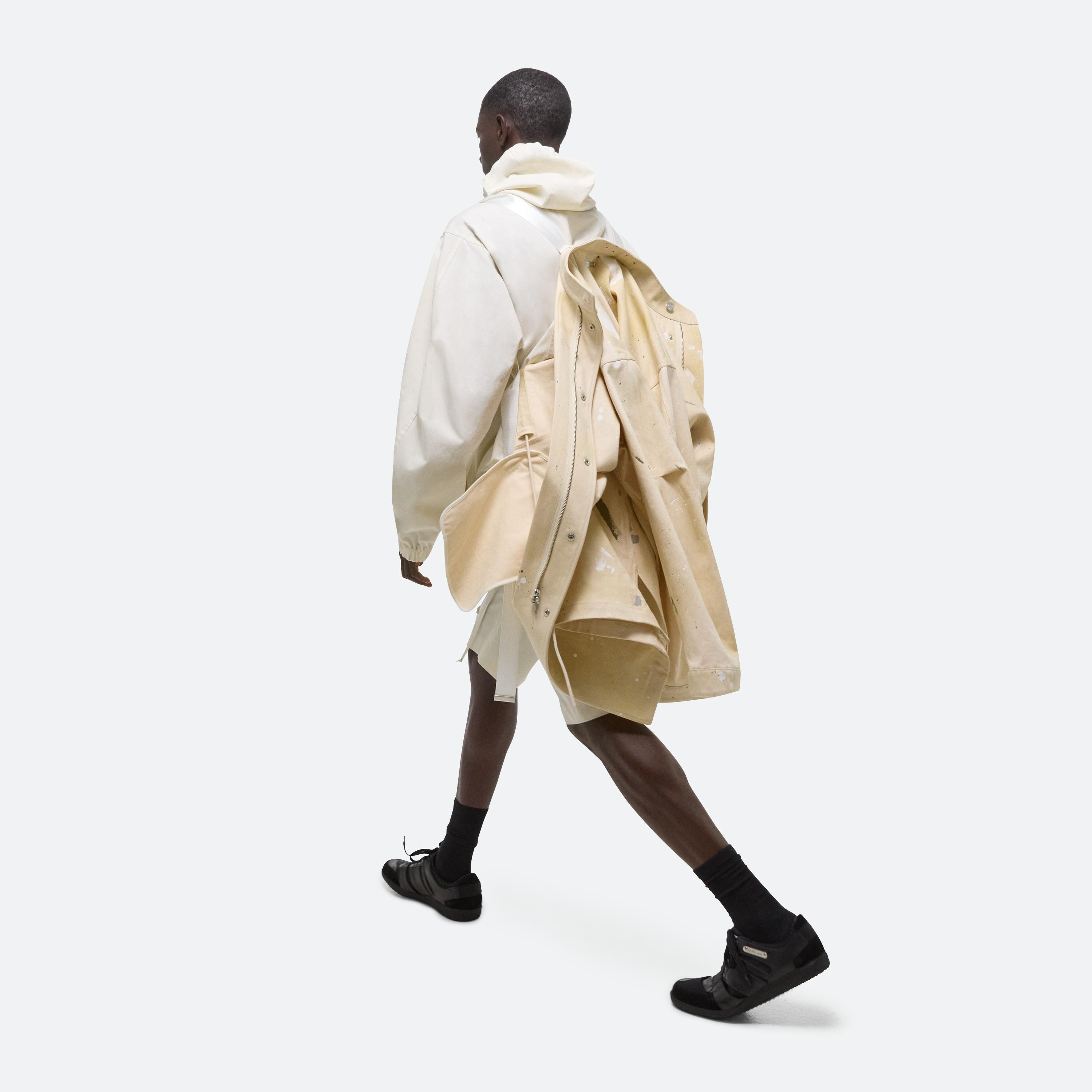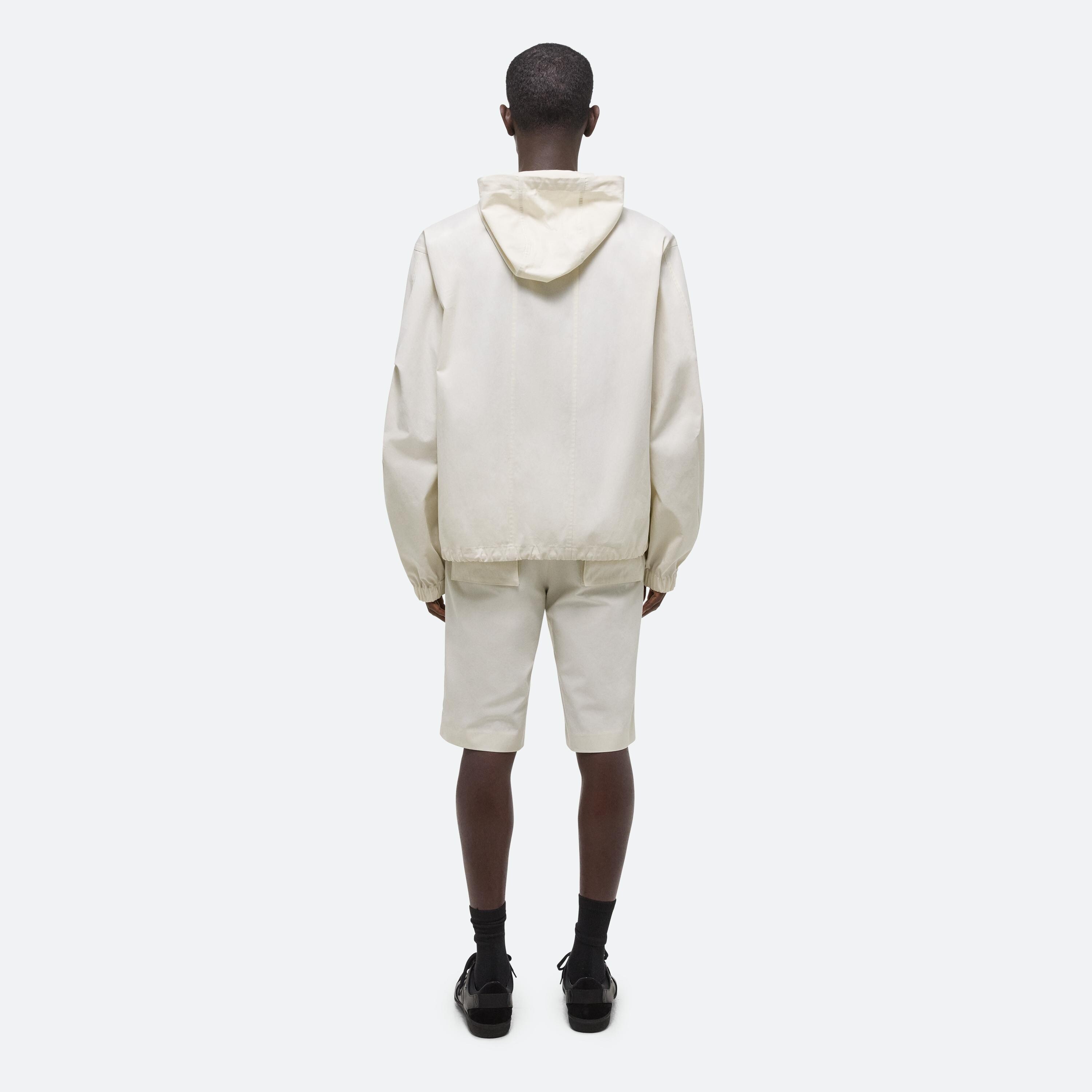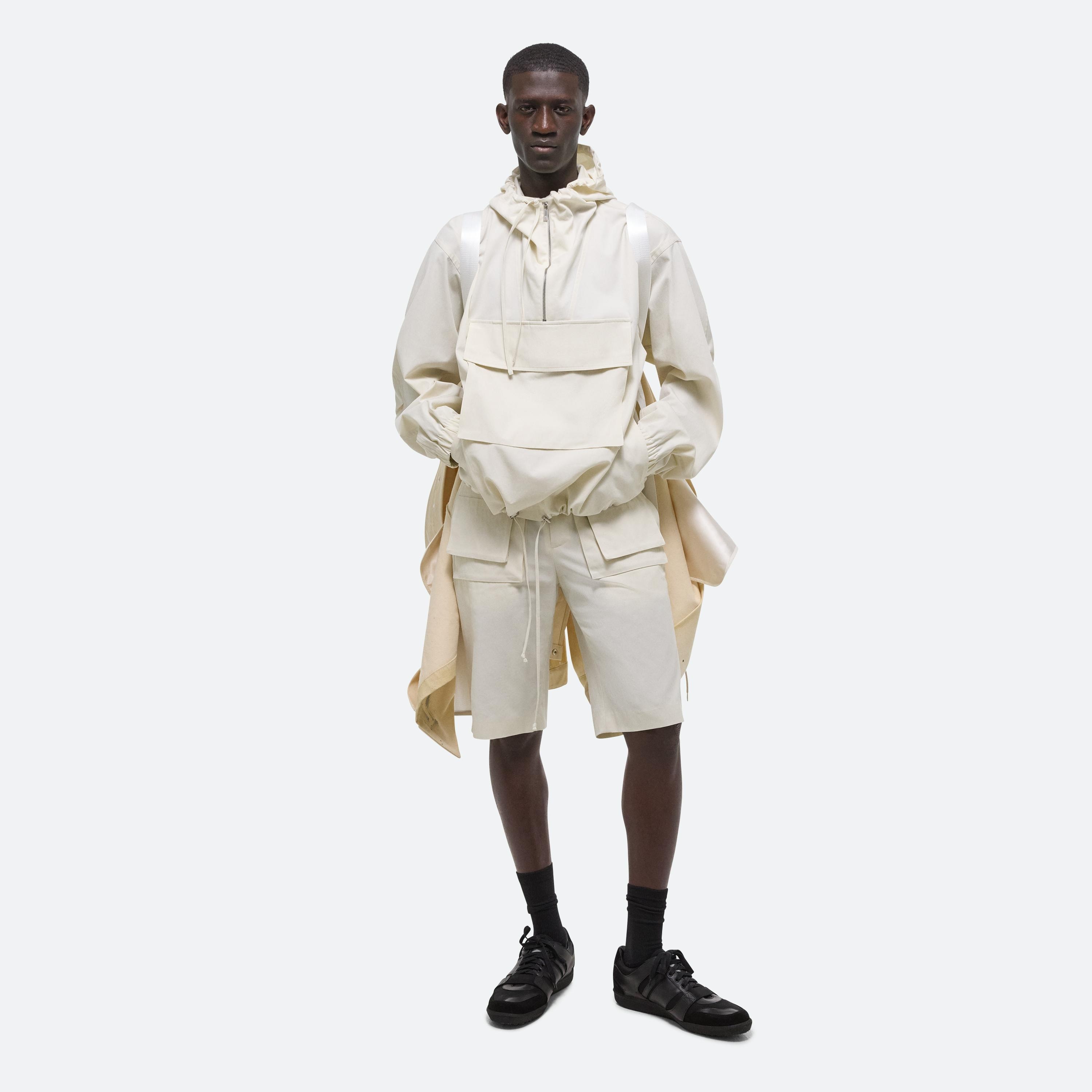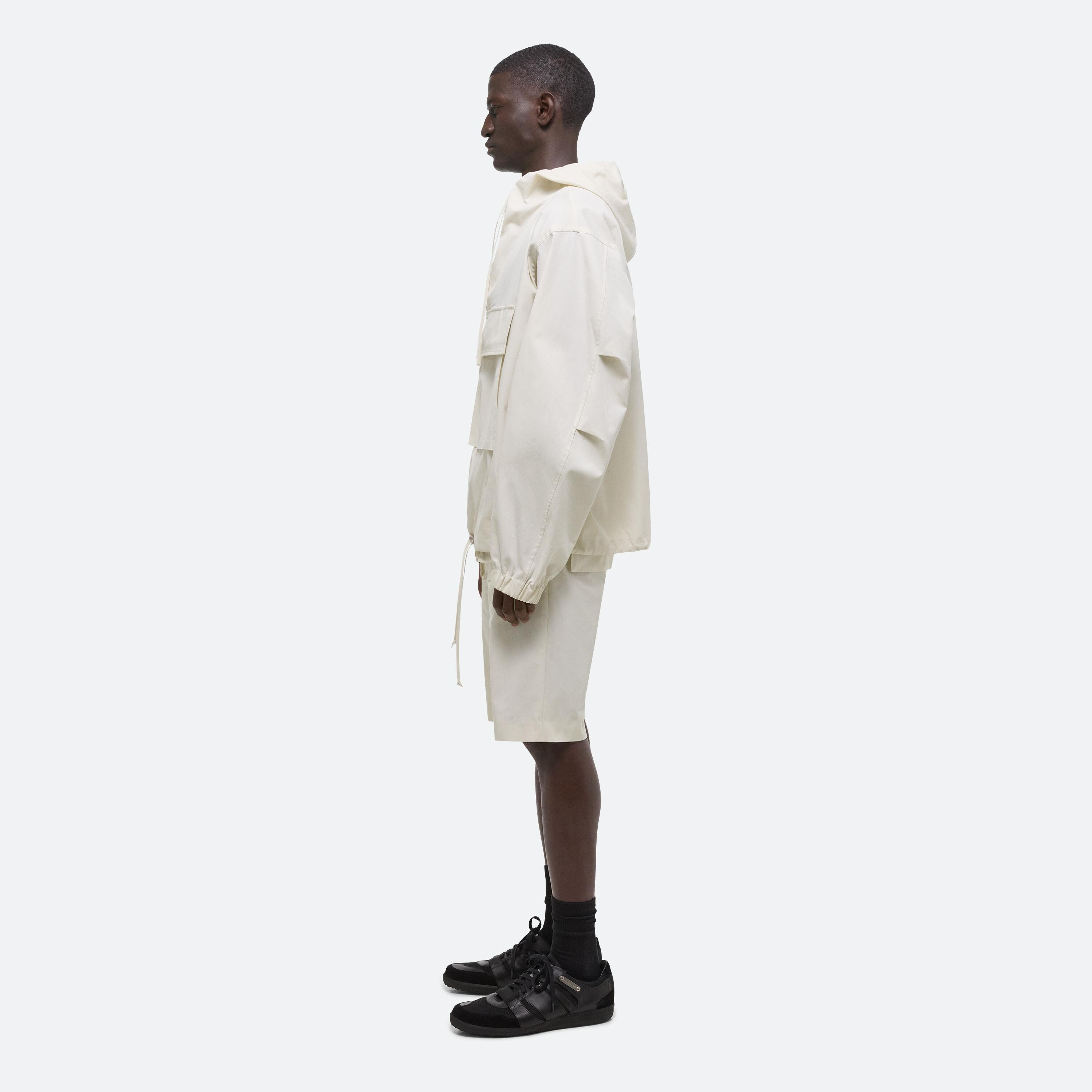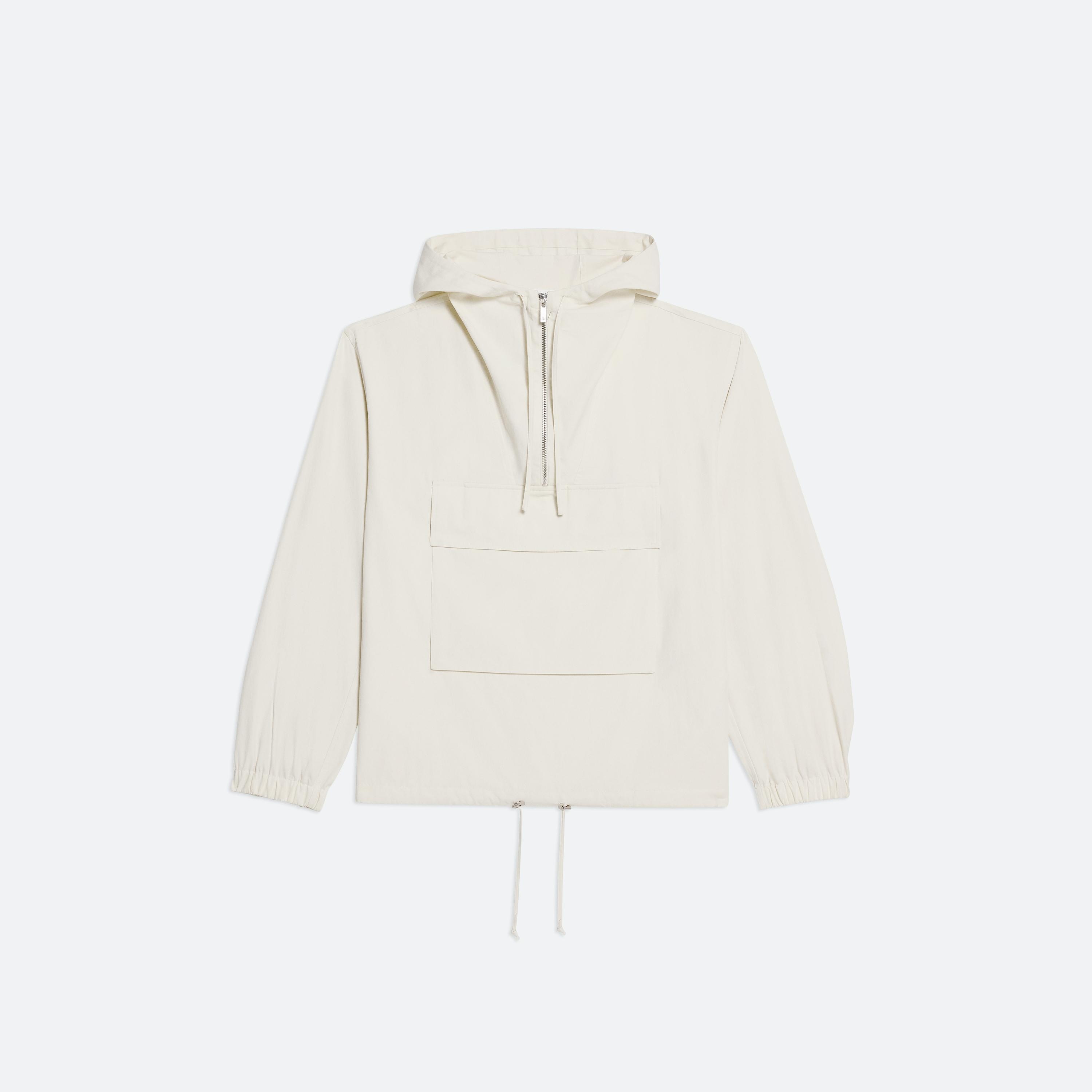 Lightweight hooded pullover. Designed with functioncal details pulled from tactical anoraks, like an adjustable gusset funnel neck half-zip, and a three-dimensional front pocket.