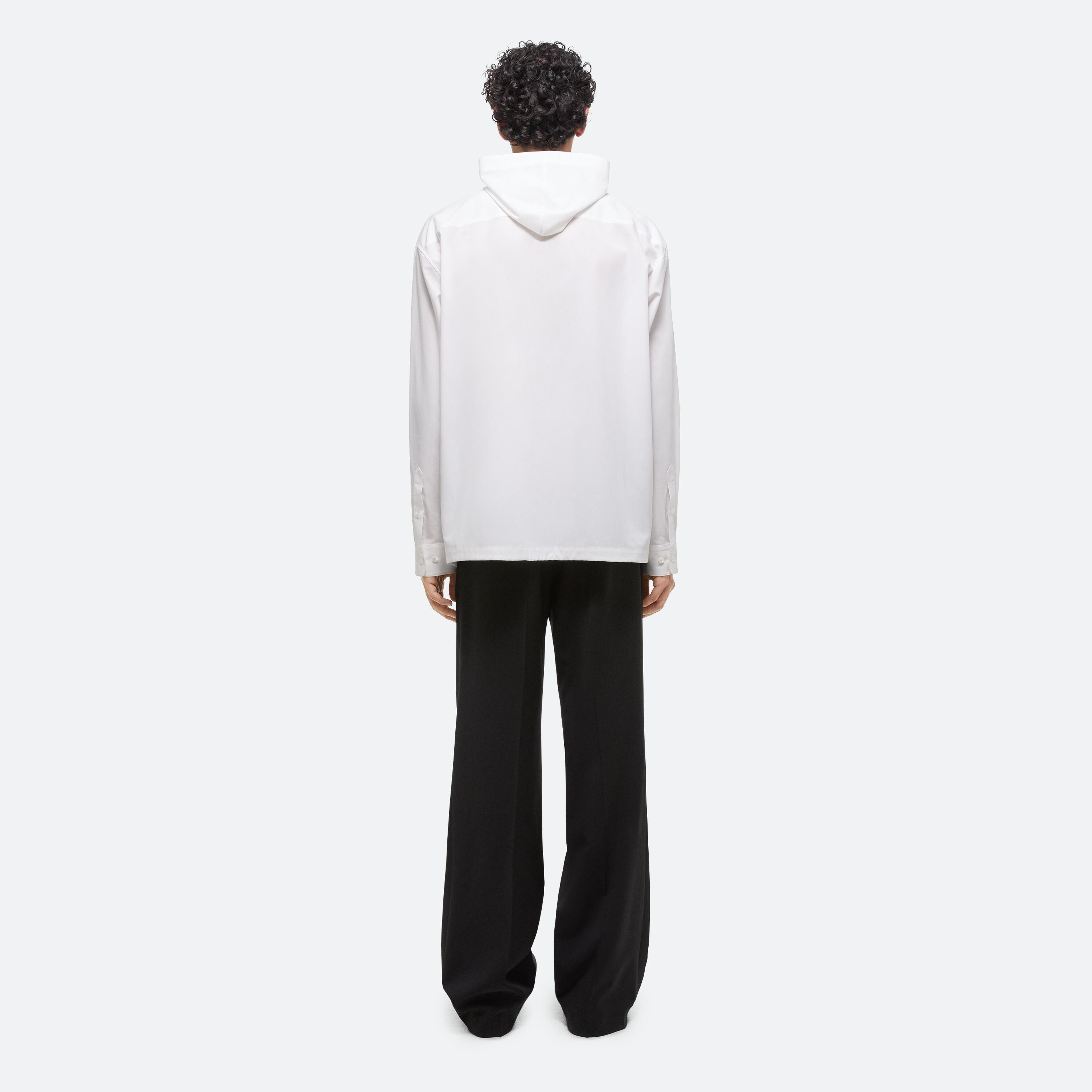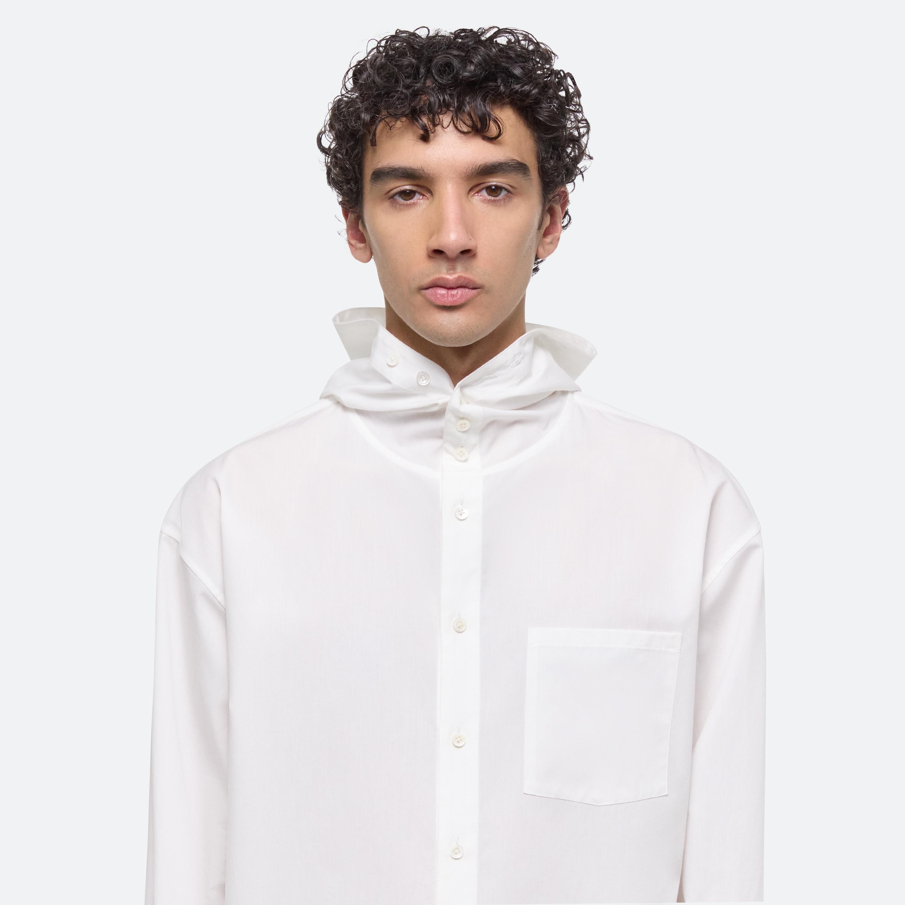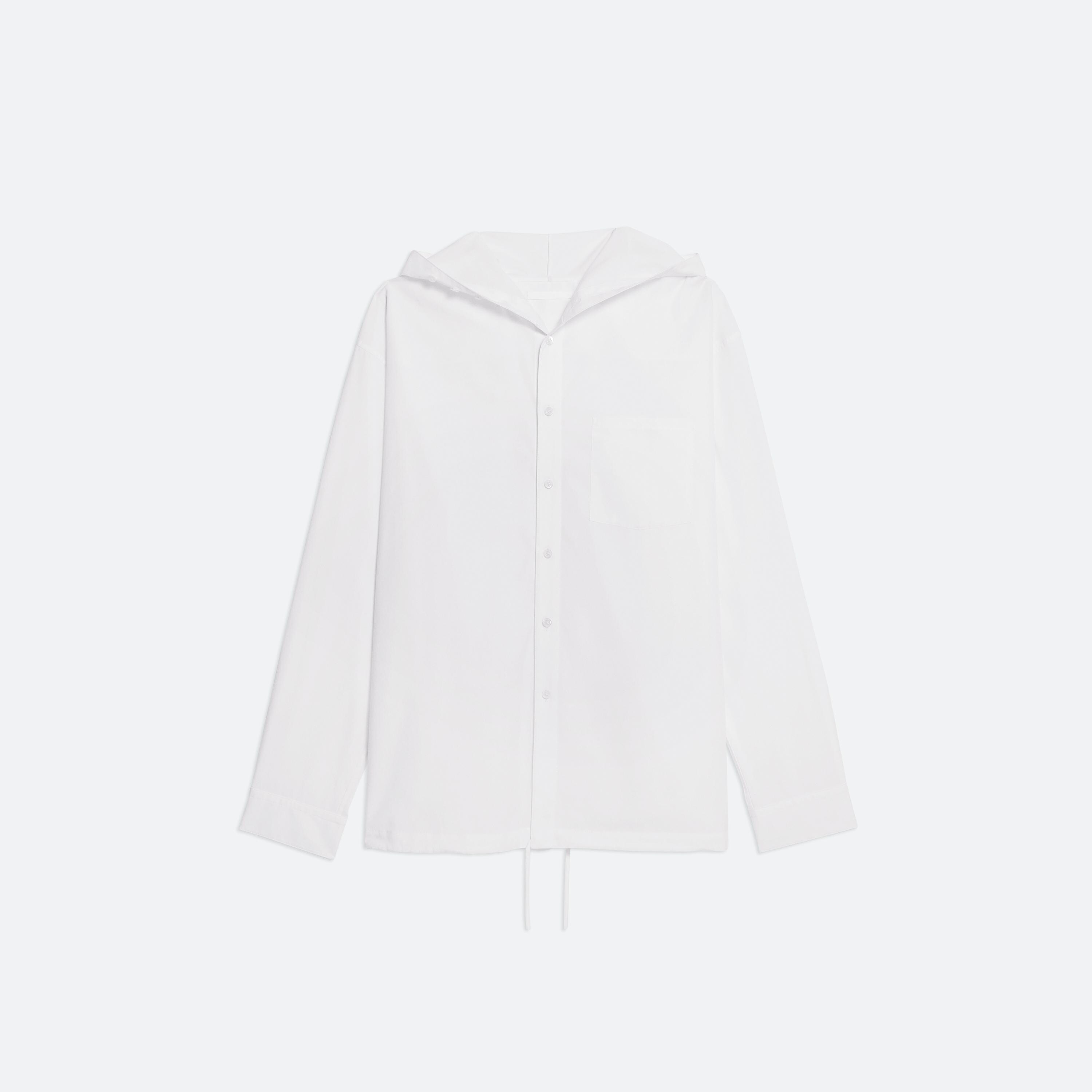 Oversized hooded shirt in ultra-soft Japanese cotton poplin. An infinite placket that extends along the hood and drawstraings at the hem create multiple styling options.