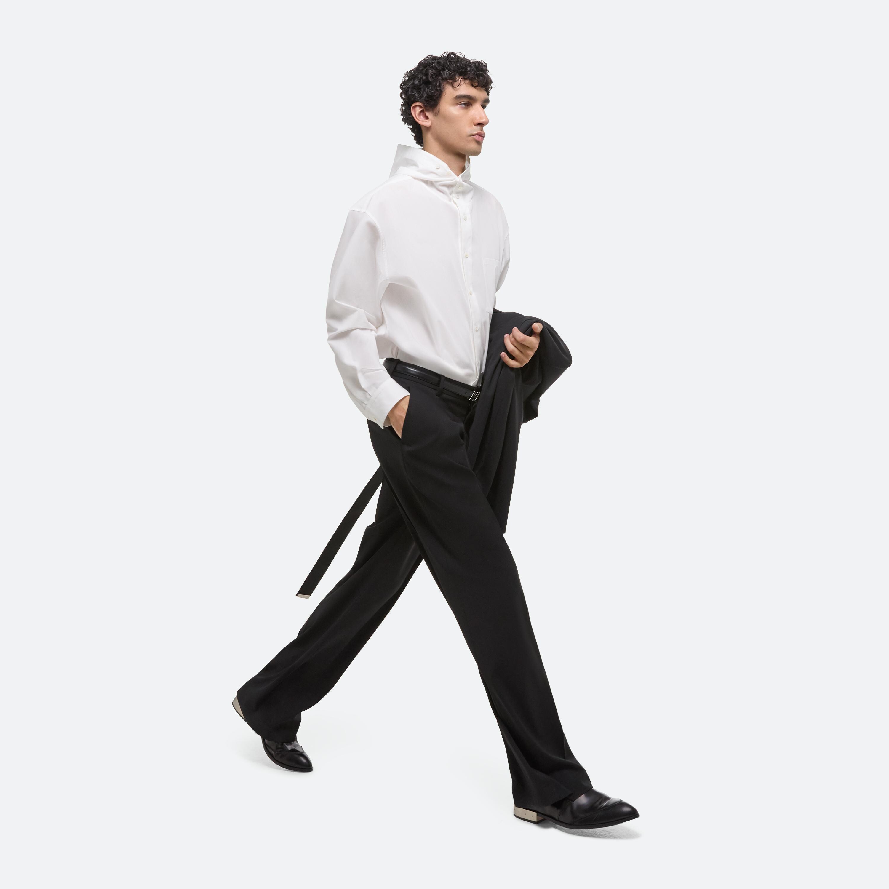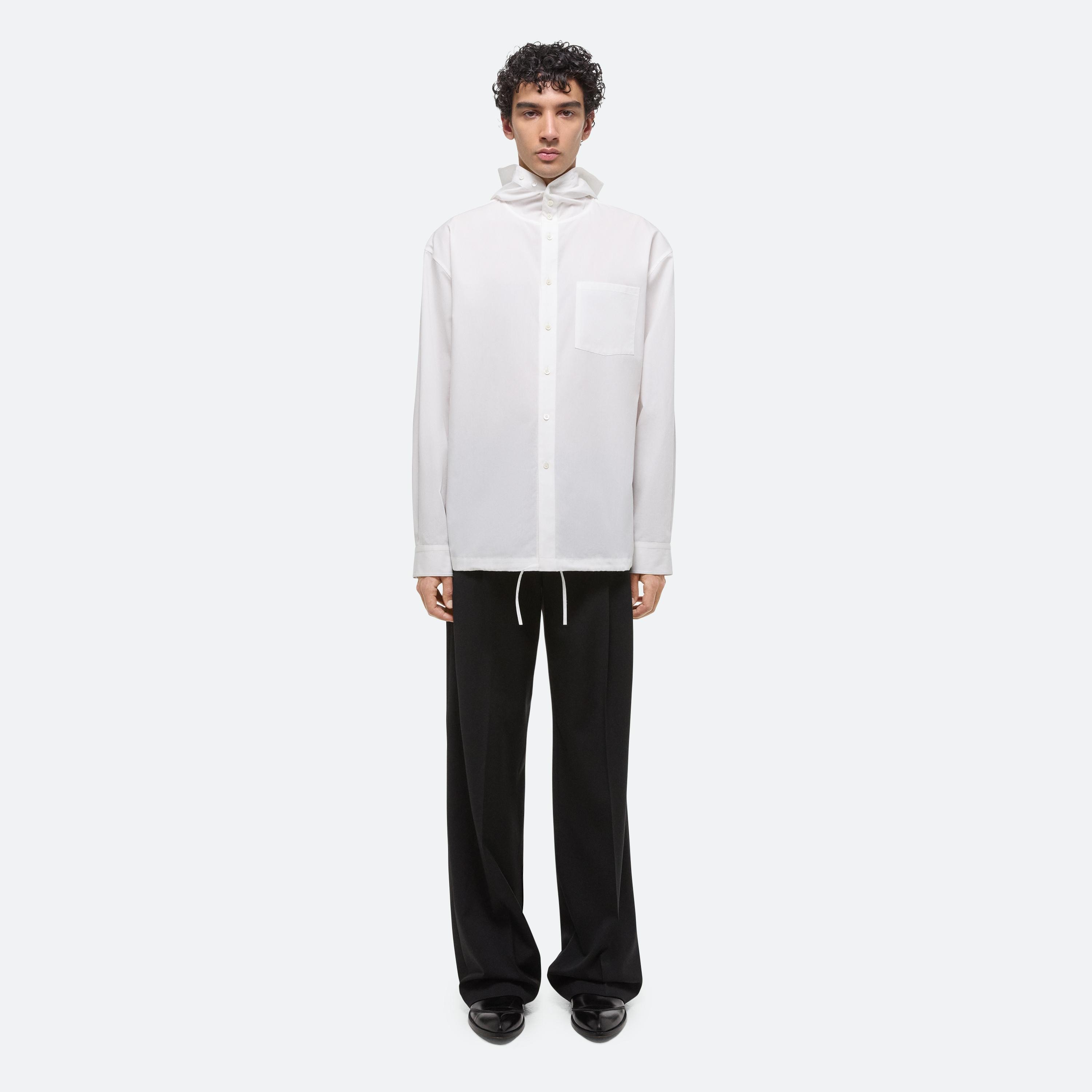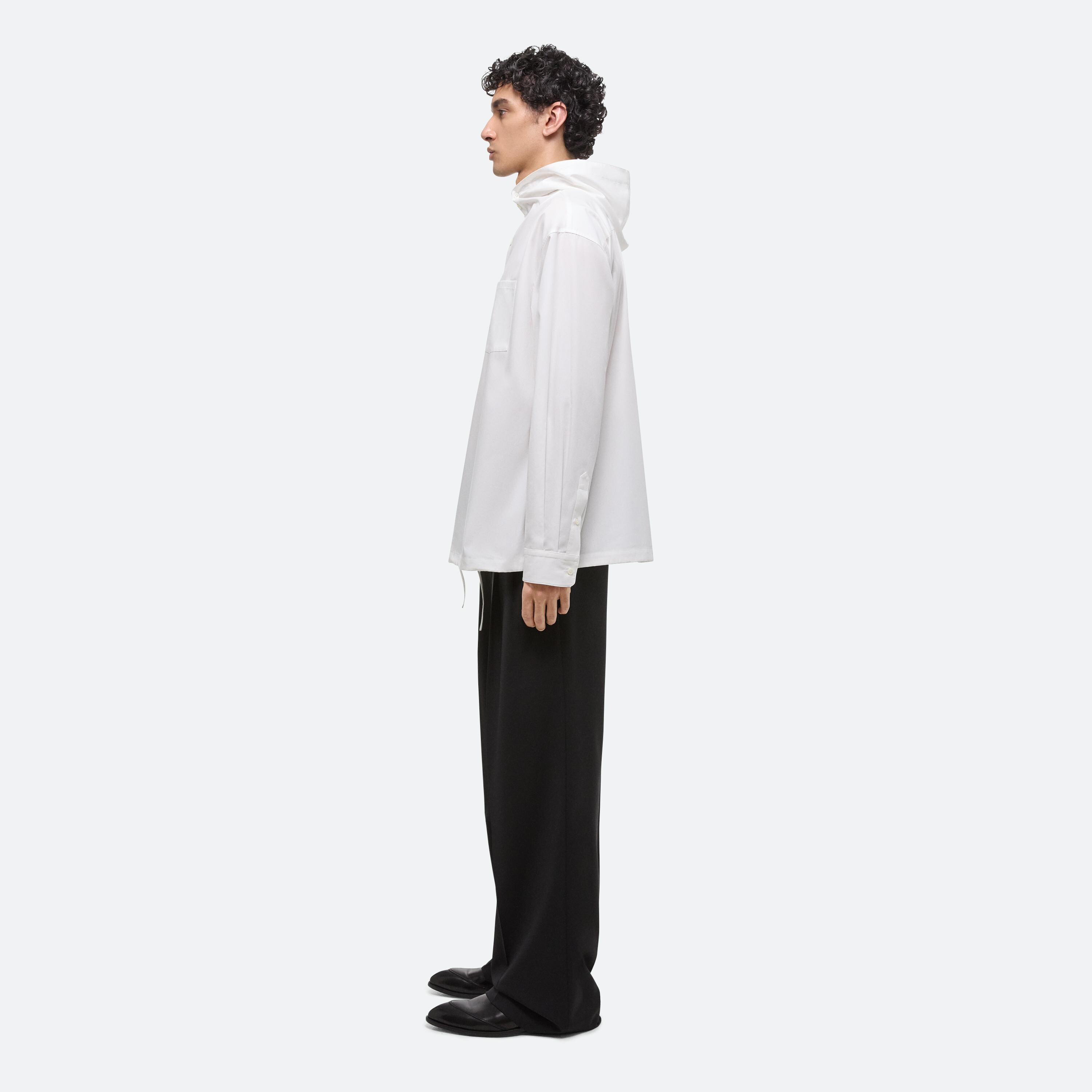 Oversized hooded shirt in ultra-soft Japanese cotton poplin. An infinite placket that extends along the hood and drawstraings at the hem create multiple styling options.