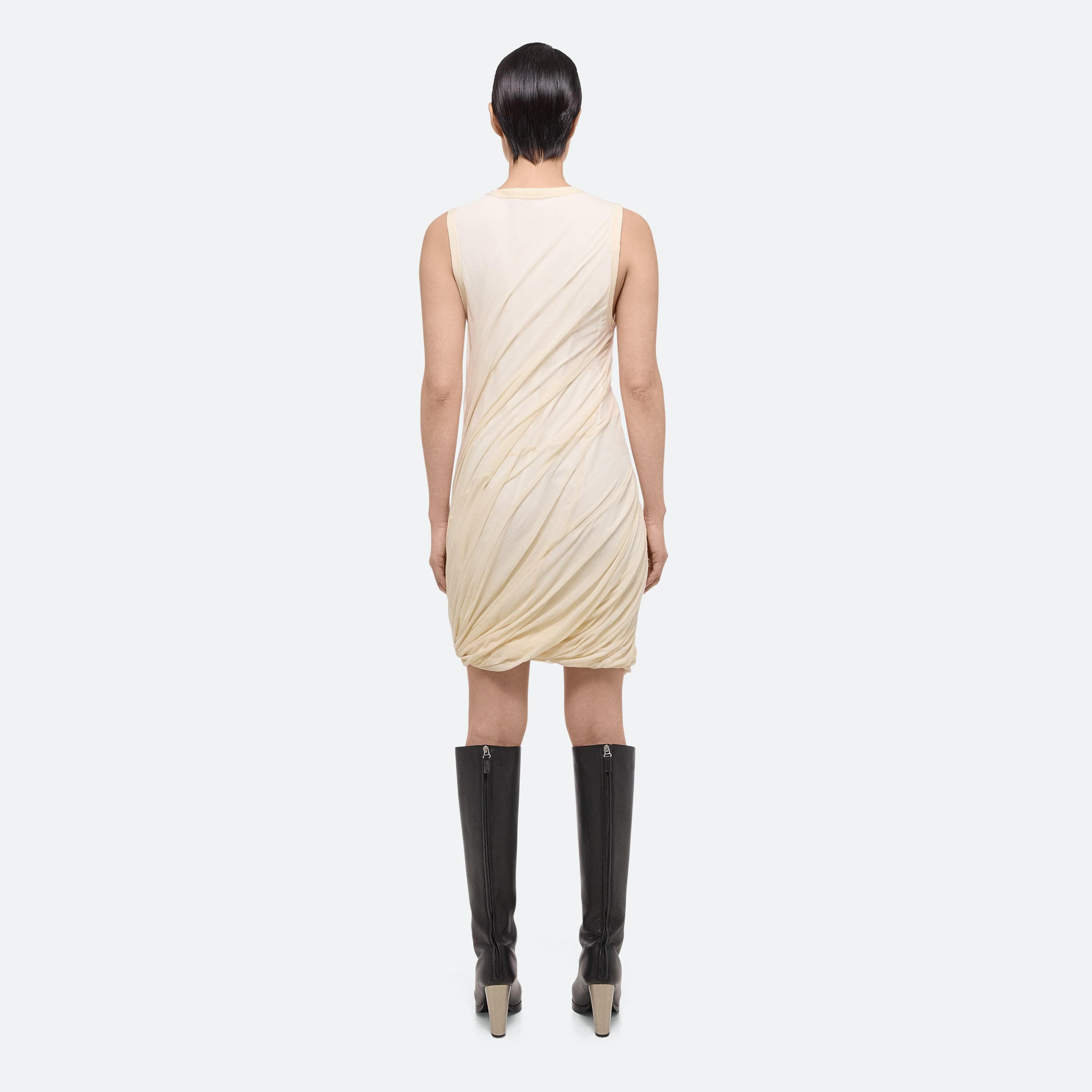 Bubble sleeveless dress in cotton jersey. Voluminous cut with a slim-fitting top and crew neckline that flows into a bubble hem. Overlaid in sheer jersey.