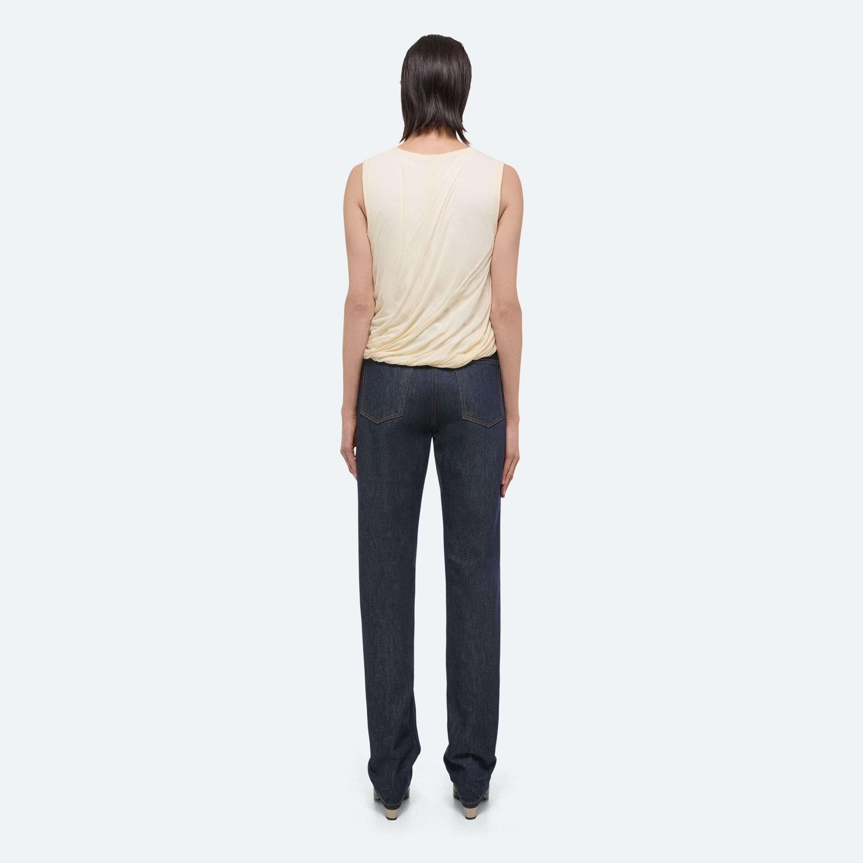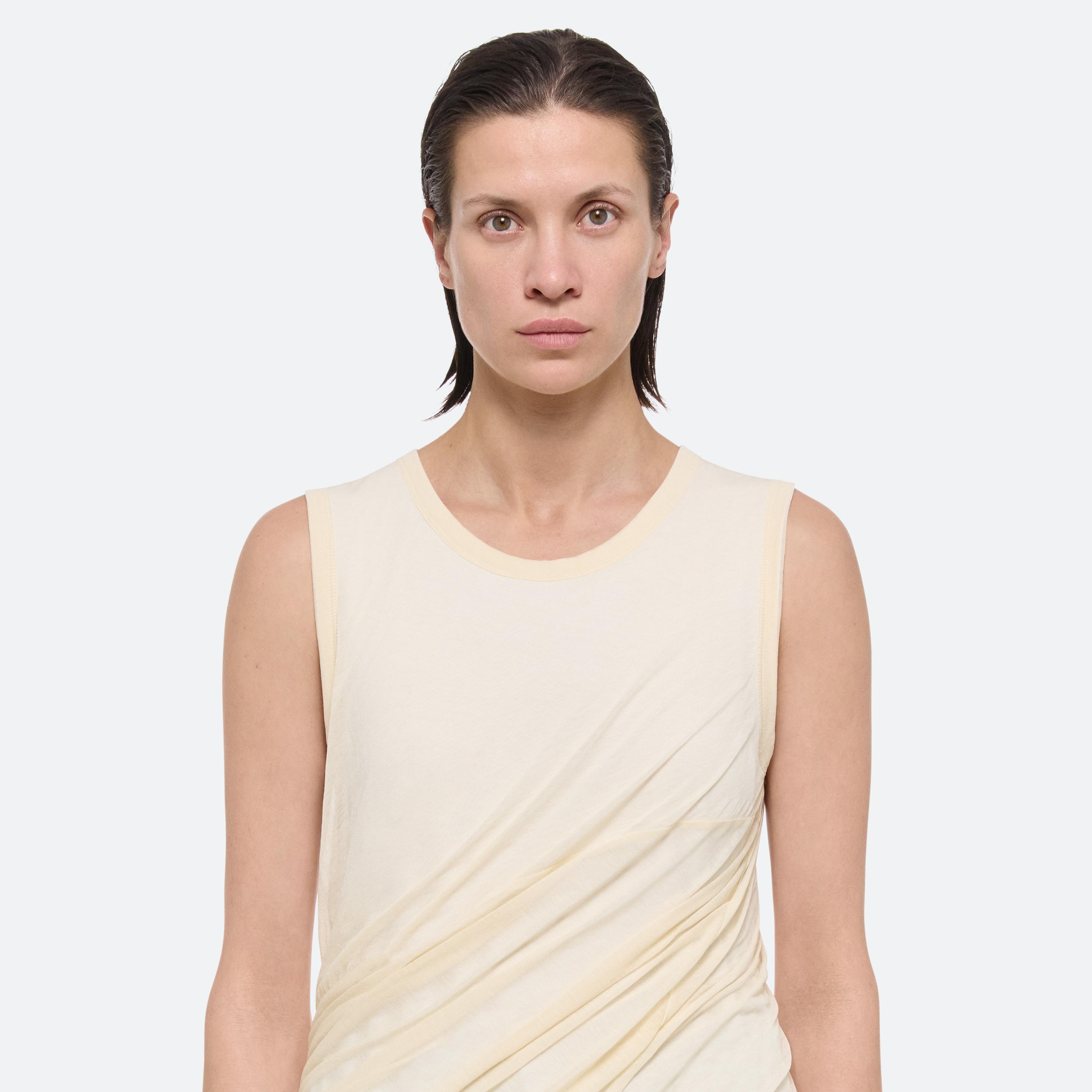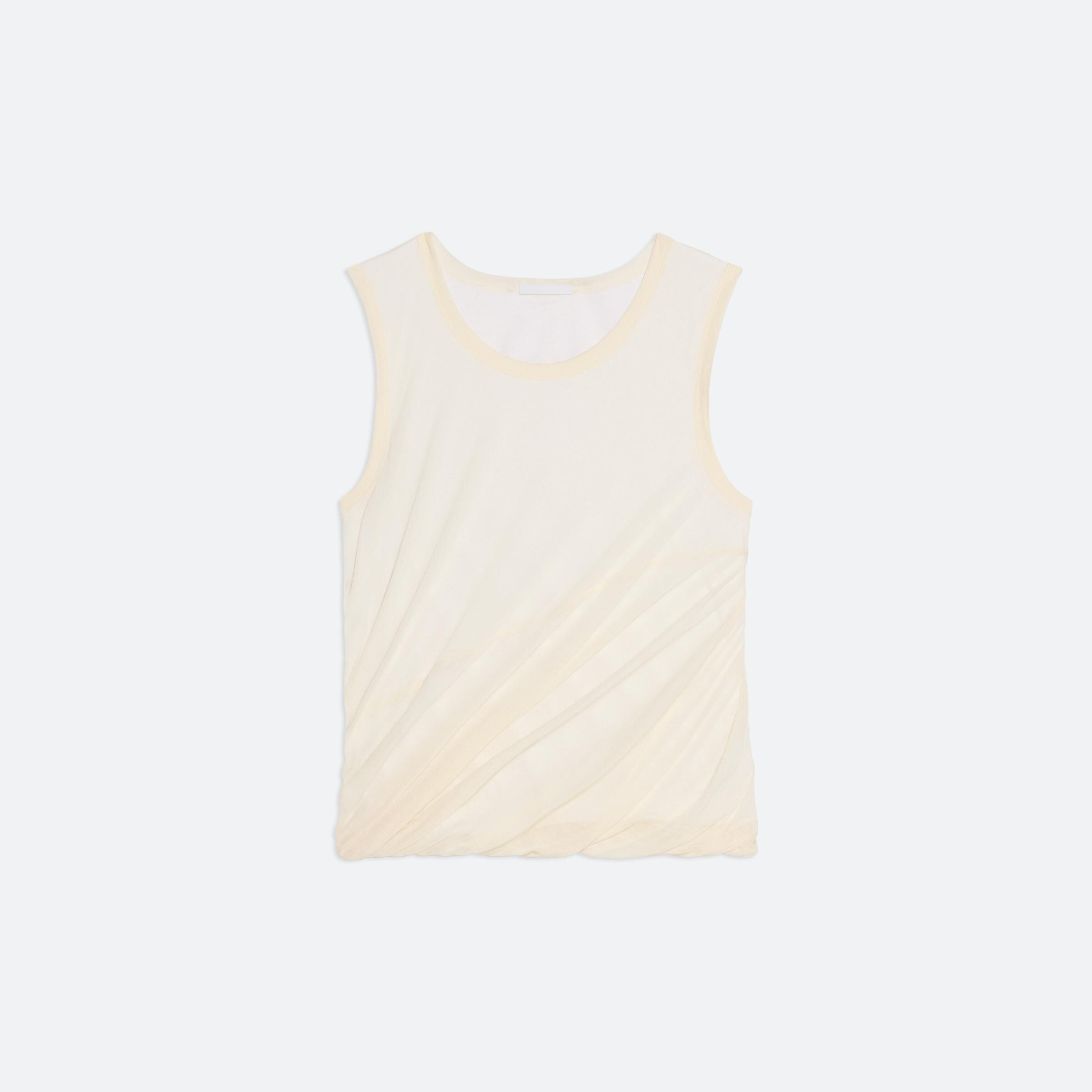 Bubble tank in cotton jersey. Voluminous cut with a slim-fitting top and crew neckline that flows into a bubble hem. Overlaid in sheer jersey.