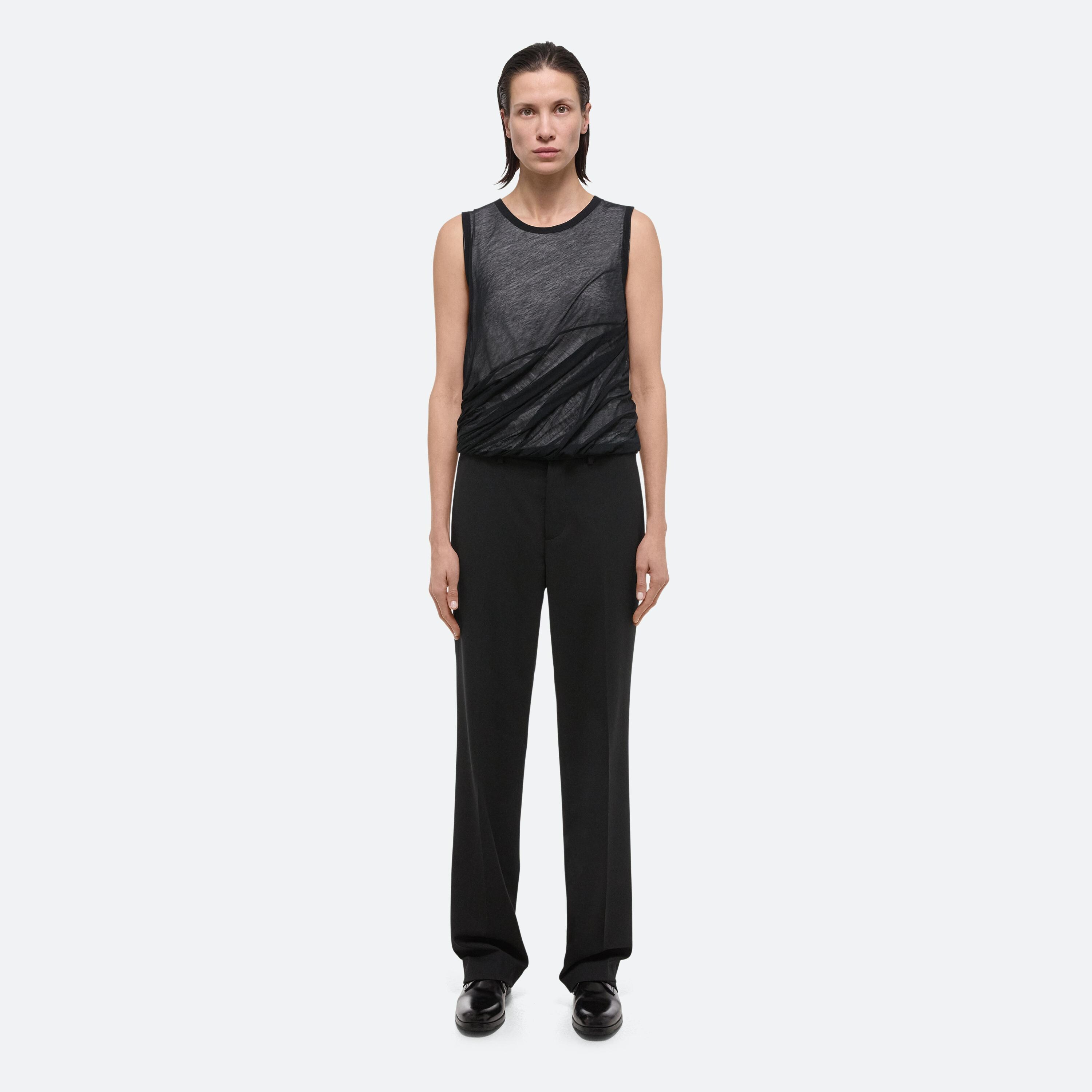 Bubble tank in cotton jersey. Voluminous cut with a slim-fitting top and crew neckline that flows into a bubble hem. Overlaid in sheer jersey.