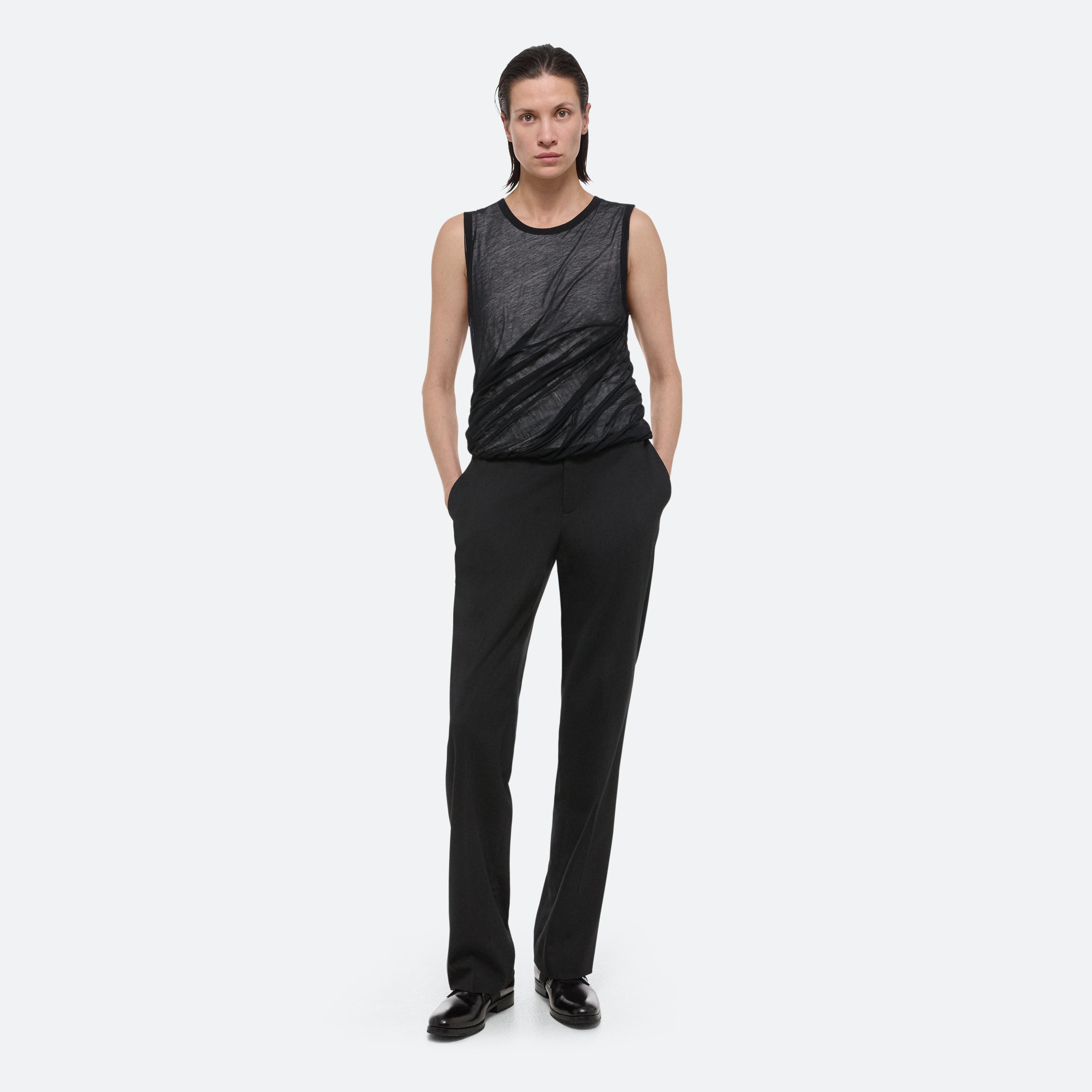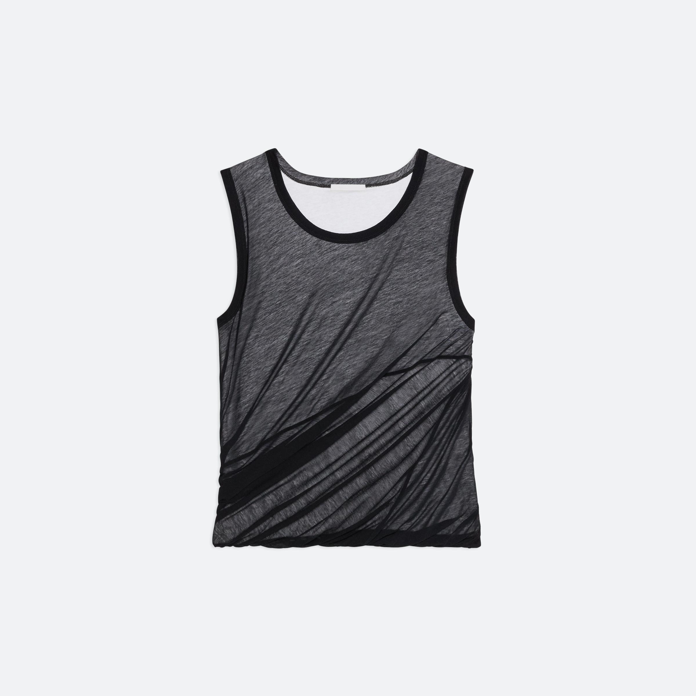 Bubble tank in cotton jersey. Voluminous cut with a slim-fitting top and crew neckline that flows into a bubble hem. Overlaid in sheer jersey.